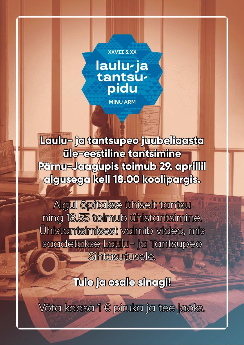 Laulu- ja tantsupeo juubeliaasta üle-eestiline tantsimine Pärnu-Jaagupis toimub 29. aprillil algusega kell 18.00 koolipargis.