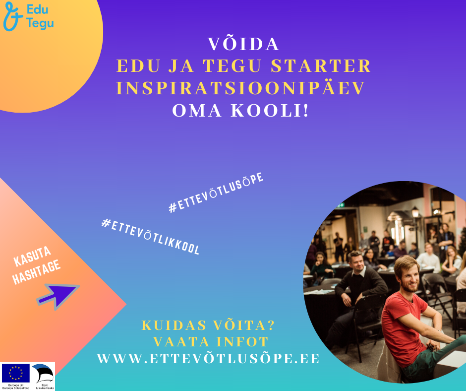 Ettevõtlusõppe programmil Edu ja Tegu on teile väike kingitus – oleme valmis tulema ja korraldama teie koolis STARTER inspiratsioonipäeva õpilastele ning meiega liitub inspireeriv esineja, edukas noor ettevõtja Kristel Kruustük!