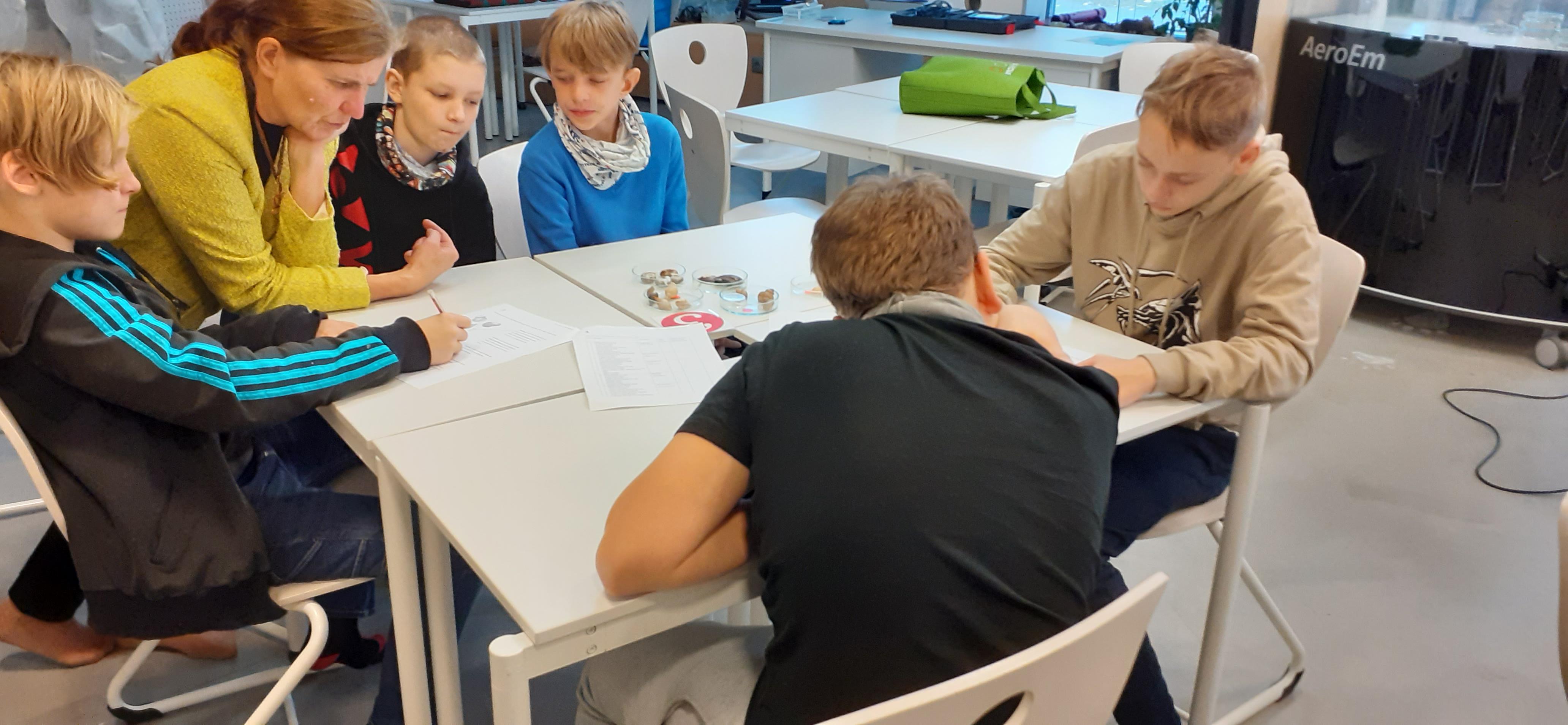 6. klass tutvus Eesti maavarade, nende koostise ja kasutamisega. Tuli panna kaarte õigetesse kohtadesse, et moodustuks korralik rida. Oli võimalik kasutada nutiseadmeid ja ise juba omandatud teadmisi testida. Seejärel tutvusime näitusega Maavarad ja mineraalid.