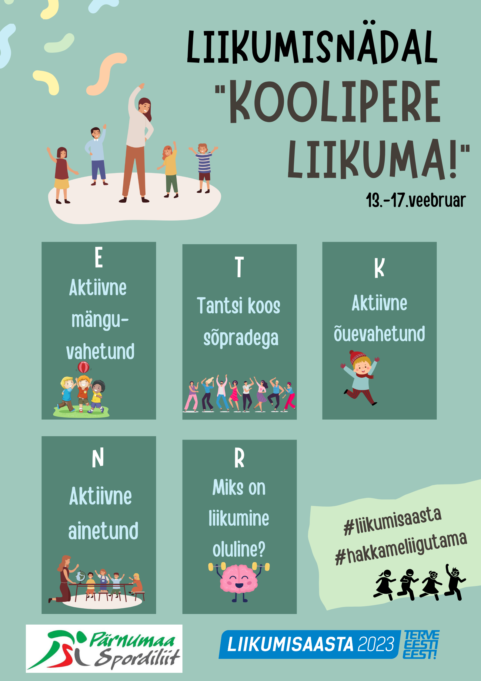 Aasta 2023 on liikumise aasta. Pärnumaa Spordiliit on ettevalmistanud Liikumisnädala "Koolipere Liikuma".