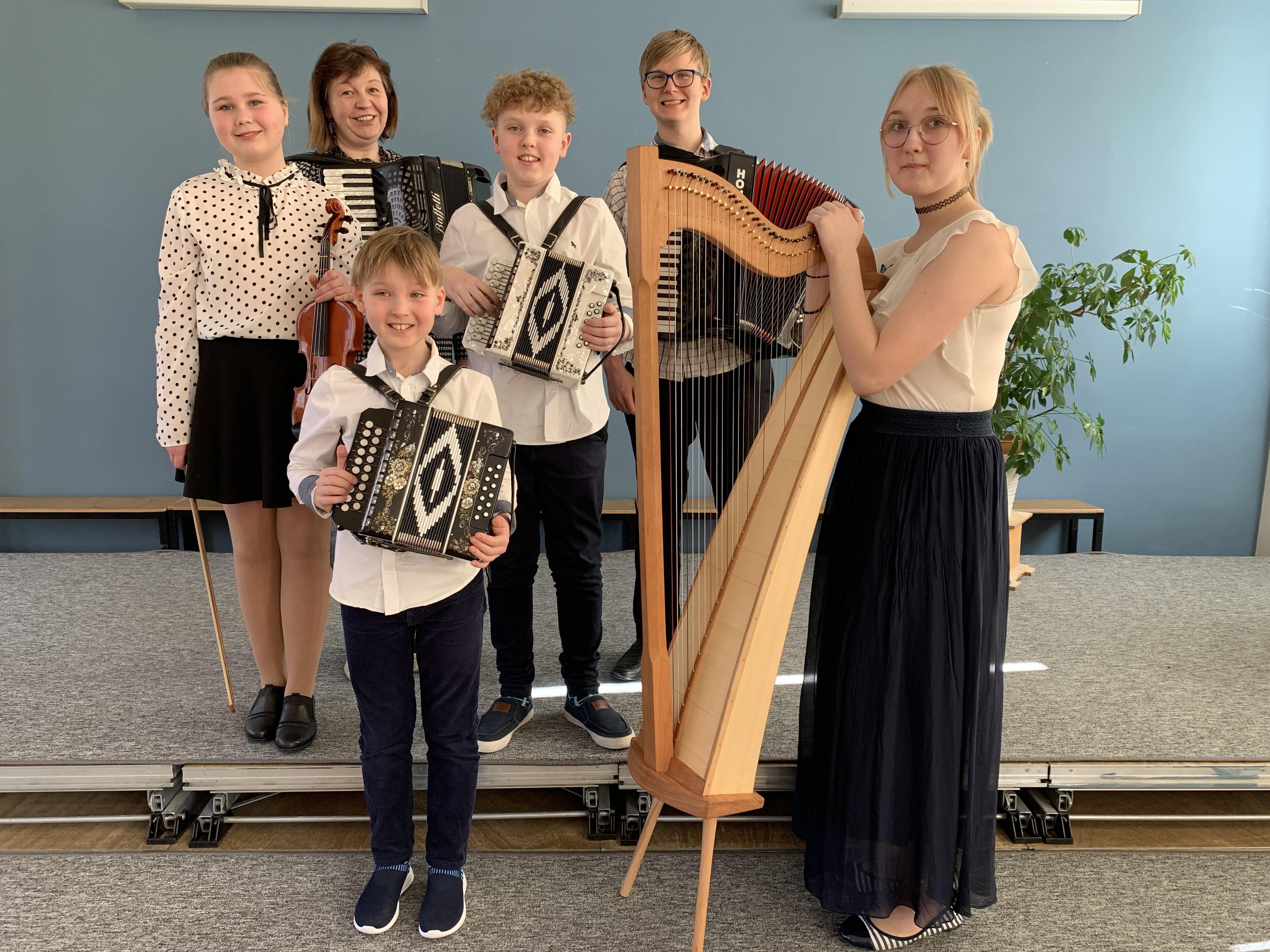 Täna oli meil võimalus Pärnu-Jaagupi Muusikakooli pärimusmuusika ansambli MARUU kontserti nautida. Kõlasid meeleolukalt rahvuslikud muusikapalad, nagu Labajalg, Kõnõtraat jt. lood. Ansamblis osalevad Kristiin Kodu- viiul, lõõtspillidel vennad Karl ja Robin Kruuse, akordionidel mängis vilistlane Madis Sammelselg ja õpetaja Reine Niin ning harfil Hanna Kartau. Aitäh Teile toreda kontserdi eest ning hoiame pöialt laupäevaseks etteasteks.