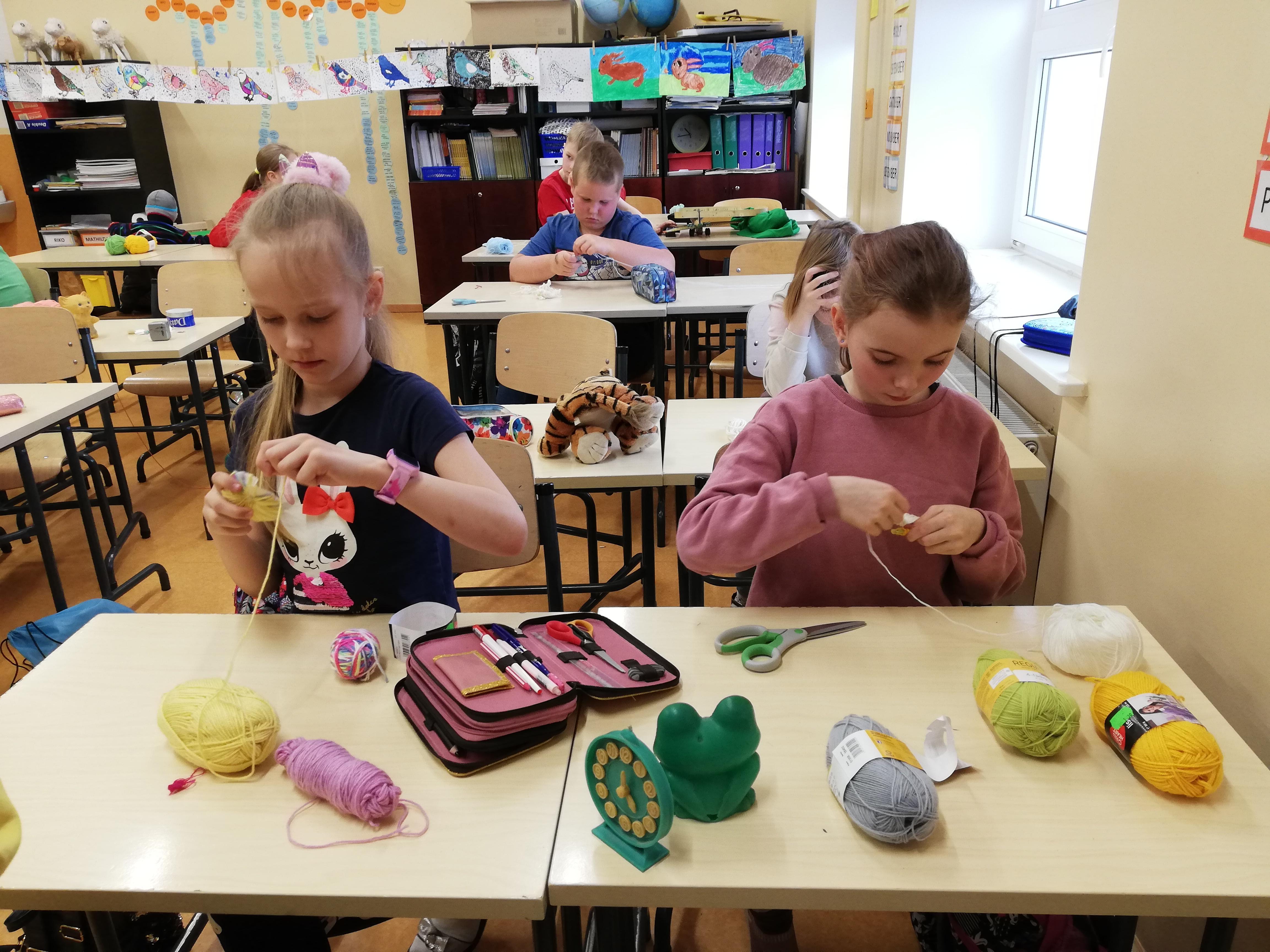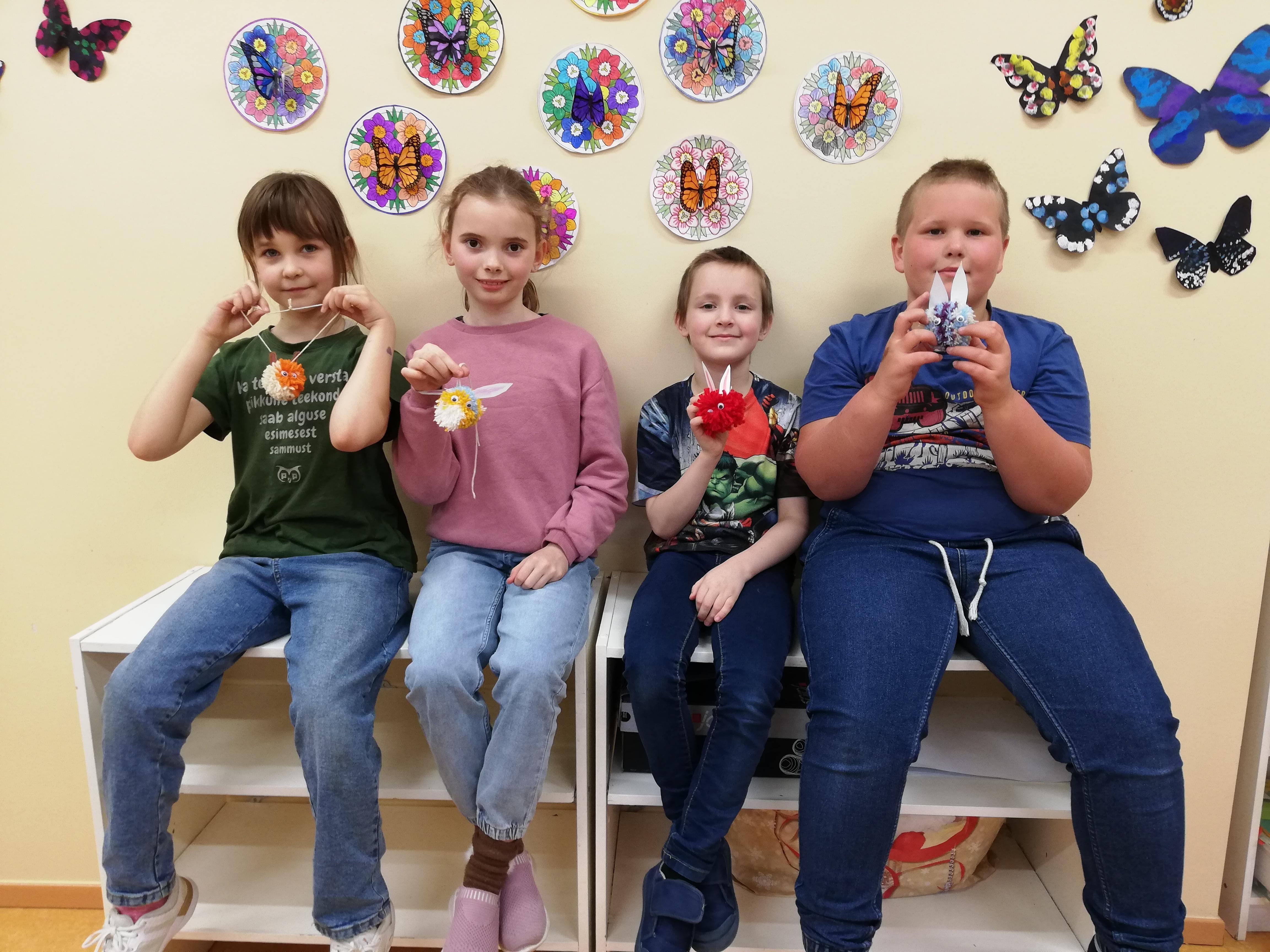 Mängisime vanast ajast pärit mängu "Vanaema lõngakera läks sassi" ja igaüks meisterdas endale mänguasja, mis seondub saabuvate lihavõtetega - lõngatutist jänese.