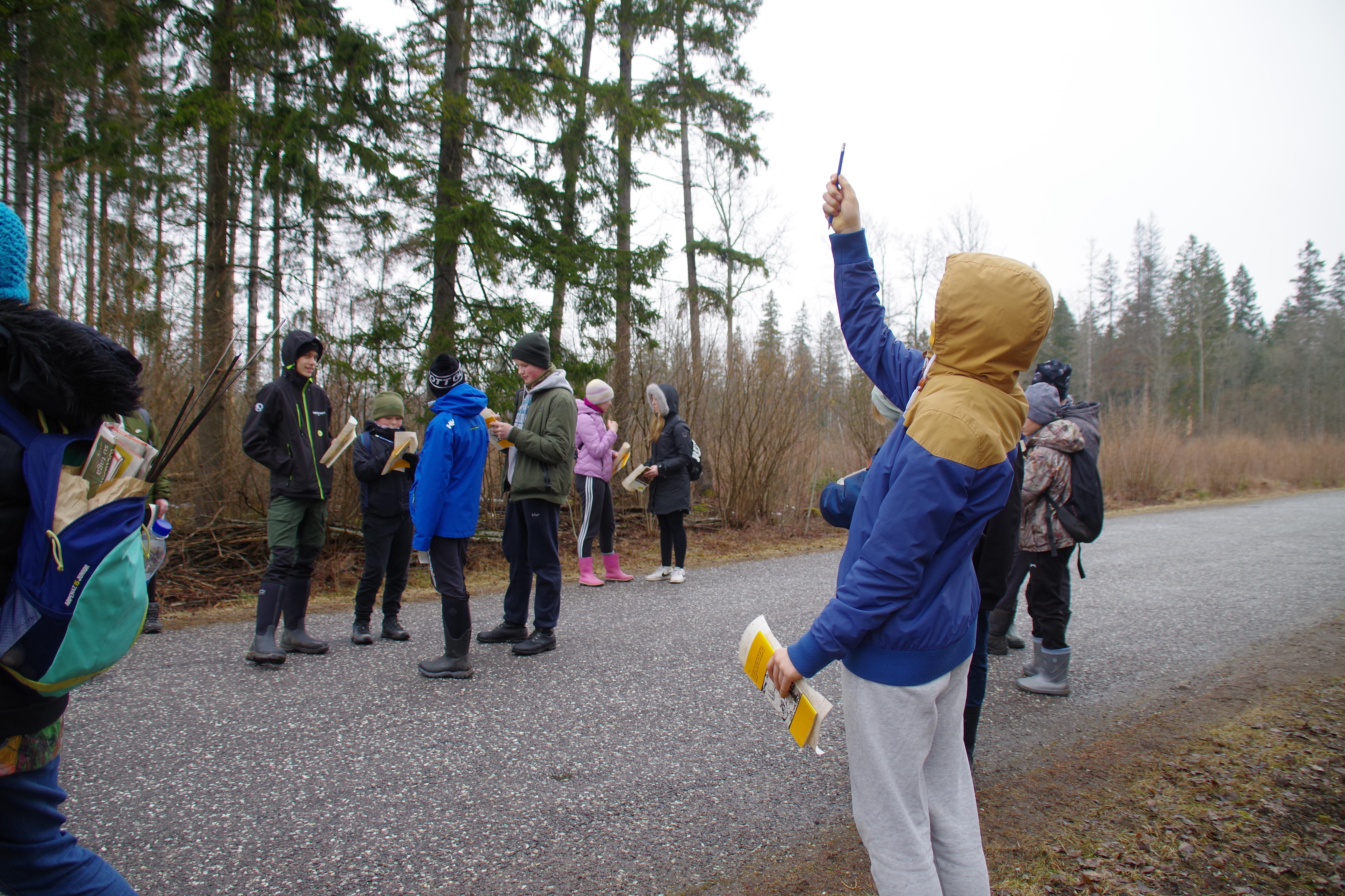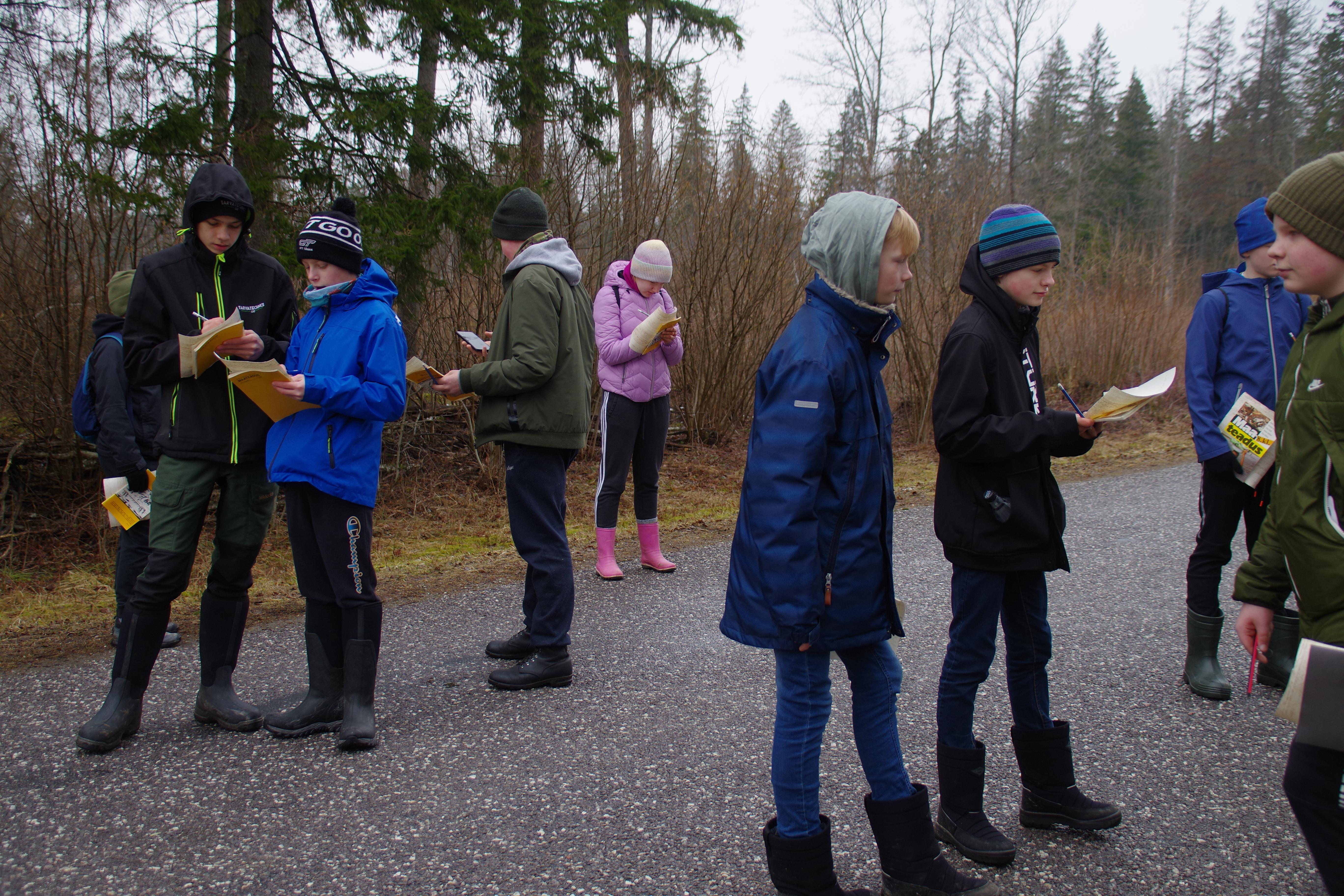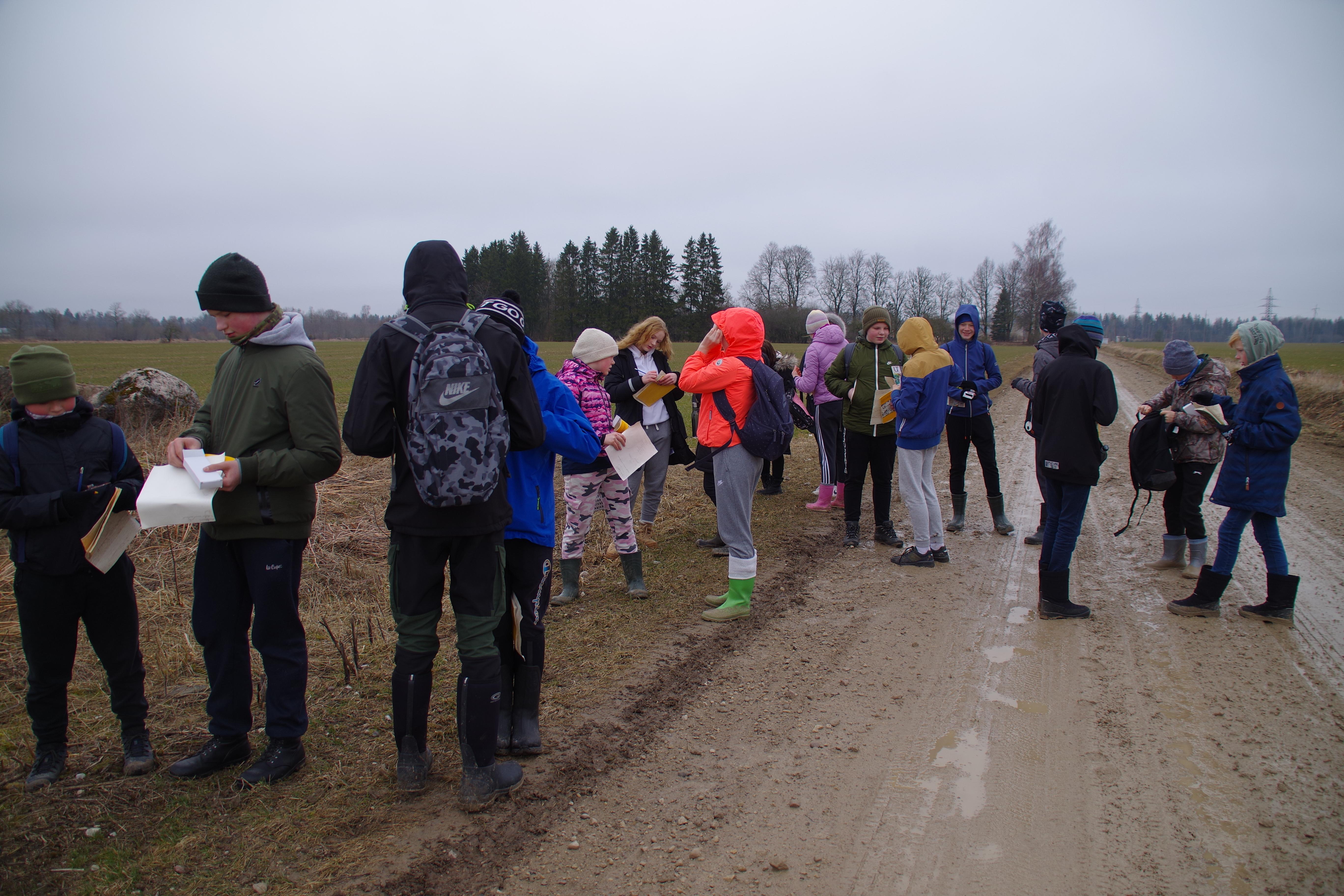Kõigepealt võtsime eesmärgiks Lavassaare turbaväljad kui energiaallikad. Tee peal mõõtsime kuuse kõrgust nii karjapoisi meetodiga kui ka pliiatsiga, arvutasime kolmnurga pindala. Järgnevalt mõõtsime asimuuti, määrasime ära, kust poolt tulid kunagi mandrijääga rändrahnud. Kui olime ka turba sees sobranud, mõelnud, miks meil seda tarvis on, siis asusime tagasiteele. Korraldasime lähtudes eesolevatest munadepühadest munaveeretamise võistluse, mis lõppes väärikalt muna ära söömisega. Järgnevalt võtsime suuna Tallinn-Pärnu maantee poole, et vaadata, mida räägib sild, mis läheb üle maantee, kus kunagi sõitsid rongid. Saime teada, et raudtee liipreid pole, aga võimsad kruvid on veel alles ja et autojuhtidel on hea meel, meid tervitati nii helide kui viibetega. Seejärel suundusime Tarva lihakarni poole, kus mõtlesime päikesepaneelide peale. Kenneti vanemad võtsid meid vastu grillahju tehtud lõkkega, grillisime ja nautisime üksteise seltskonda.
