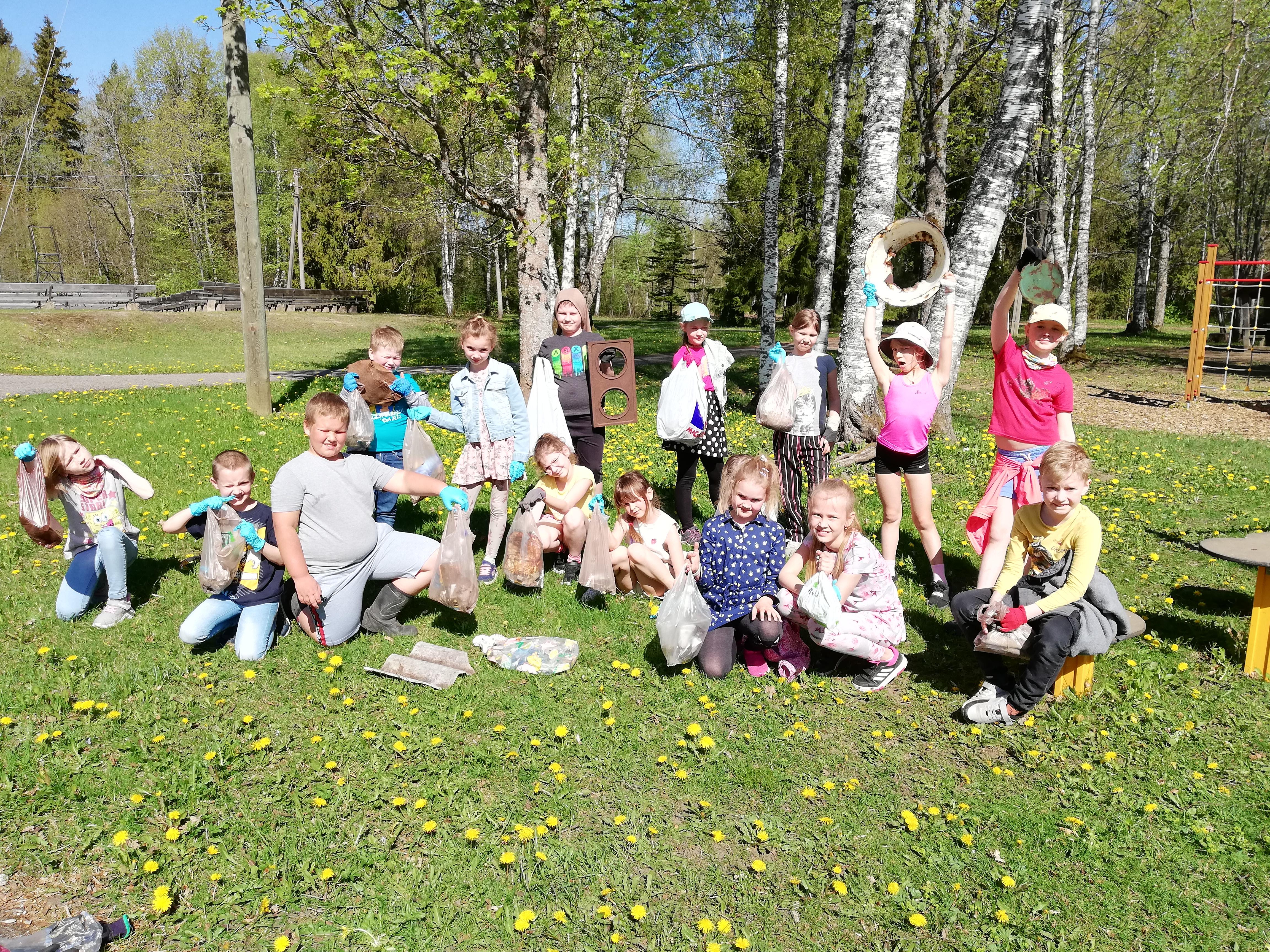 2. a klass korjas "Teeme ära" talgute raames prügi Pärnu-Jaagupi kultuuri- ja spordipargi radadelt.