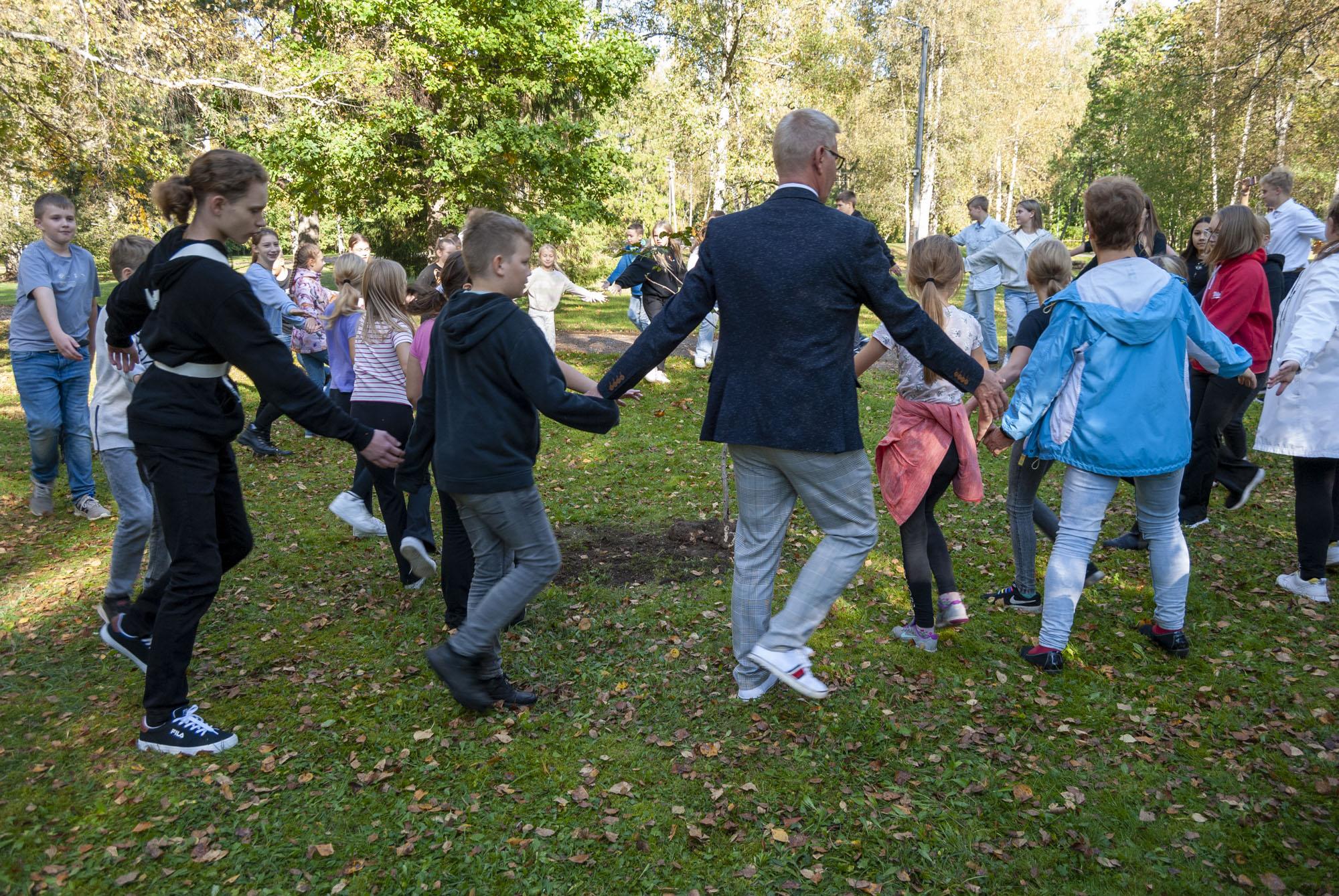 Abivallavanem Tarvi Tasane tänas kõiki osalejaid ja õpetajaid. Mudilaskoor laulis puule ja meie rõõmuks toreda laulu laulurõõmust ja üheskoos tantsiti "Oige ja vasembat". Väga loodame, et laulu-ja tantsurõõm meie koolis ei rauge ja 2025 oleme sama suure arvuga jälle kohal.