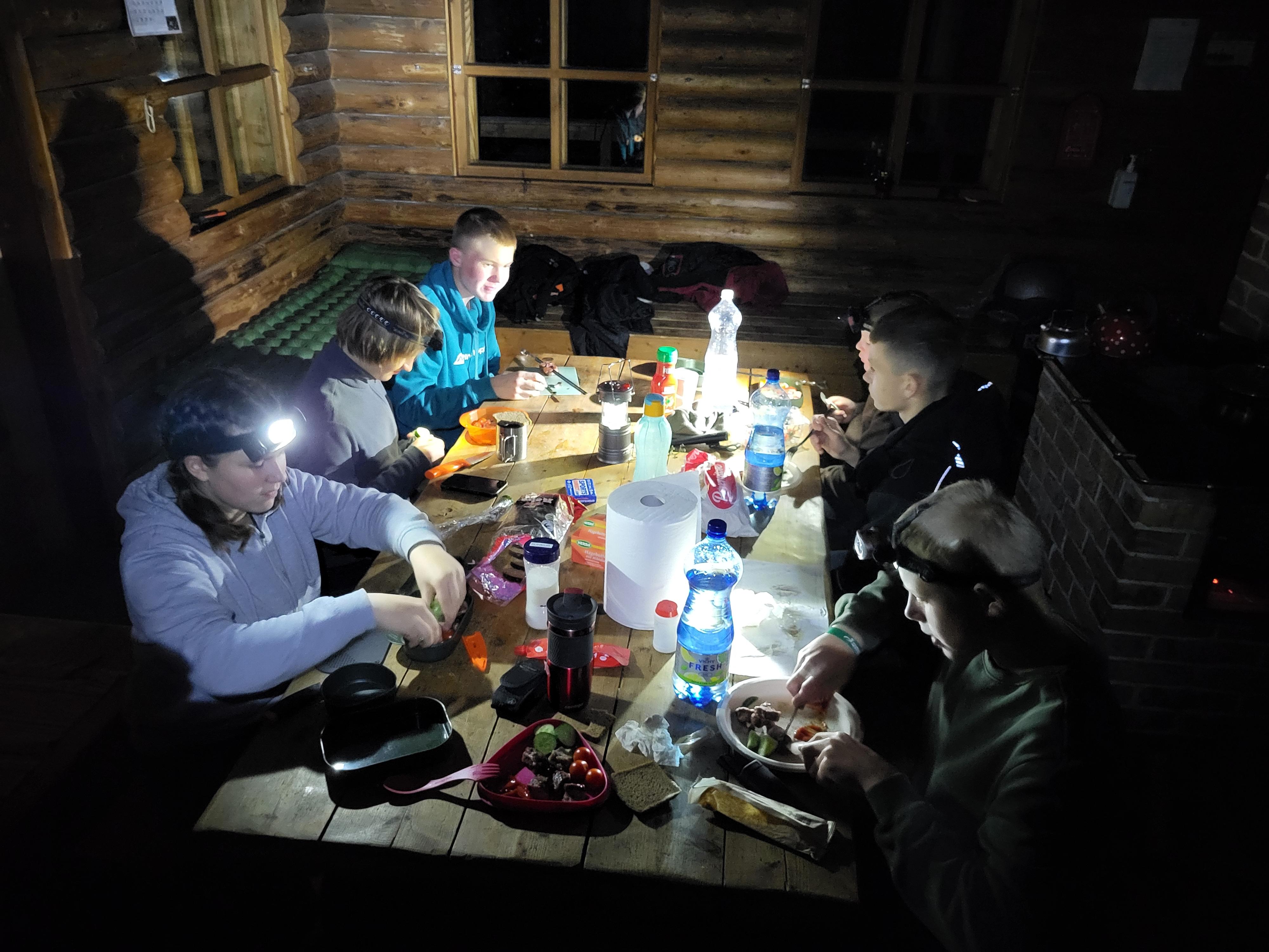 Ööbisime RMK Soontaga metsamajas, mis on paisjärve kaldal asuv 2. korruseline majake. Elektrit majakeses ei ole ja magamiseks on lavatsid, kuid majake on köetav ja ka talvisel ajal ööbitav. Matkasime selle korral maamärkide järgi ja väga märjal maastikul. Saime ka kogemuse võrra rikkamaks tehes metsamaastikul öö matka.