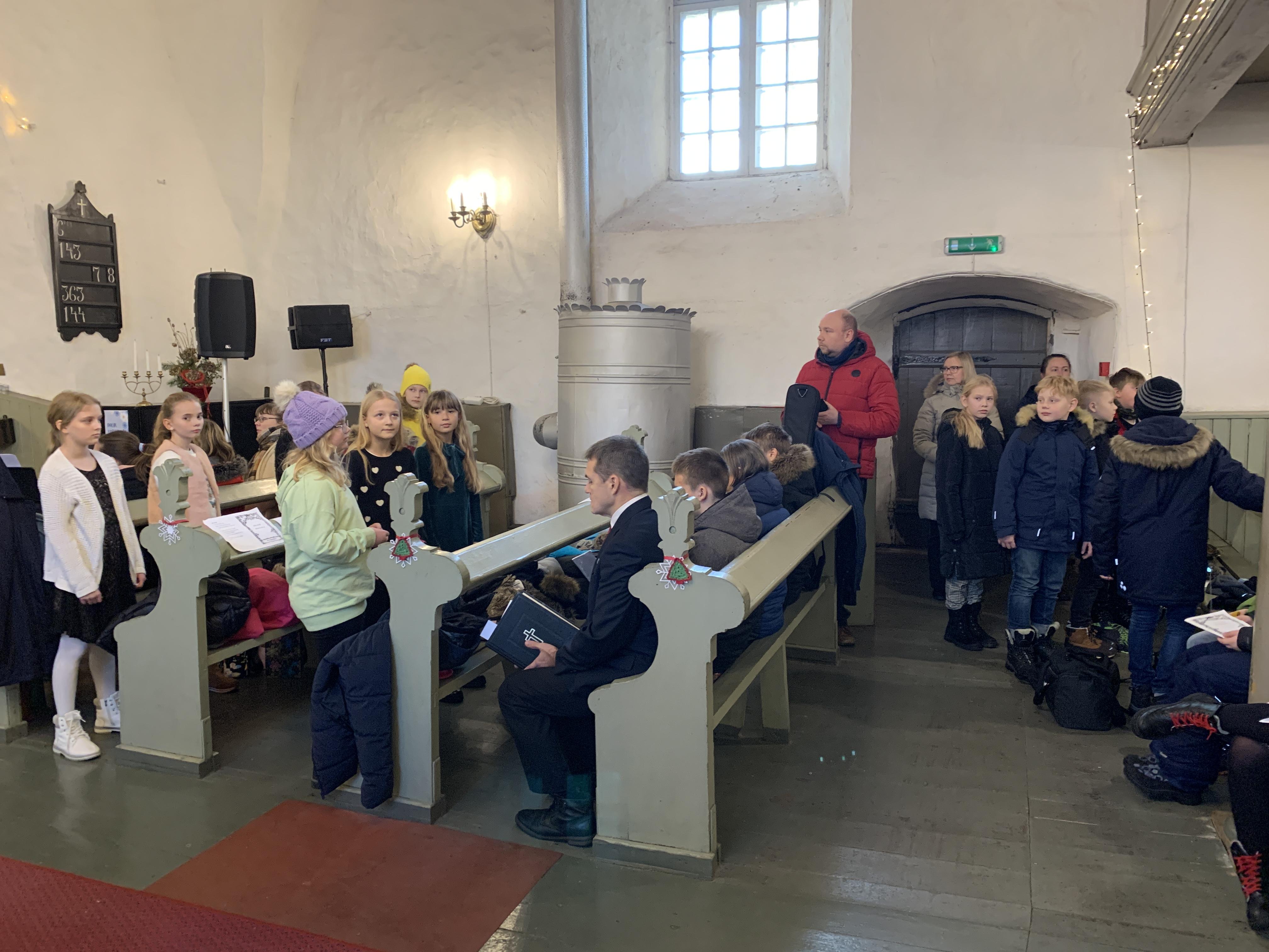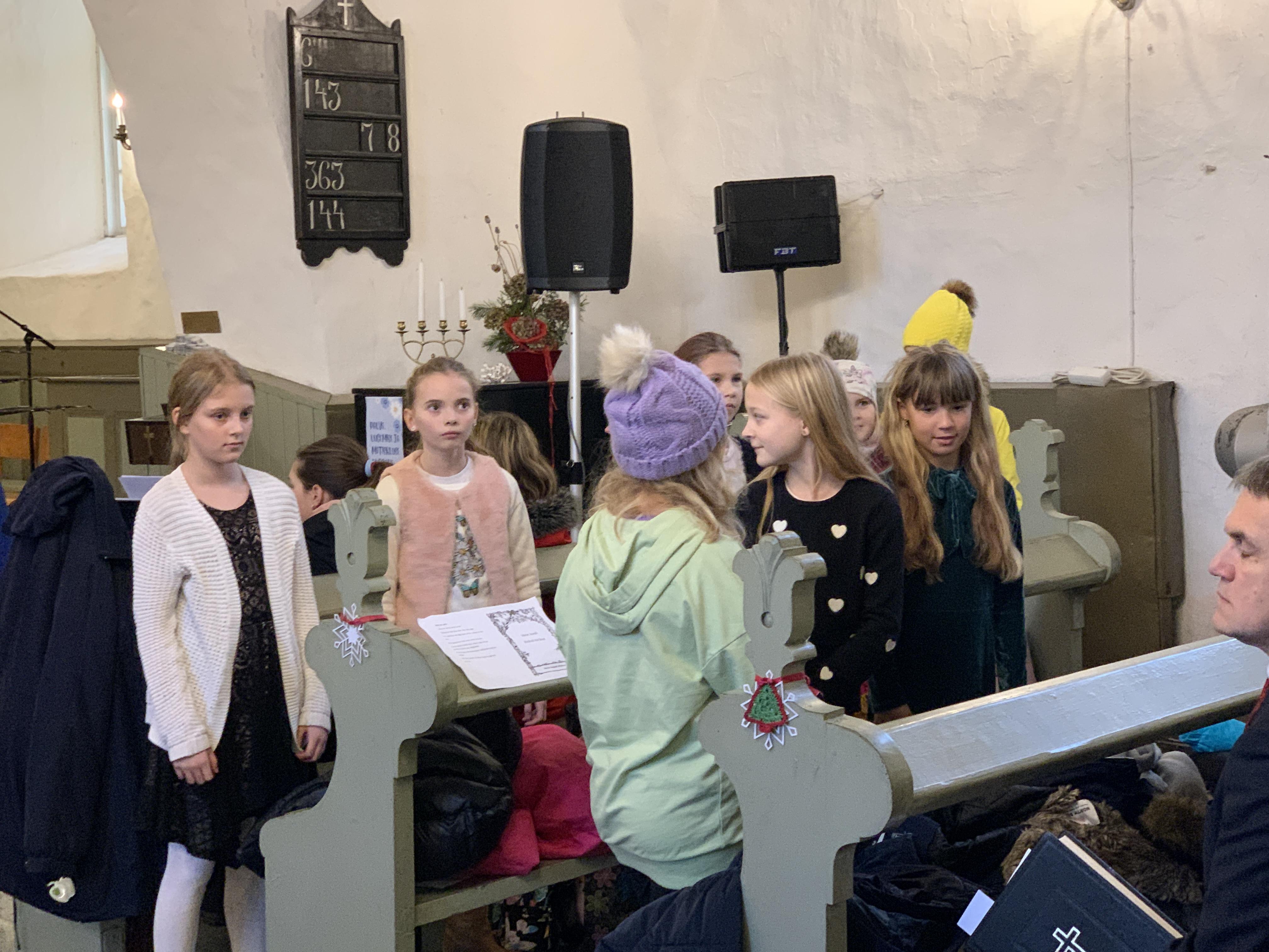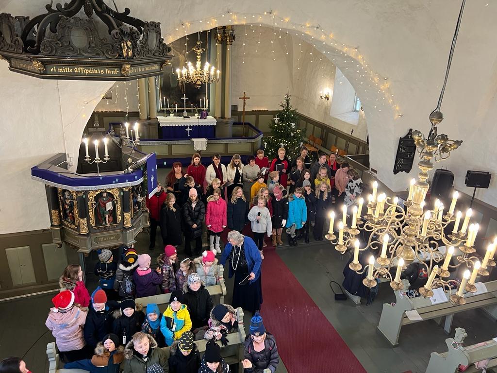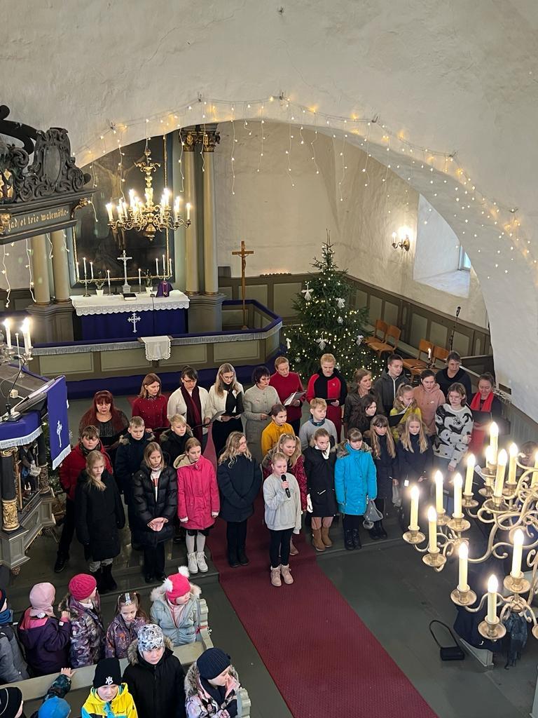 Õpetaja Kristiina luges vahva loo jõuludest. Direktor Joel luges jõuluevangeeliumit. Lastekooride esituses kõlasid vahvad jõululaulud. Keironi kitarripalad olid armsad ja rahulikud. Henriette ja Hendrik laulsid imearmsa jõululaulu duetina mis oli tõeliselt liigutav. Õpetajate ansambel esitas laulu Ajakellast. Üheskoos laulsime Tasa, tasa ja Kuusepuu. Õpetaja Kristiina jagas õnnistust kogu koolile.