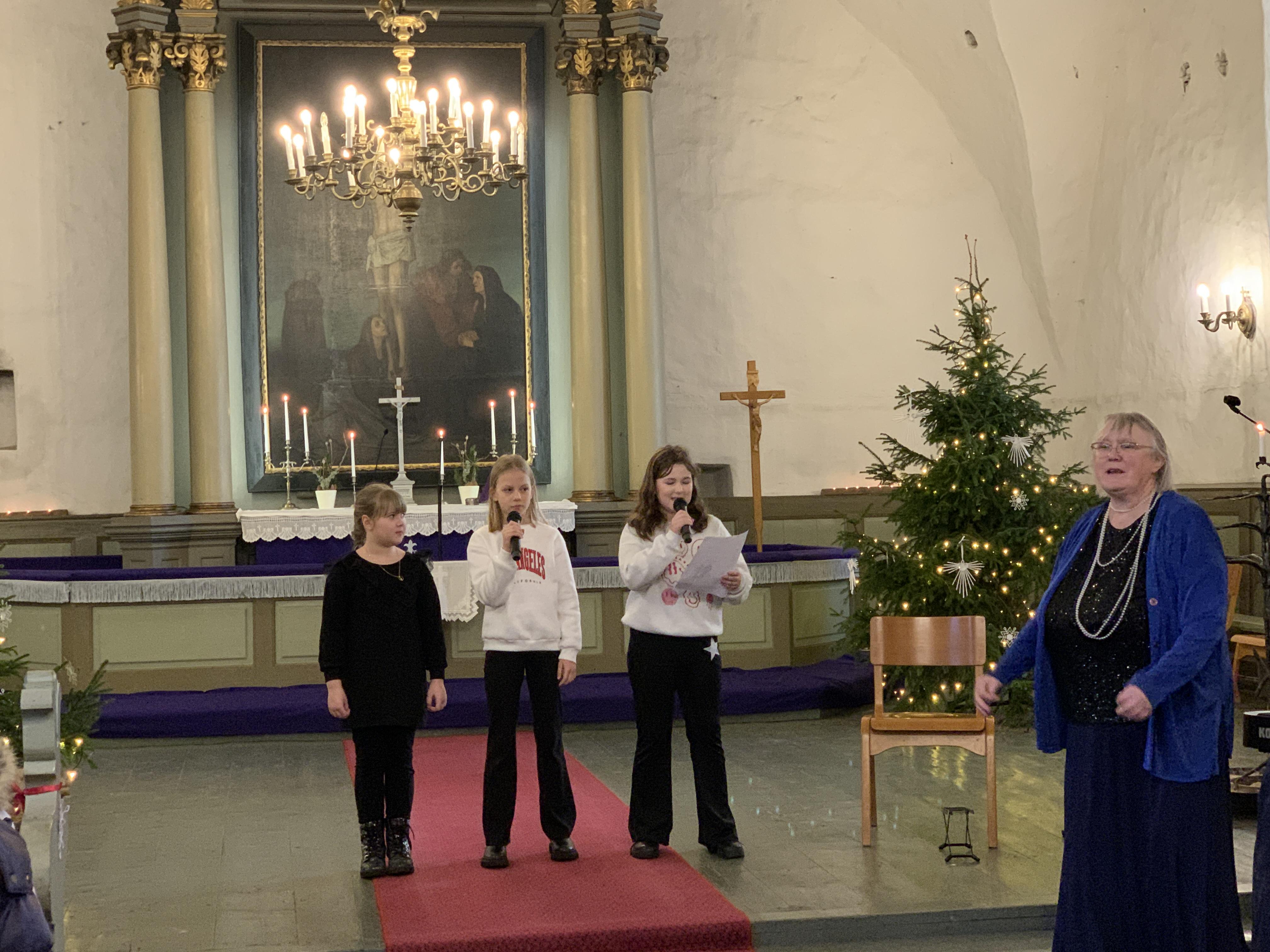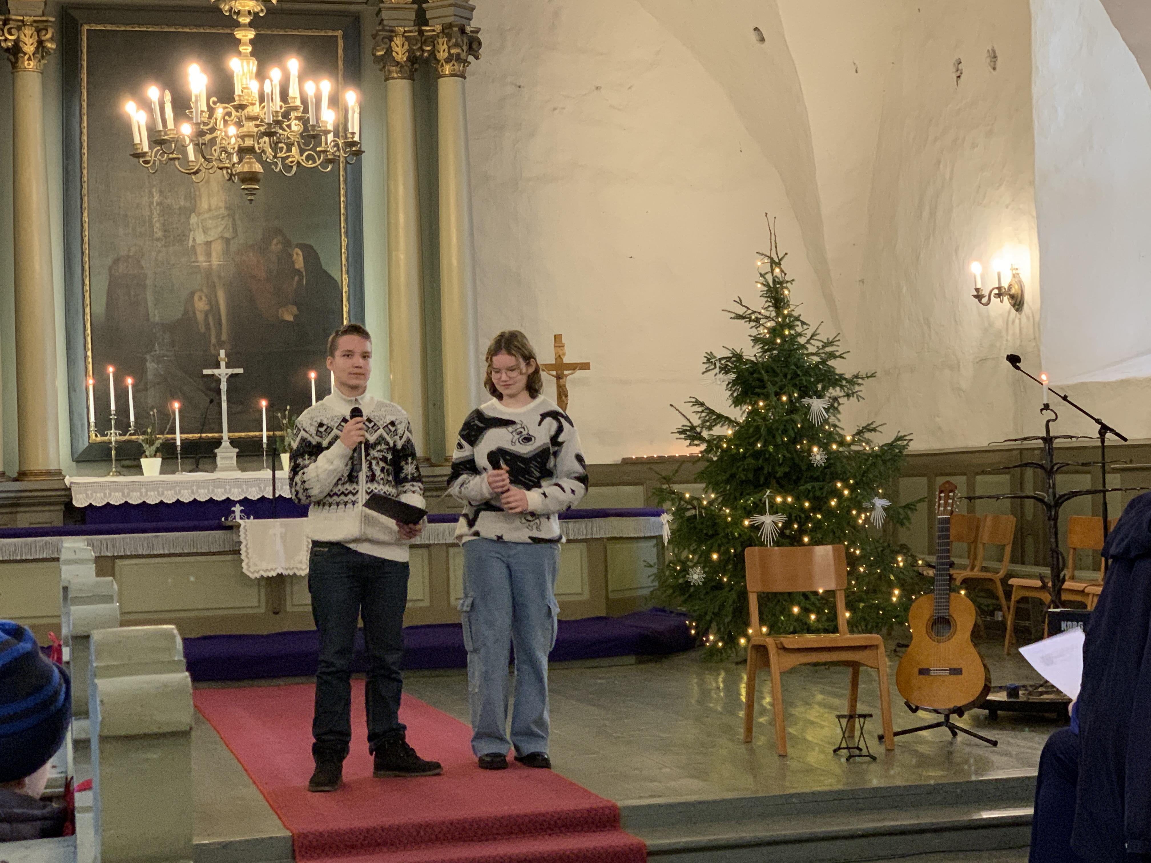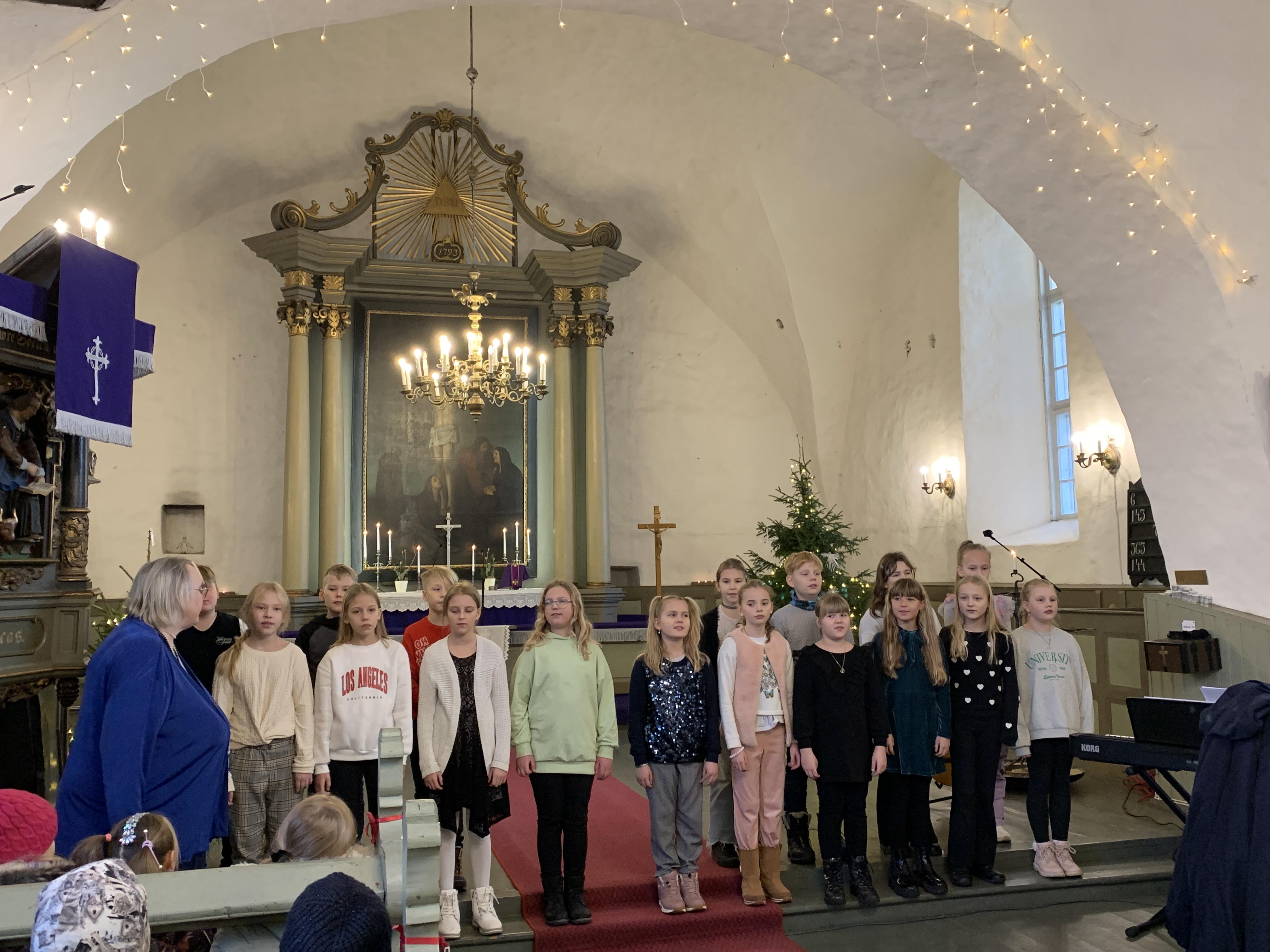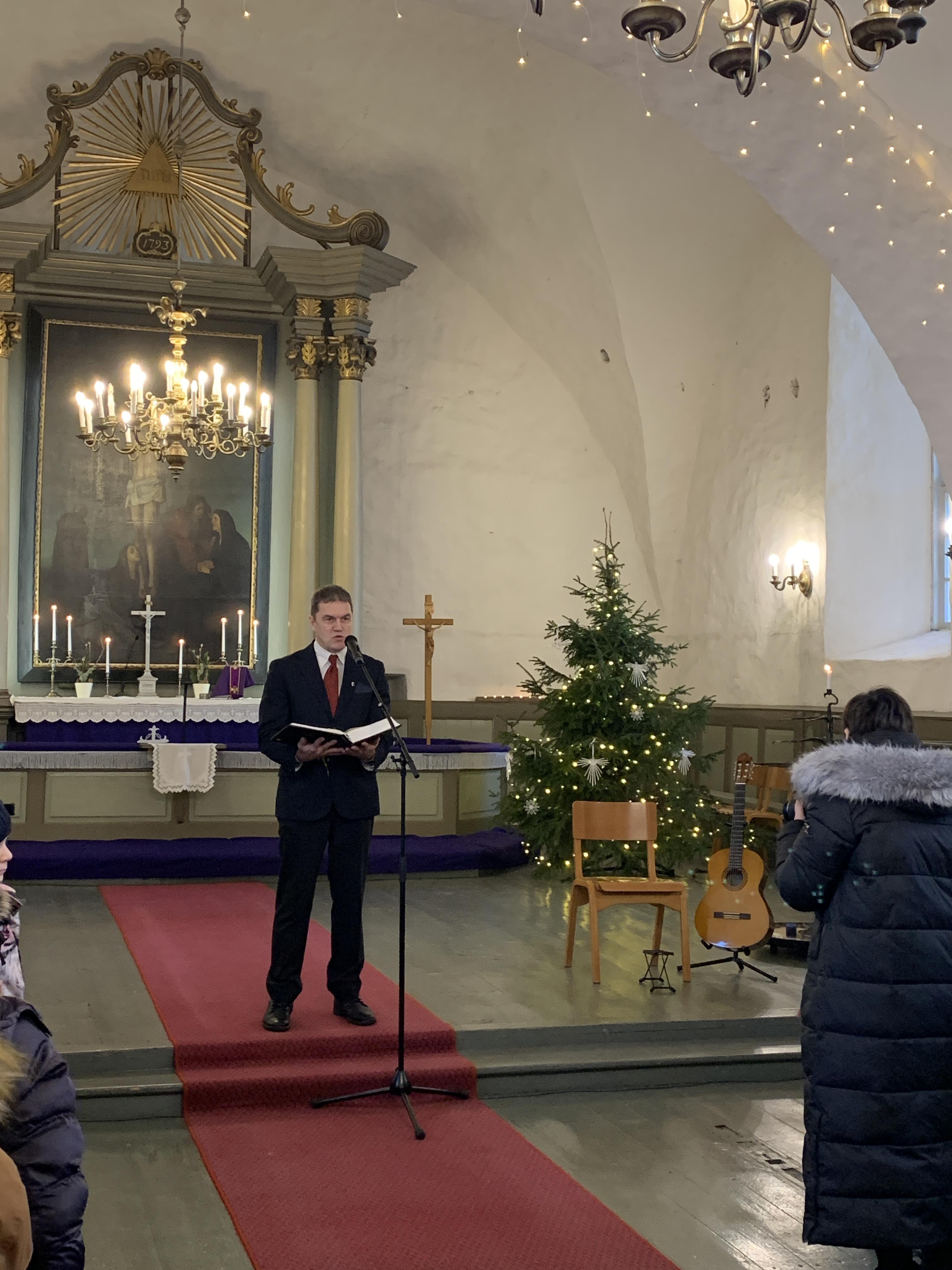 Õpetaja Kristiina luges vahva loo jõuludest. Direktor Joel luges jõuluevangeeliumit. Lastekooride esituses kõlasid vahvad jõululaulud. Keironi kitarripalad olid armsad ja rahulikud. Henriette ja Hendrik laulsid imearmsa jõululaulu duetina mis oli tõeliselt liigutav. Õpetajate ansambel esitas laulu Ajakellast. Üheskoos laulsime Tasa, tasa ja Kuusepuu. Õpetaja Kristiina jagas õnnistust kogu koolile.
