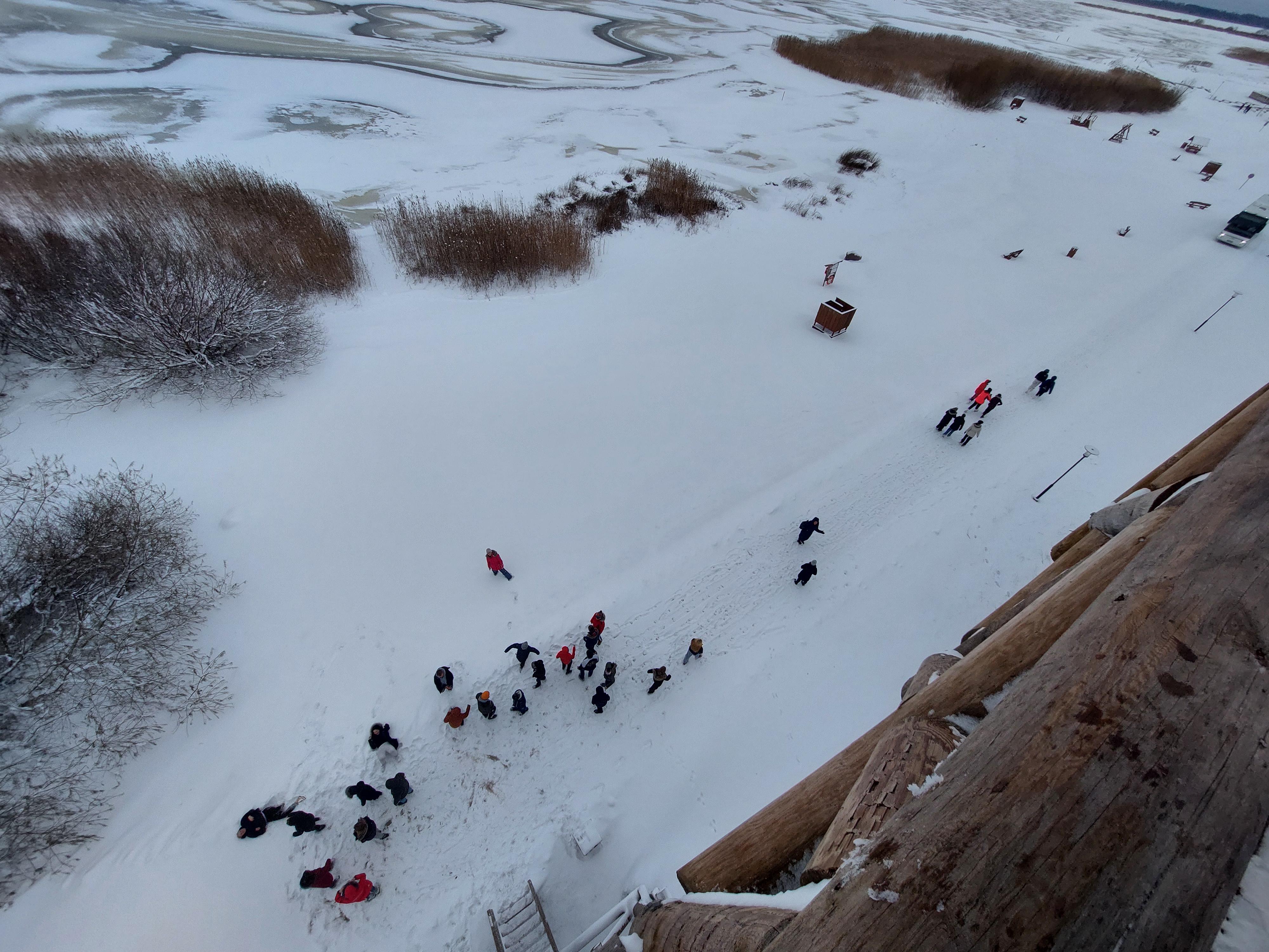 Peale seda suundusime üle Räpina poldri Räpina sadamasse ja vaatasime linnuvaatlustornist alla Venemaa poole. Polder on tähtis linnukaitseala, praegu oli see küll lume all, aga siit rändab läbi palju linde.