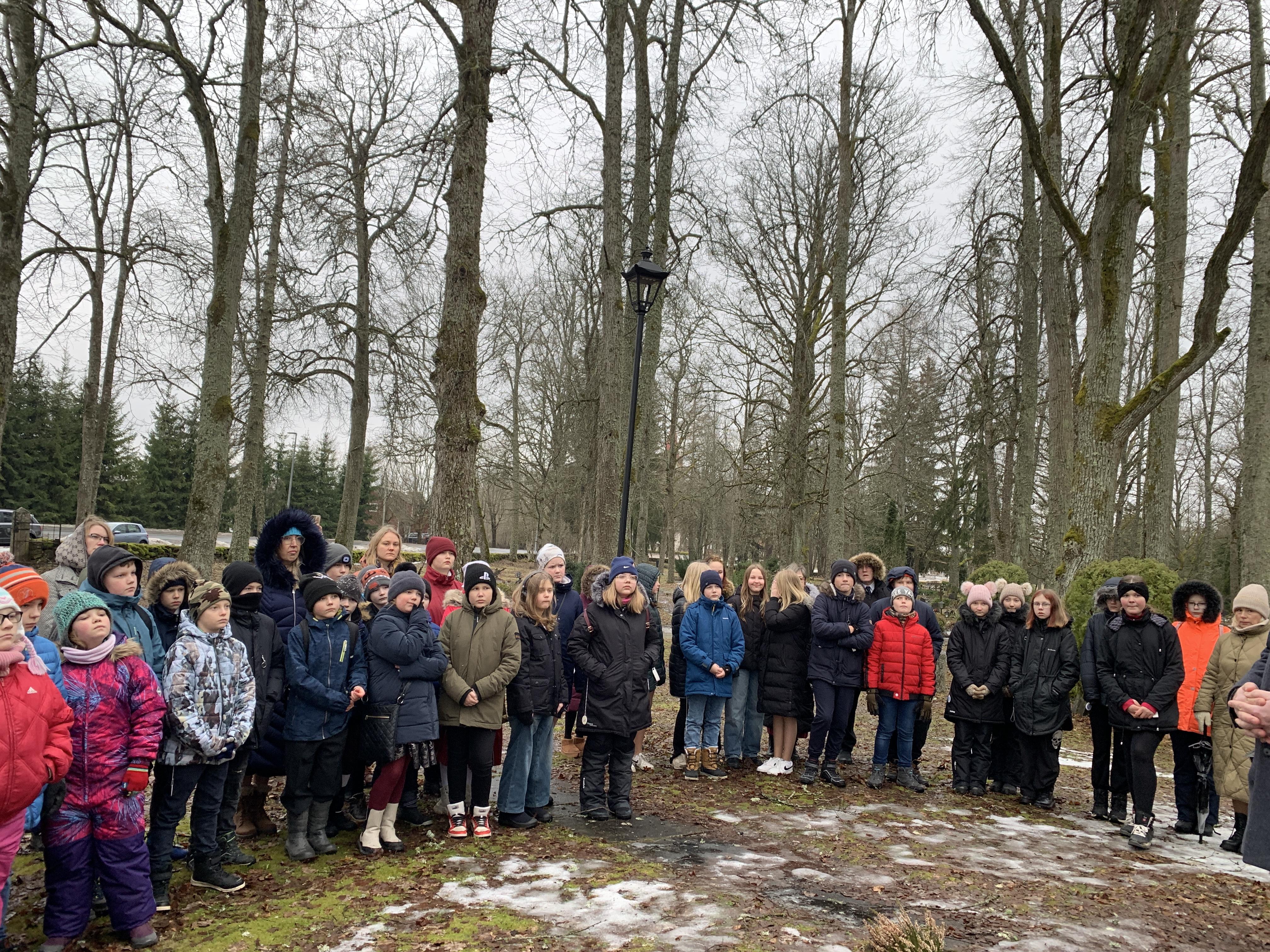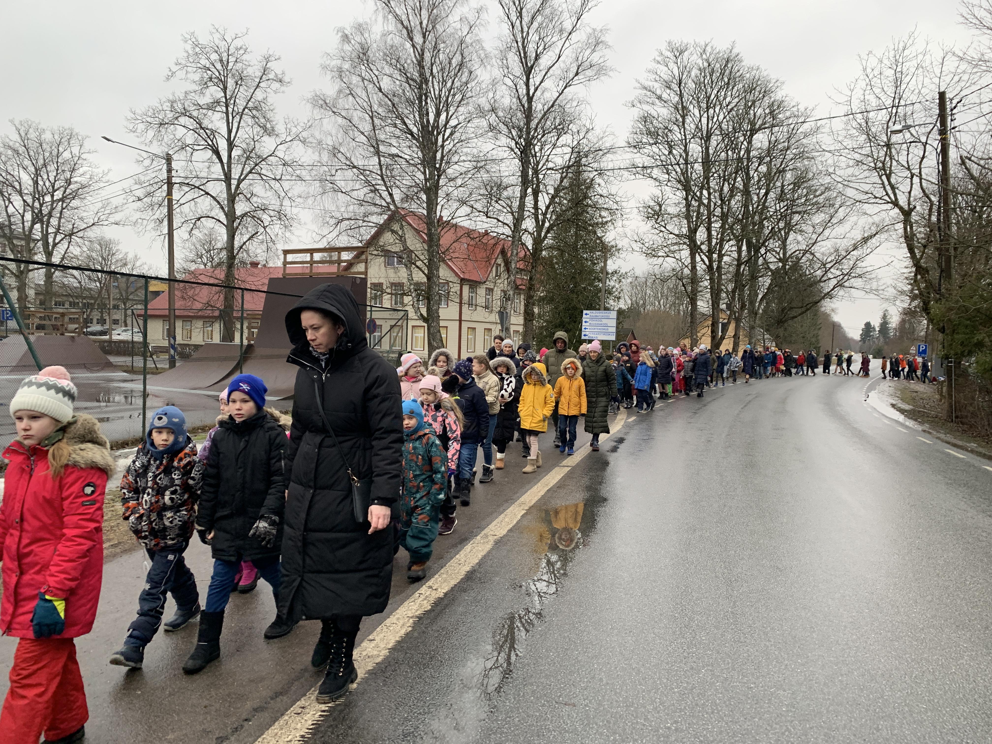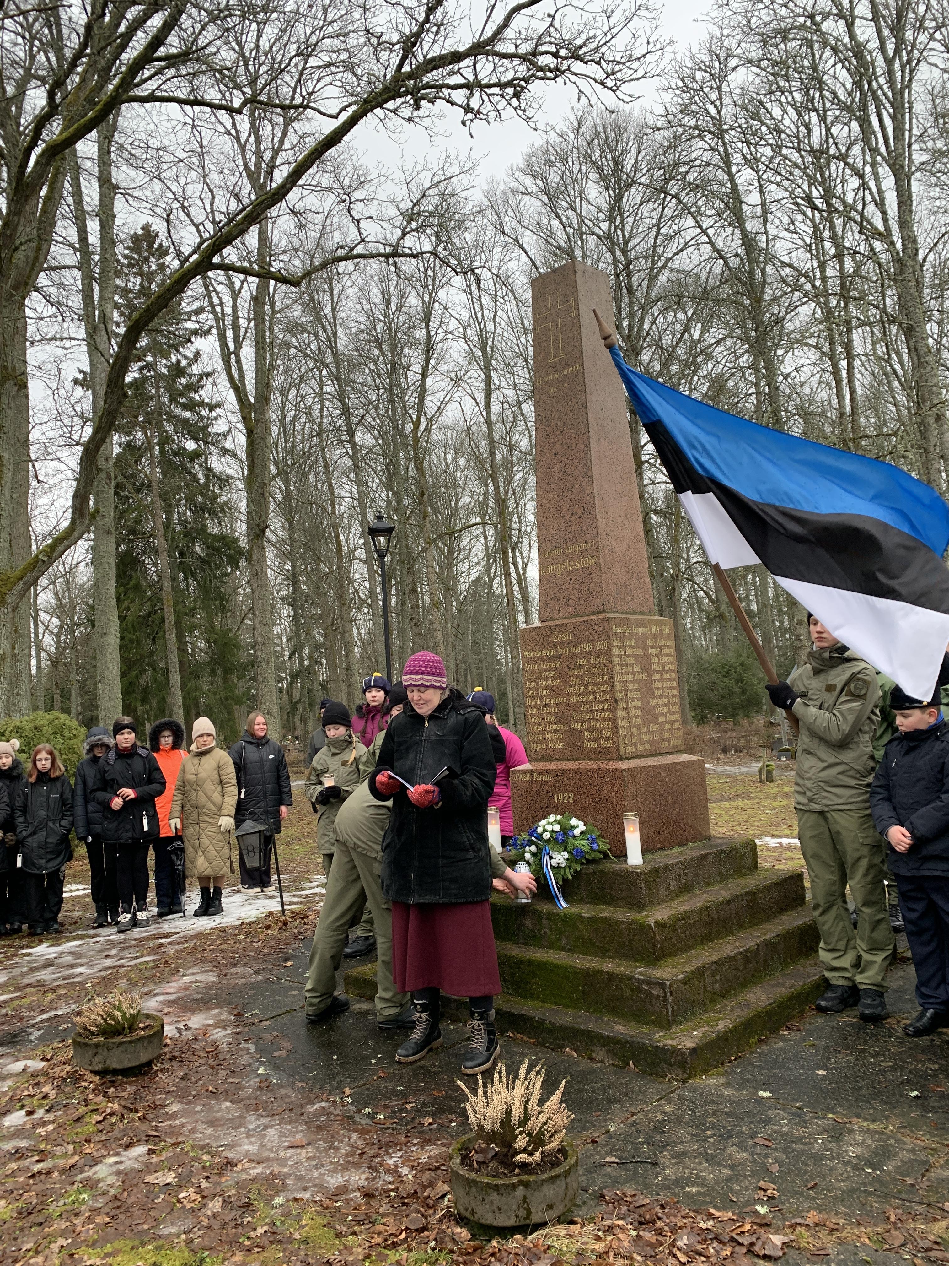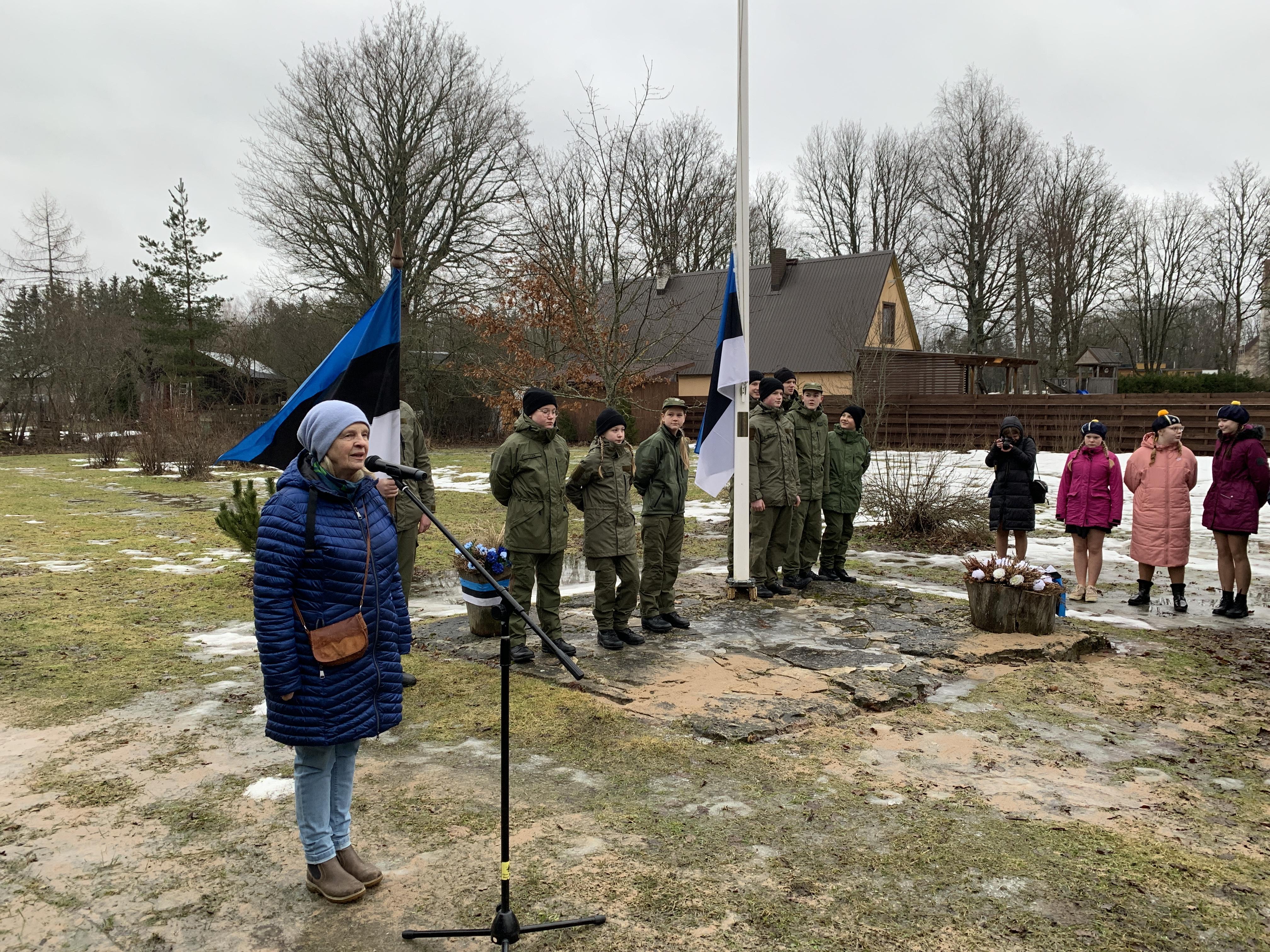 Õpetaja Tiiu oli ettevalmistanud ilusa sissejuhatuse meie üritustesse. Muuseumihoovilt suundusime ühise rongkäiguga kalmistule vabadussõja samba juurde, kus sõna said vallavanem Madis Koit, kirikuõpetaja Kristiina Jõgi. Üheskoos laulsime Hoia jumal Eestist ja mälestasime kangelasi.