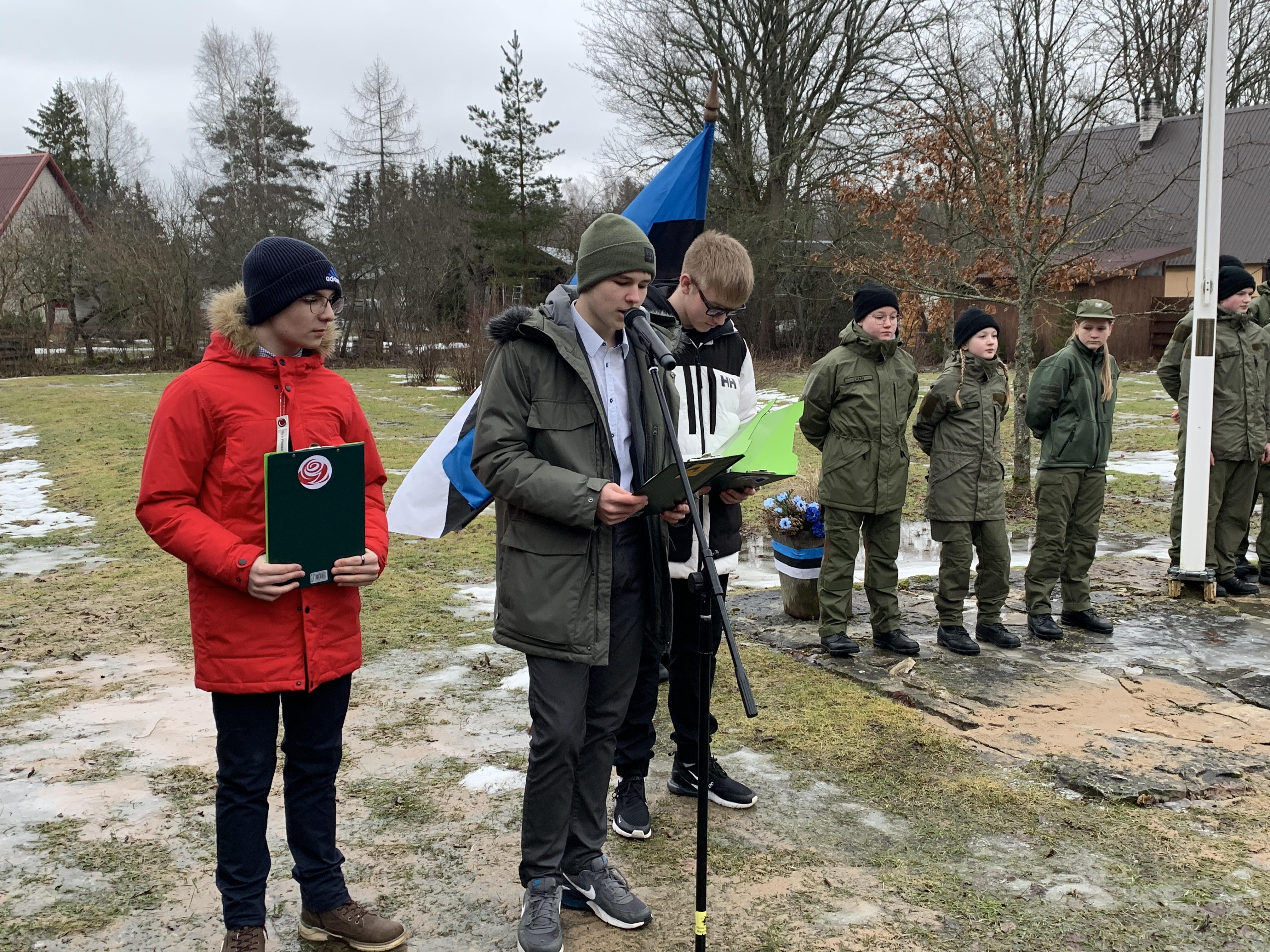 23. veebruaril kell 9.00 kogunes koolipere muuseumi hoovile, kus heiskasime lipu ja laulsime hümni. 9. klassi õpilane Uku luges ette iseseisvusmanifesti koos ülesannetega järeltulevastele põlvedele.
