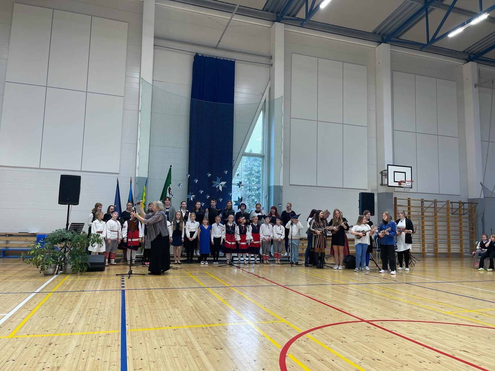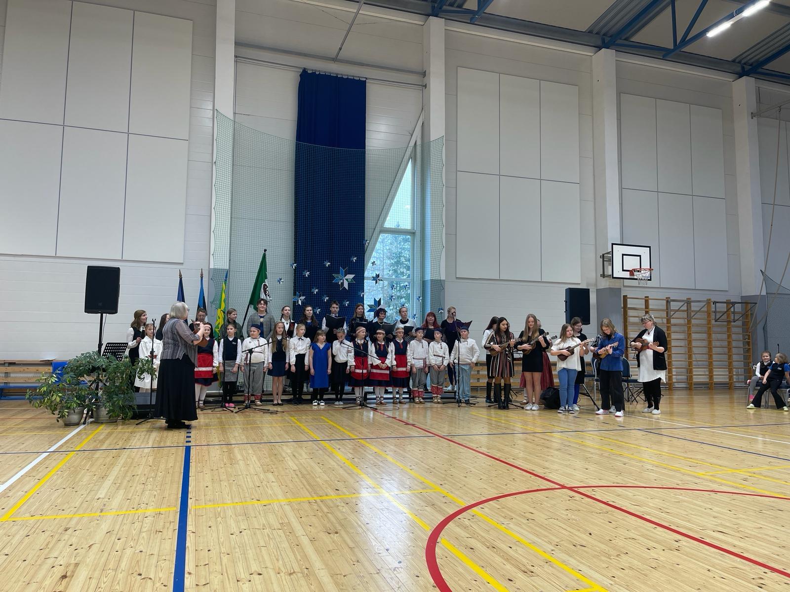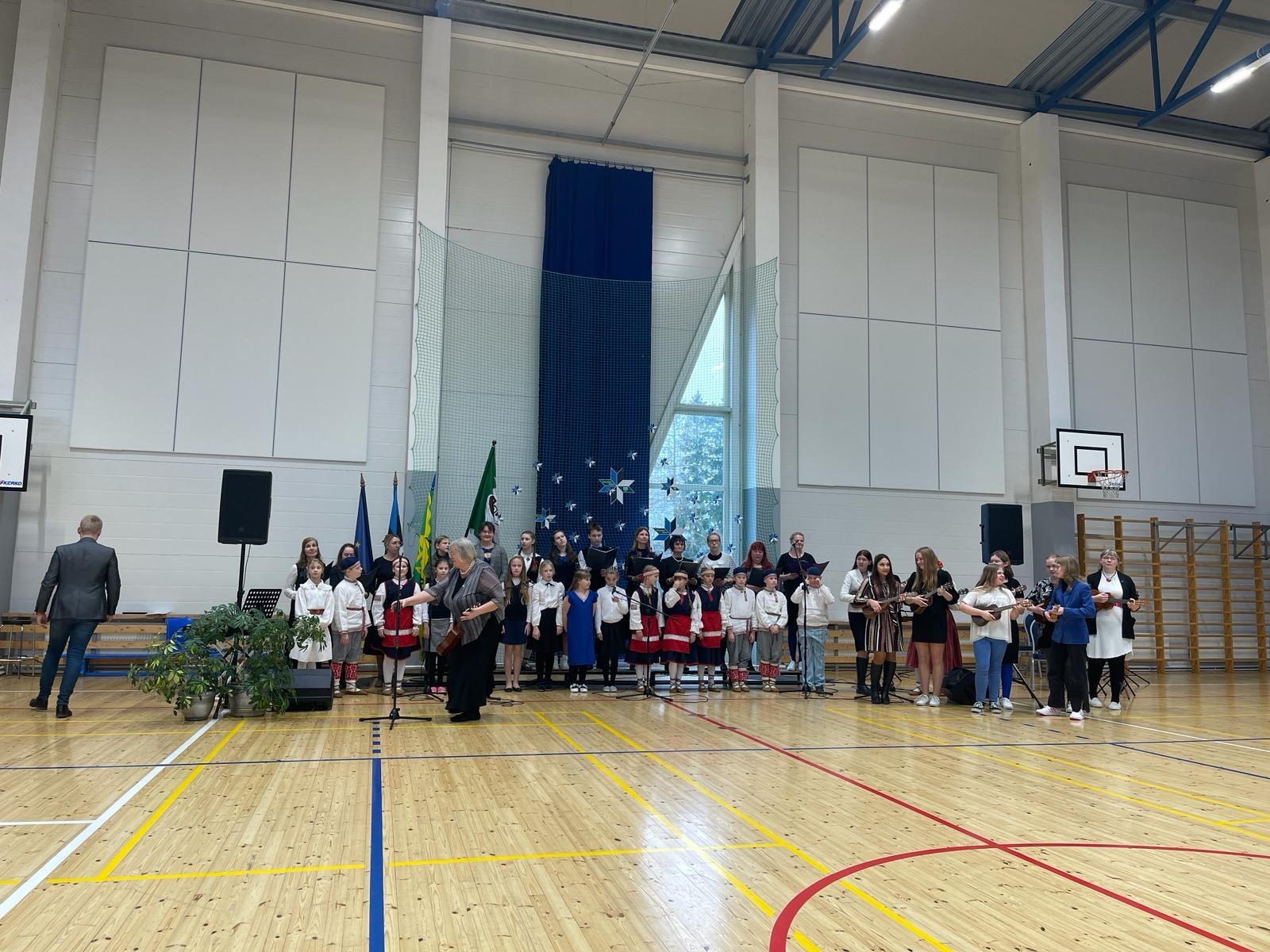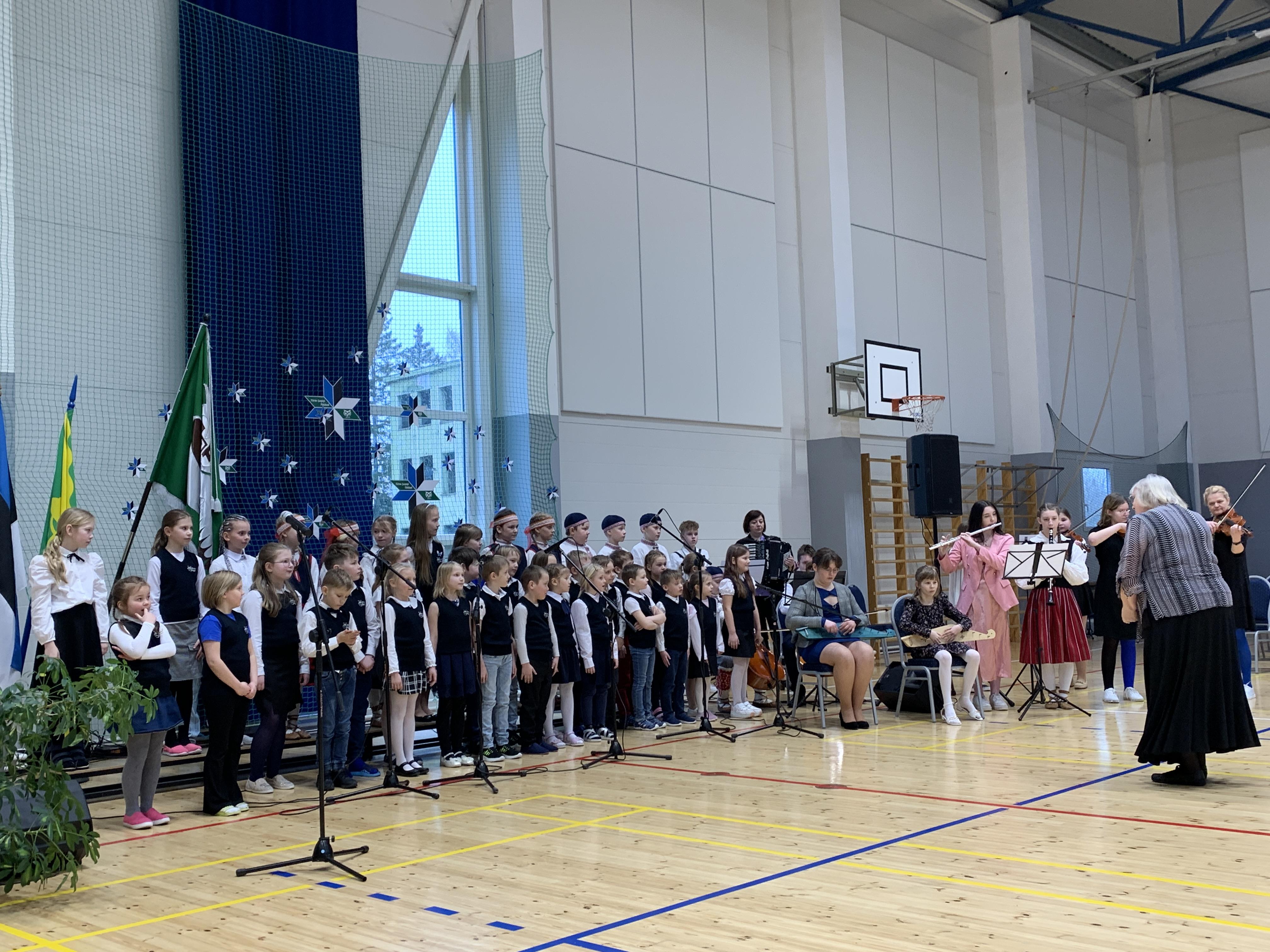 23. veebruari üritused jätkusid koolis piduliku kätlemise ja kontsert-aktusega spordikeskuses. Aktusel said sõna direktor Joel Pulk, Oma Riigi juht Rebecca Laidna ja abivallavanem Tarvi Tasane. Õpilastele olid laulud, tantsud ja pillimängu selgeks õpetanud õpetajad Elena, Reina, Triin ja Tiina. Kava pani kokku ja üritust vedas Anne Alus. Kogu kontsert oli südamlik, rahvuslik ja meeli ülendav.