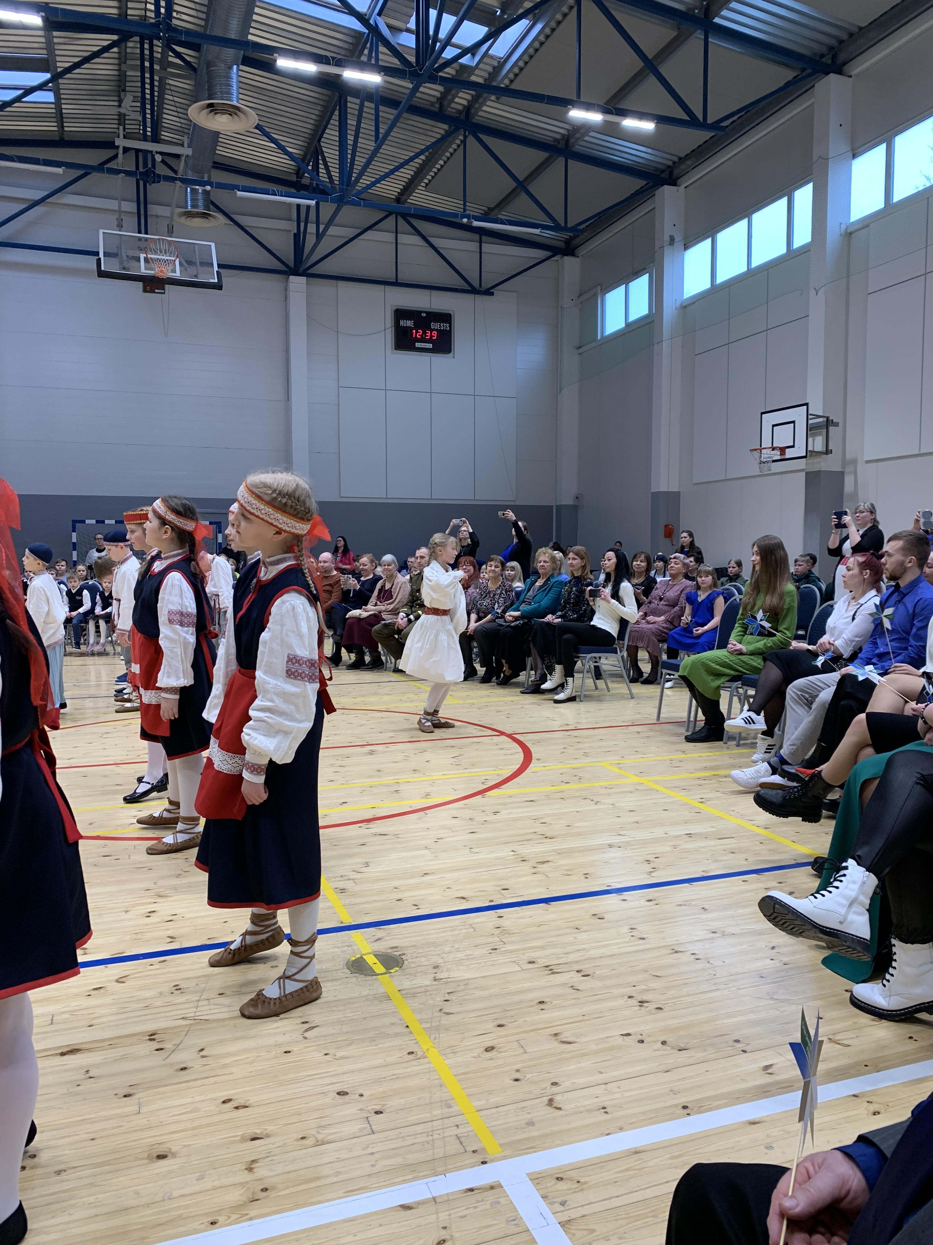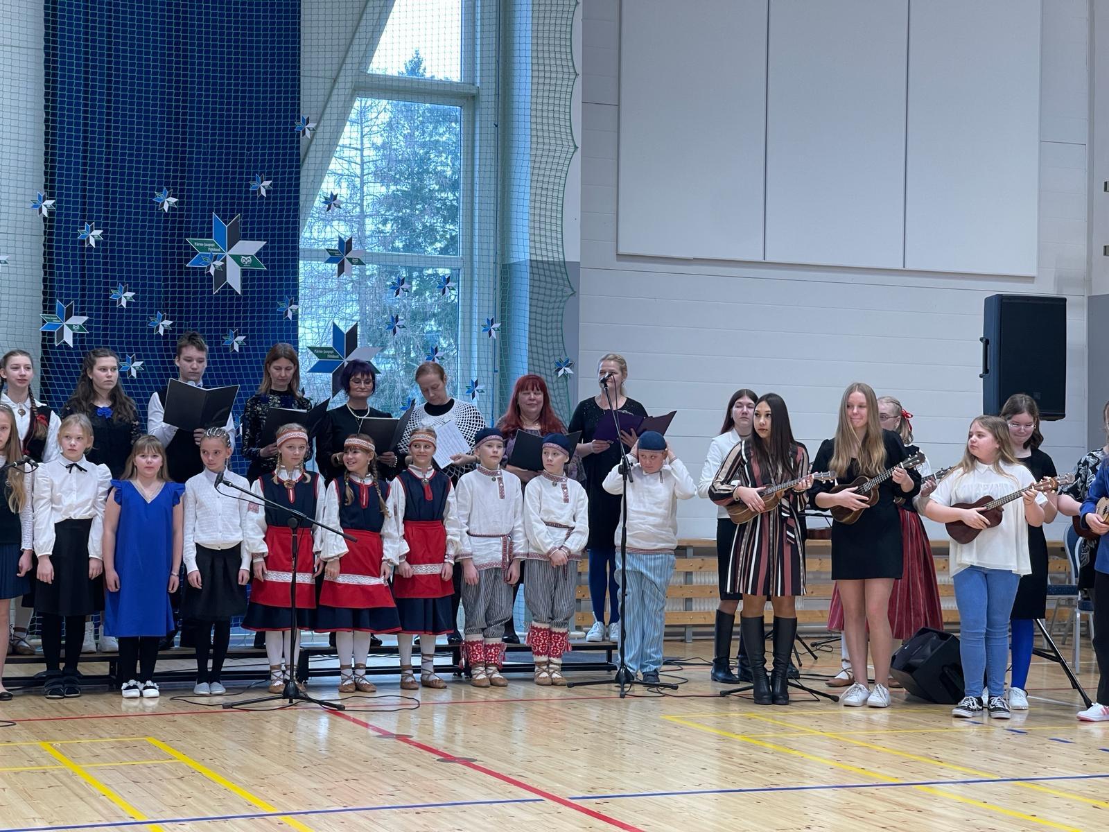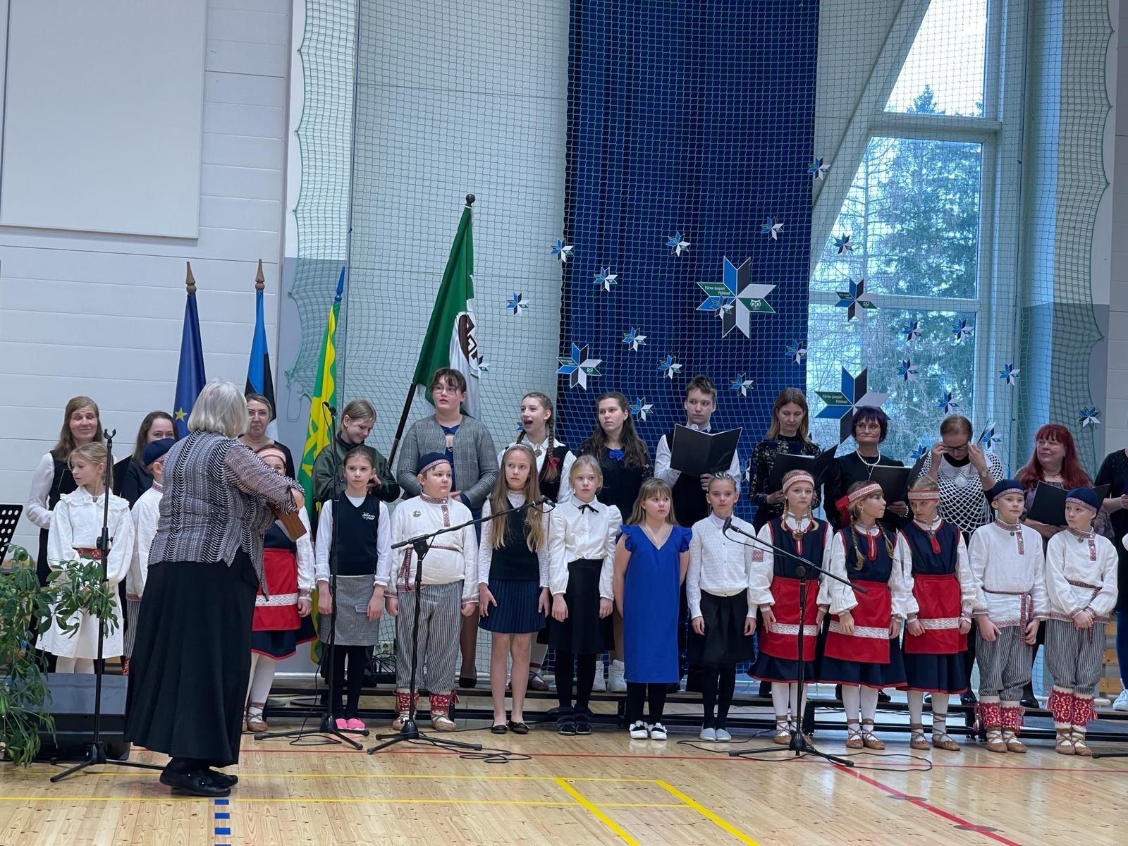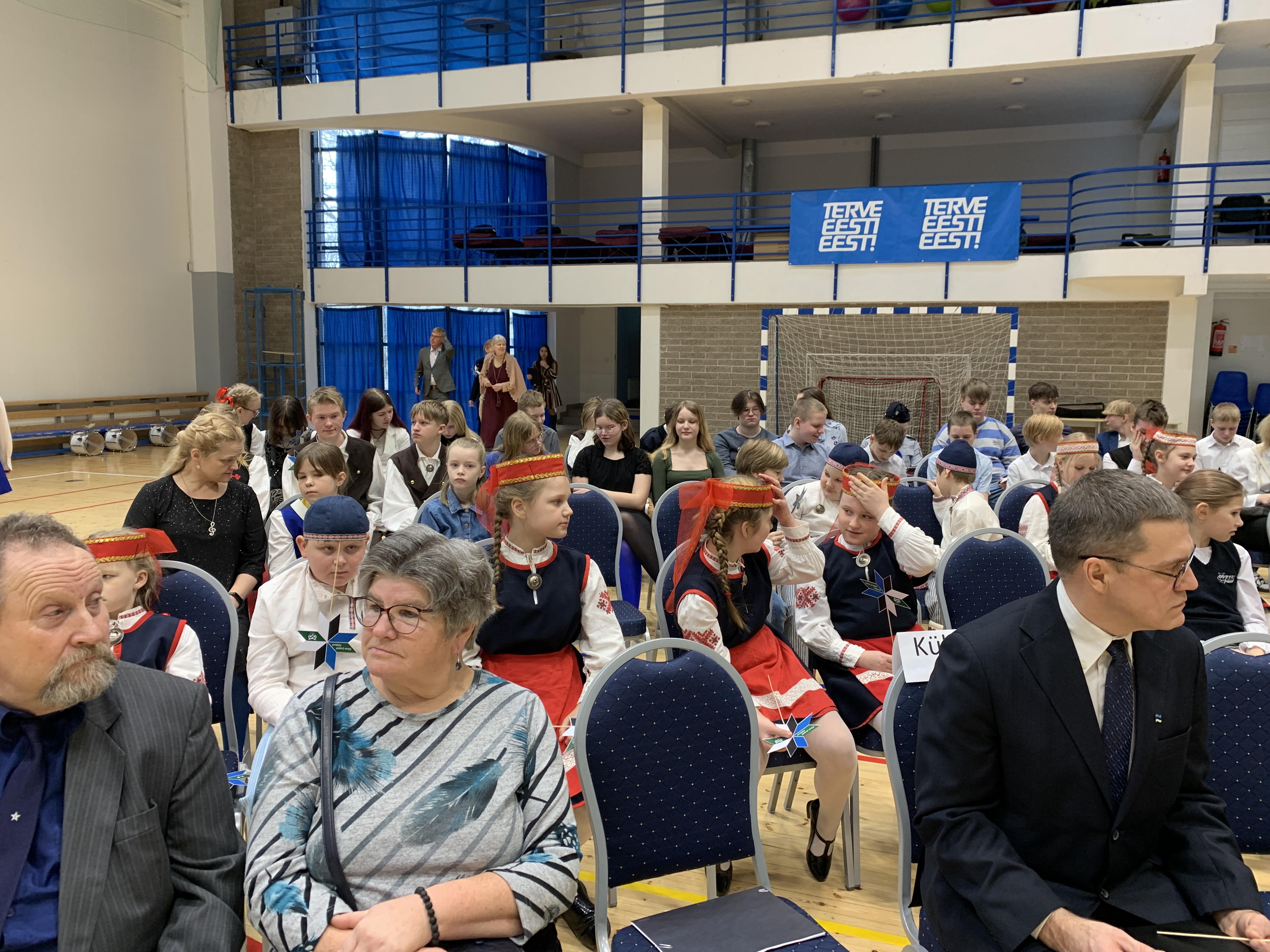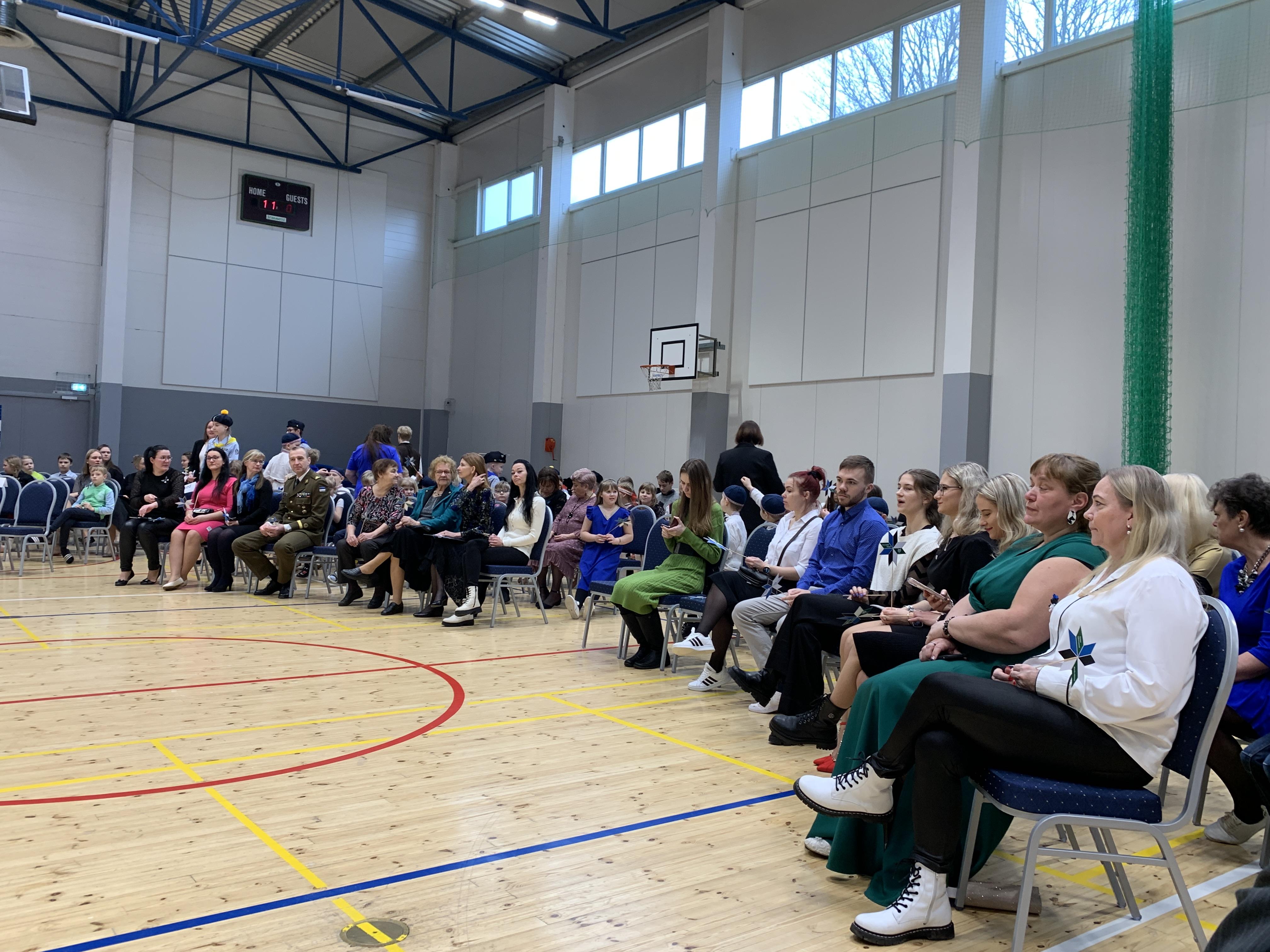 23. veebruari üritused jätkusid koolis piduliku kätlemise ja kontsert-aktusega spordikeskuses. Aktusel said sõna direktor Joel Pulk, Oma Riigi juht Rebecca Laidna ja abivallavanem Tarvi Tasane. Õpilastele olid laulud, tantsud ja pillimängu selgeks õpetanud õpetajad Elena, Reina, Triin ja Tiina. Kava pani kokku ja üritust vedas Anne Alus. Kogu kontsert oli südamlik, rahvuslik ja meeli ülendav.