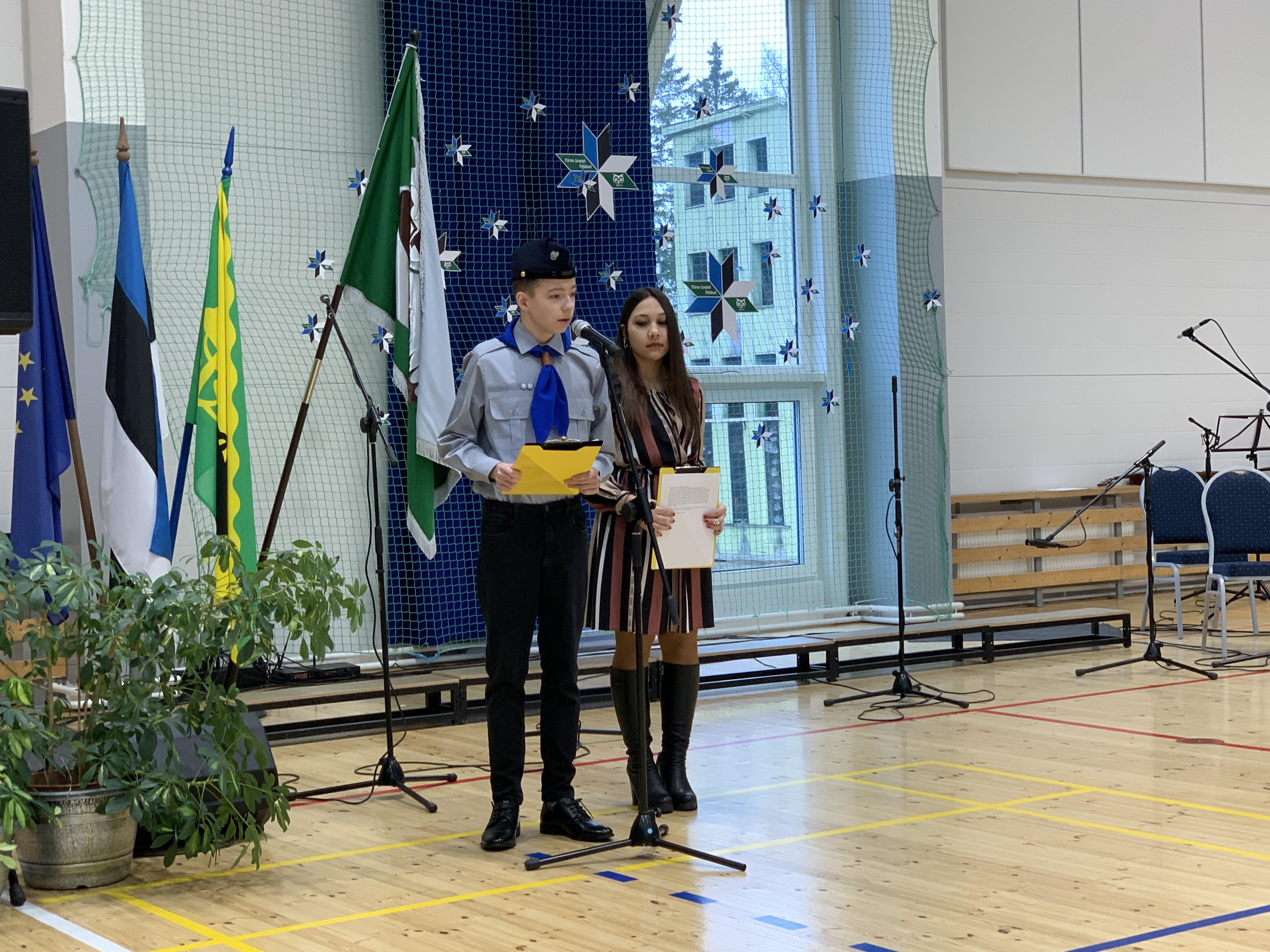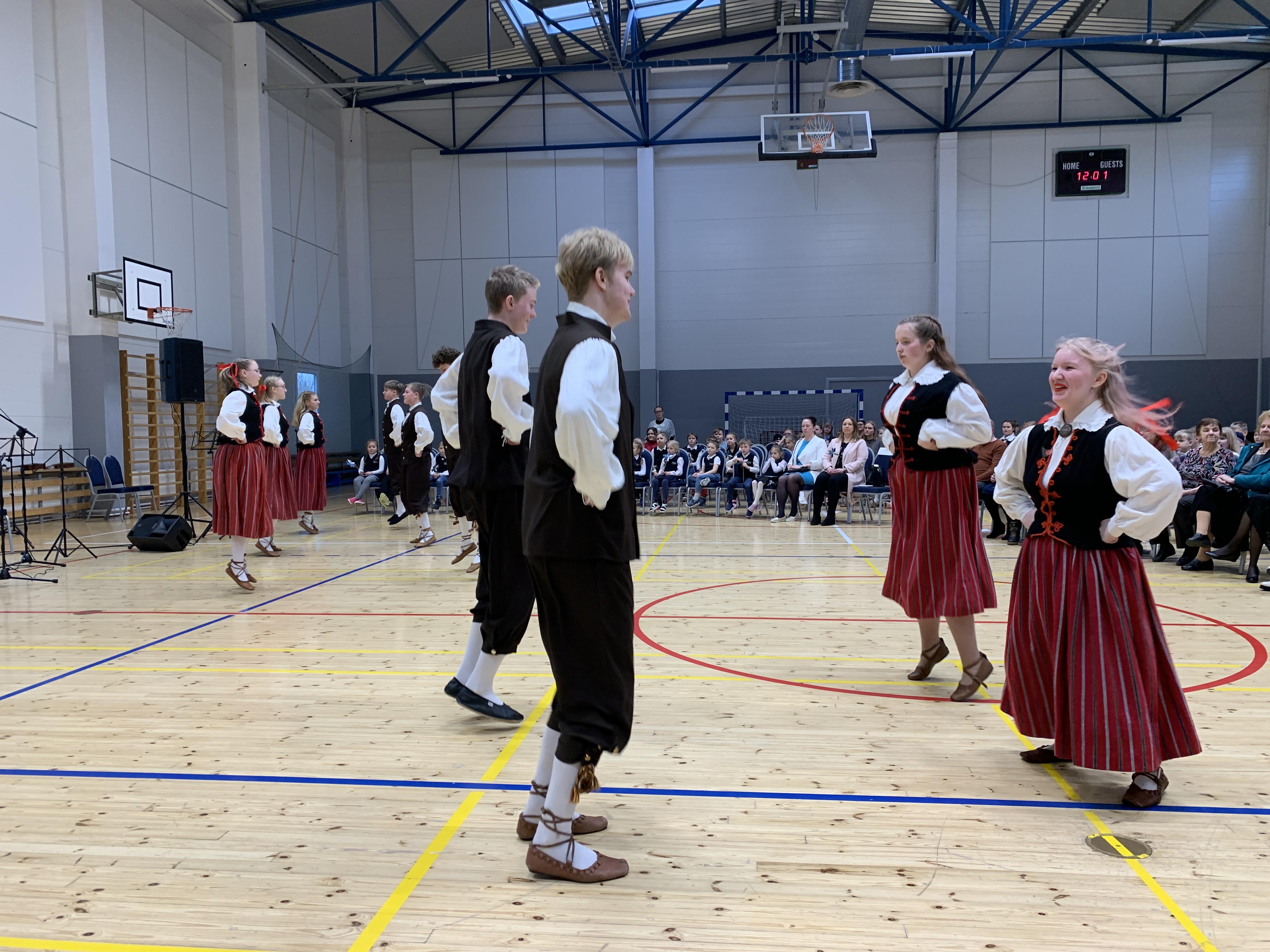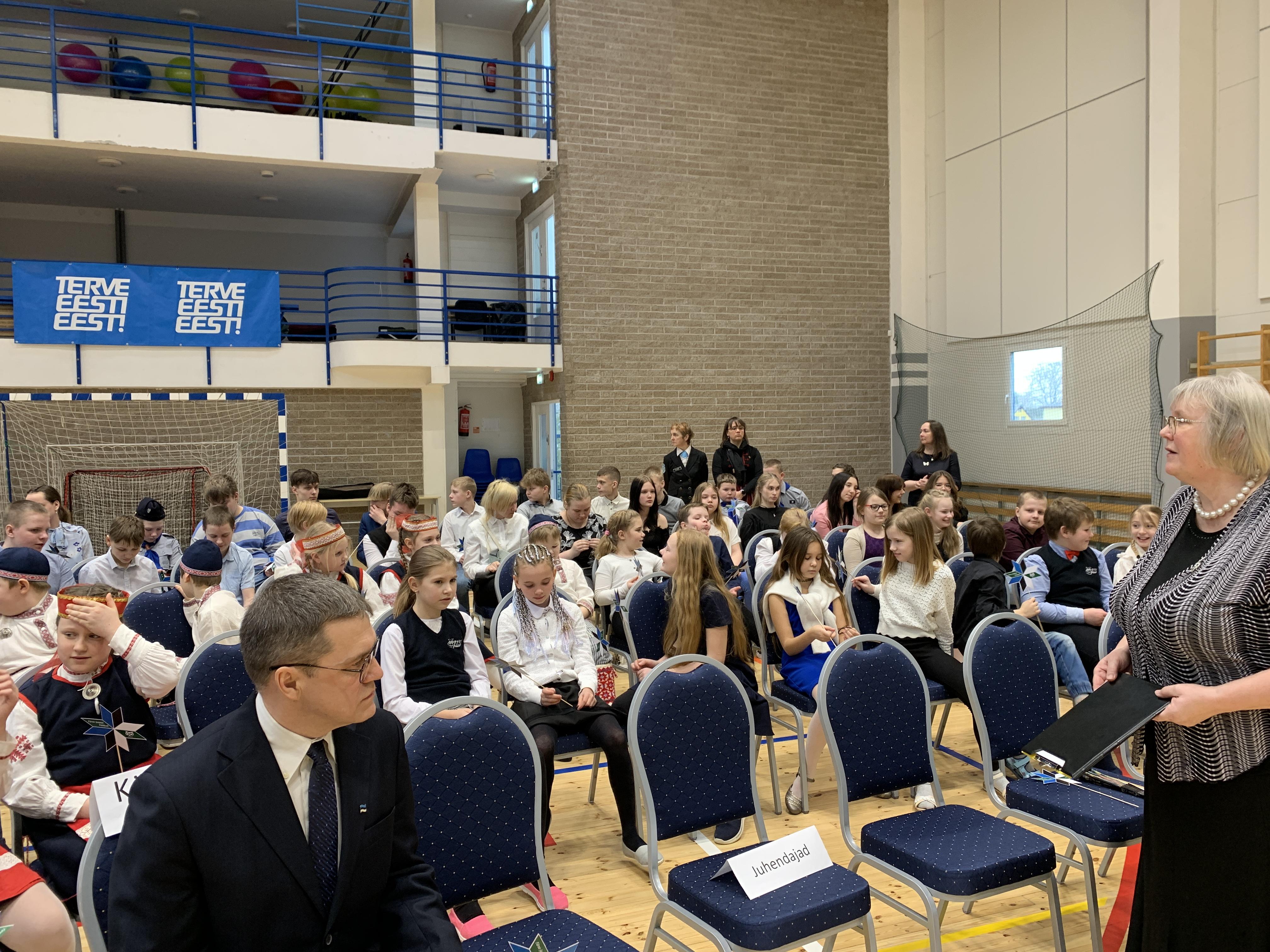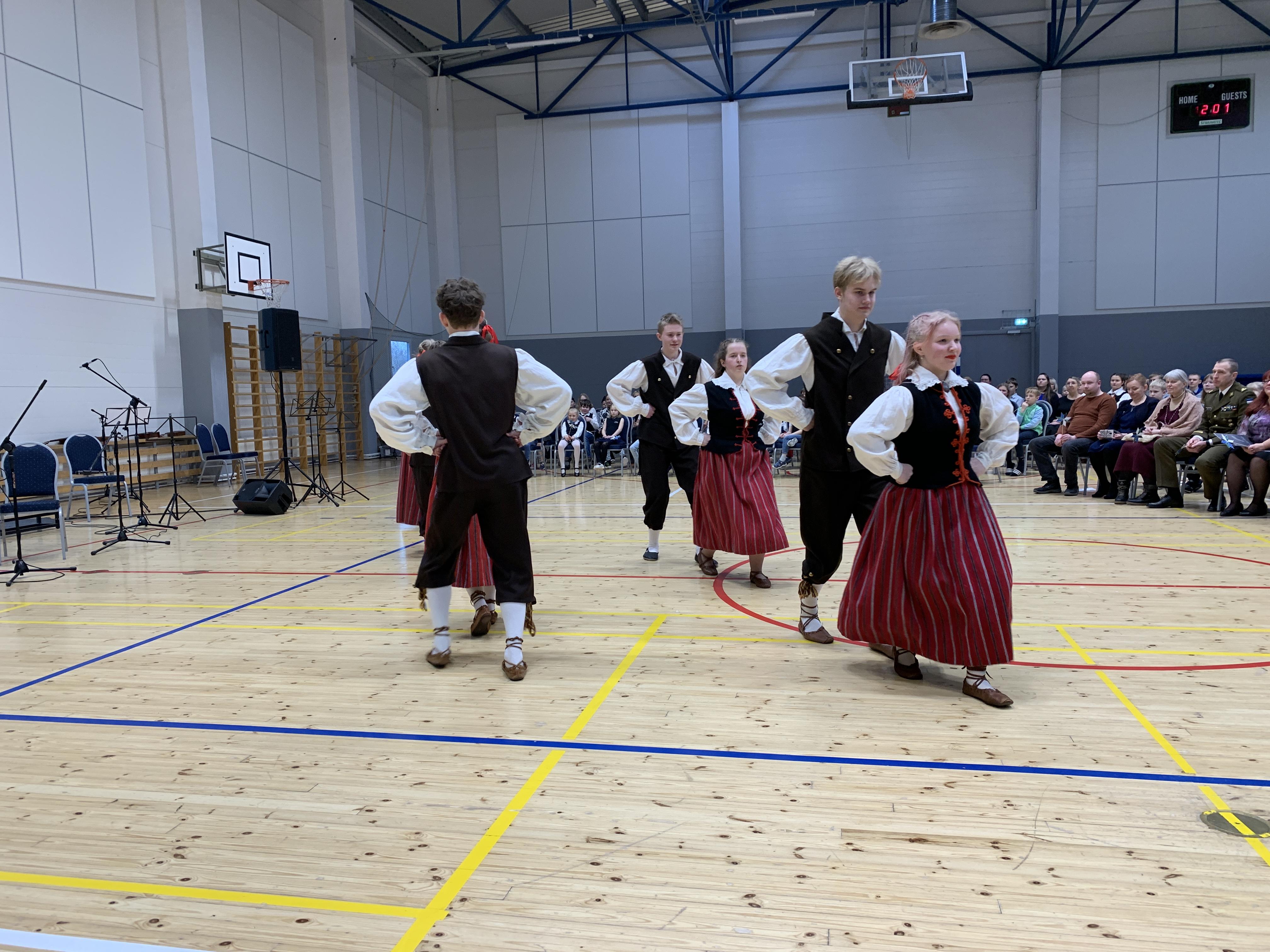 23. veebruari üritused jätkusid koolis piduliku kätlemise ja kontsert-aktusega spordikeskuses. Aktusel said sõna direktor Joel Pulk, Oma Riigi juht Rebecca Laidna ja abivallavanem Tarvi Tasane. Õpilastele olid laulud, tantsud ja pillimängu selgeks õpetanud õpetajad Elena, Reina, Triin ja Tiina. Kava pani kokku ja üritust vedas Anne Alus. Kogu kontsert oli südamlik, rahvuslik ja meeli ülendav.