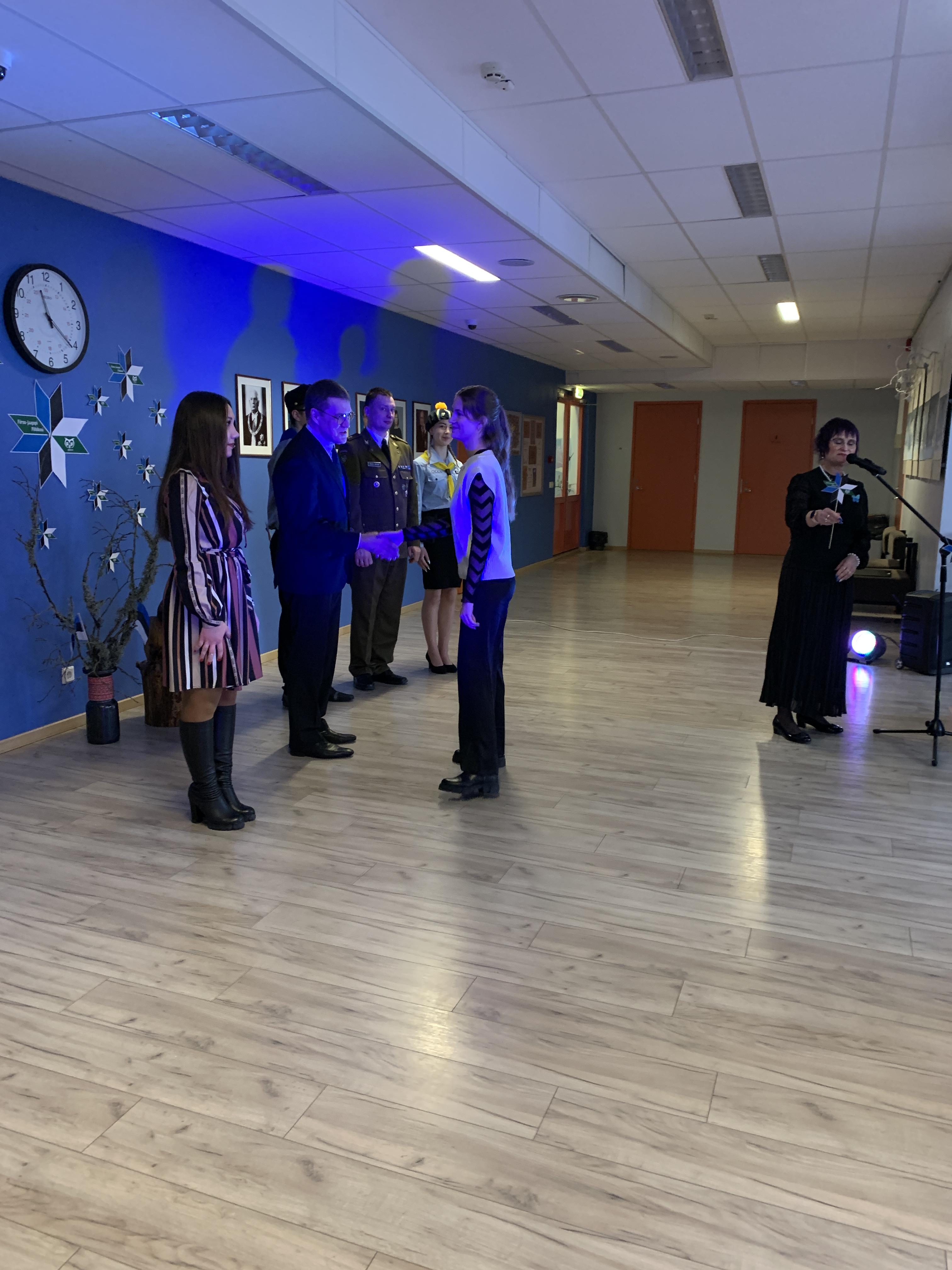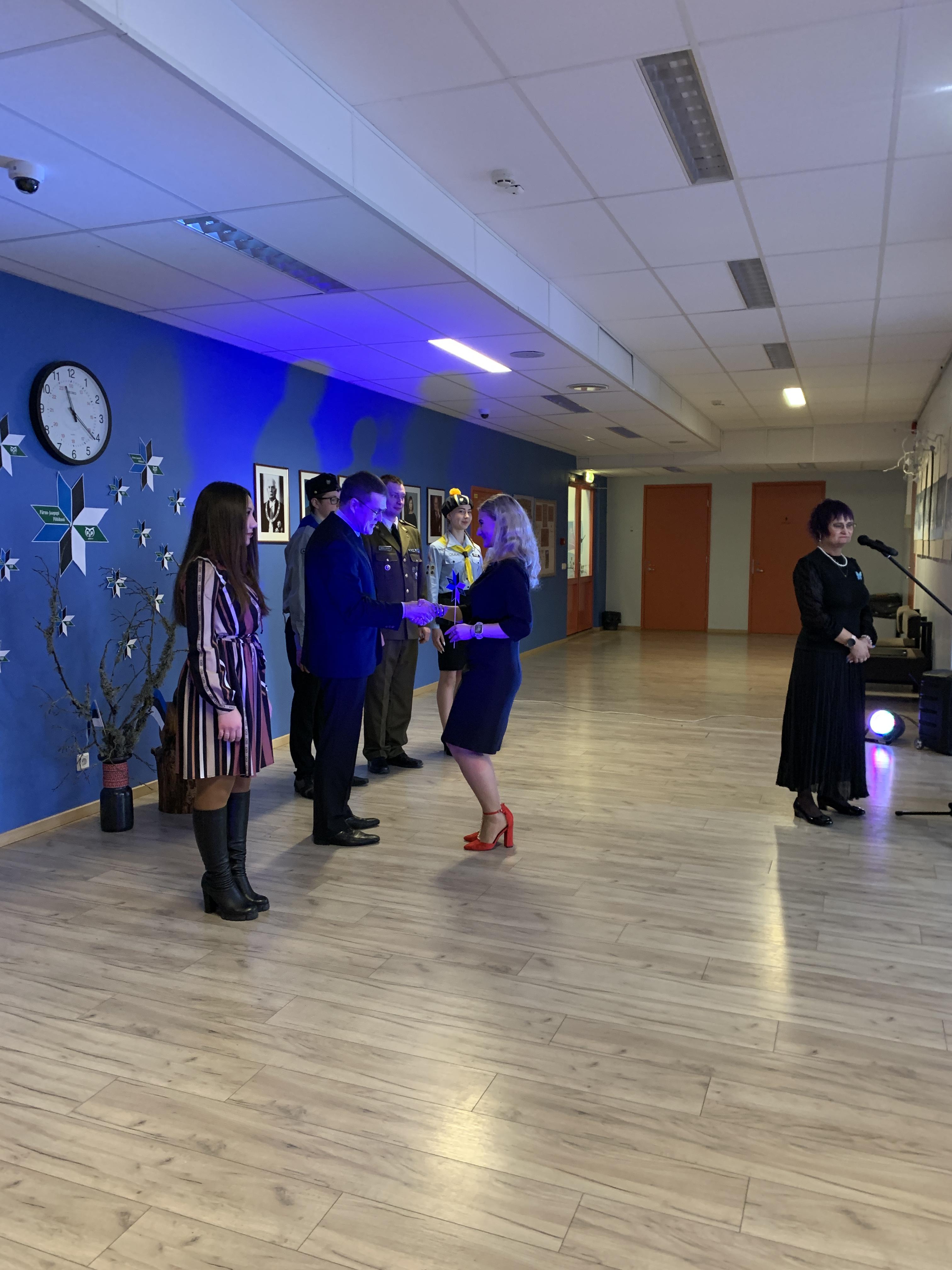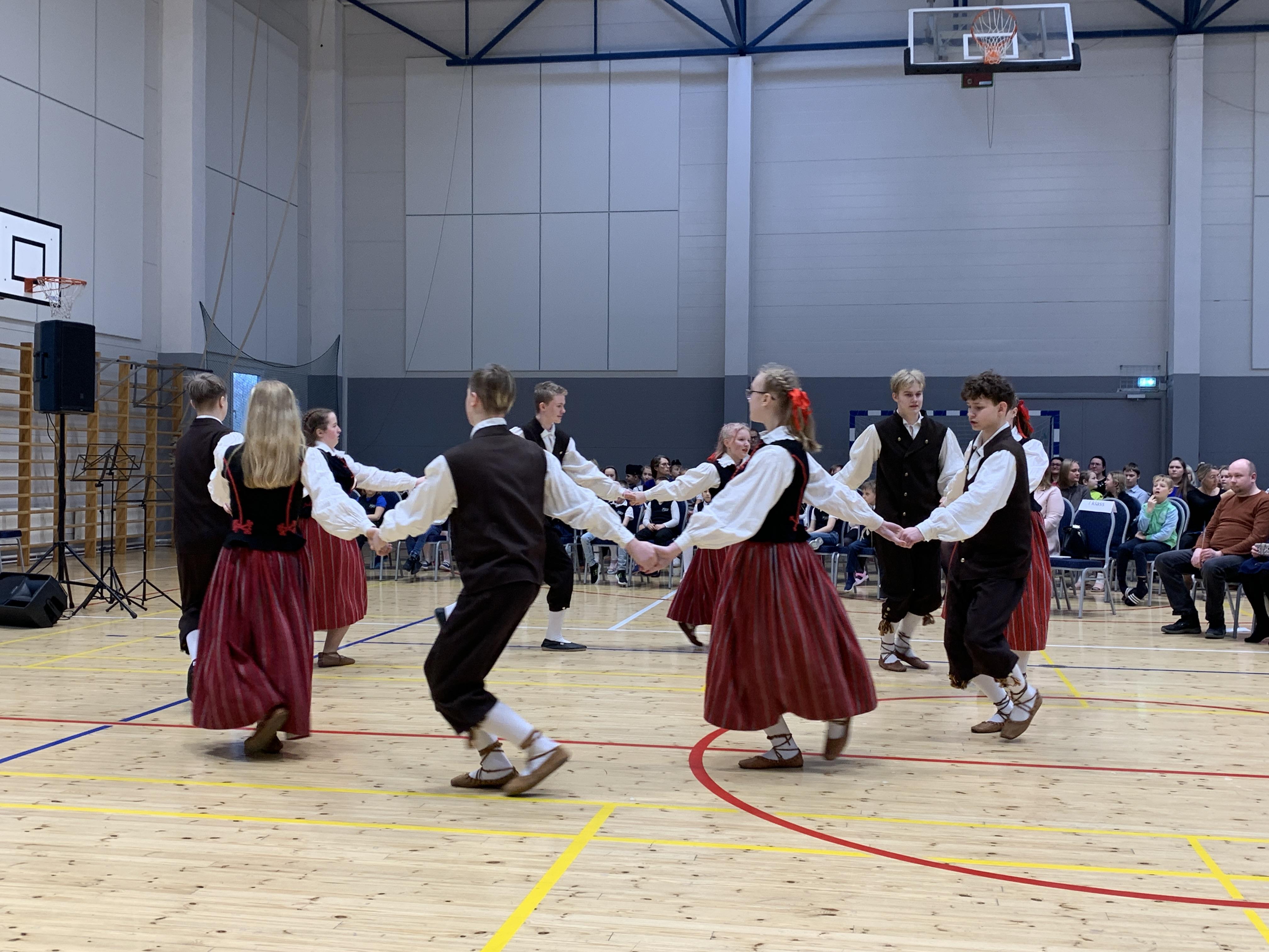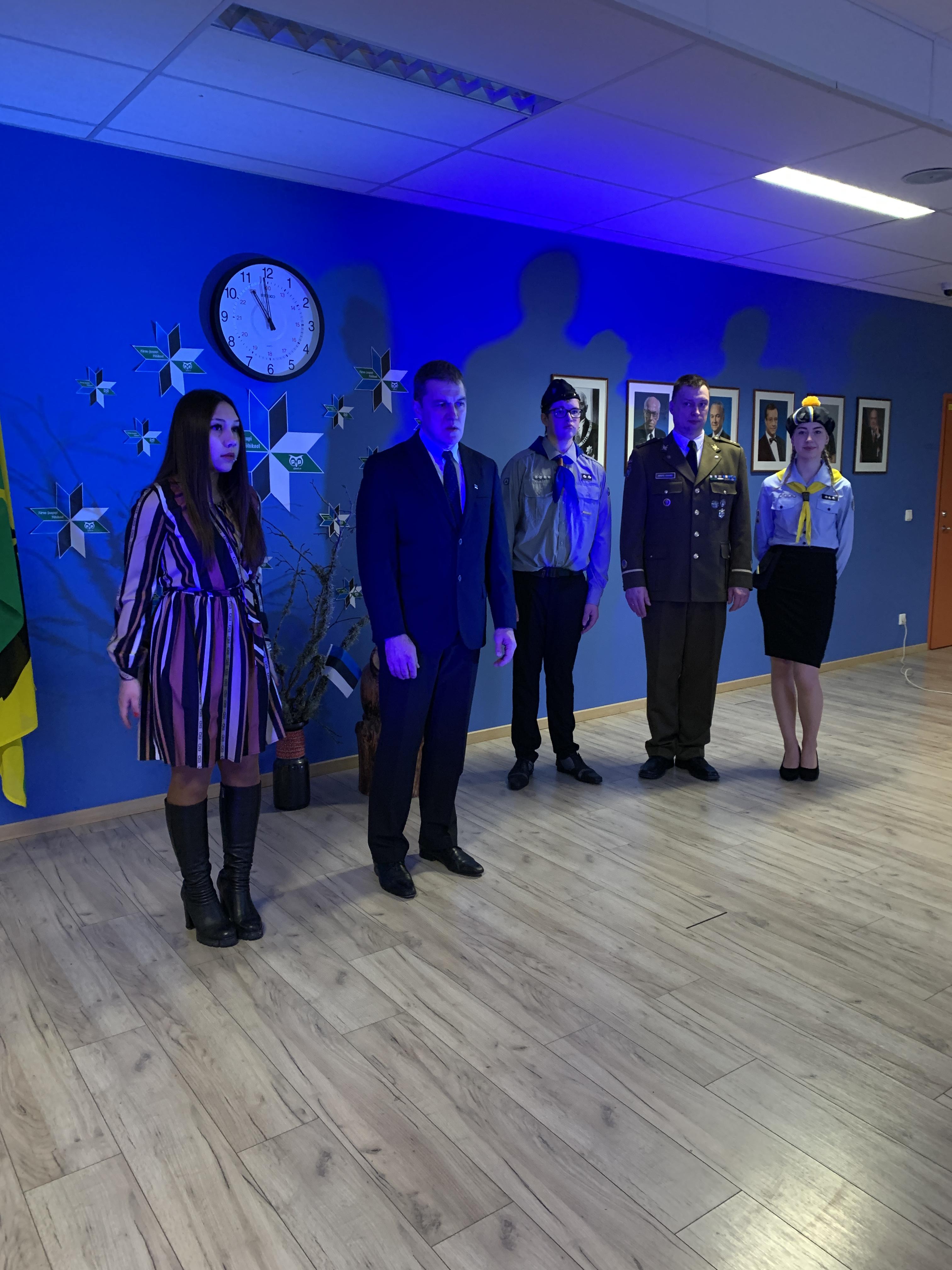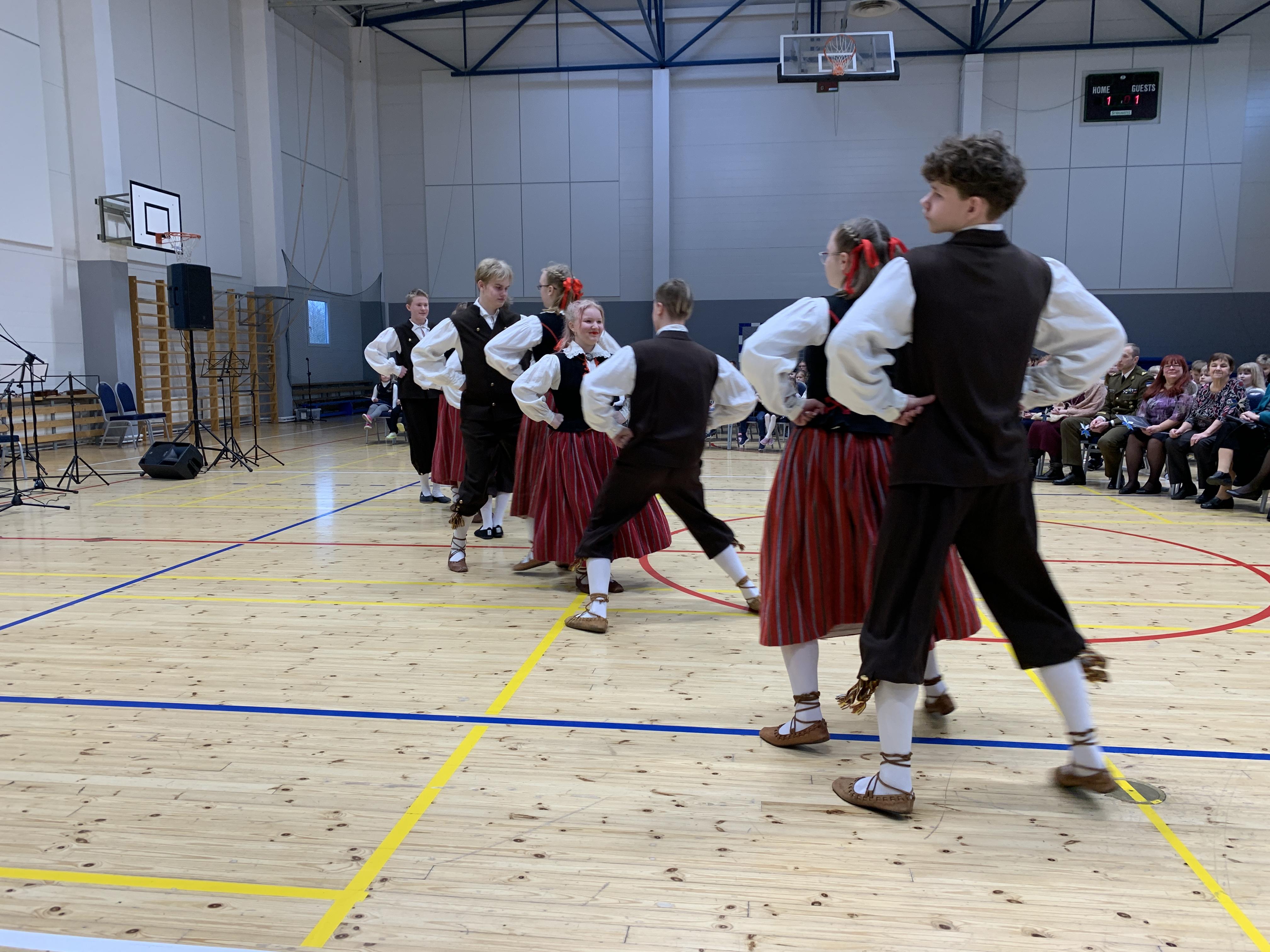 23. veebruari üritused jätkusid koolis piduliku kätlemise ja kontsert-aktusega spordikeskuses. Aktusel said sõna direktor Joel Pulk, Oma Riigi juht Rebecca Laidna ja abivallavanem Tarvi Tasane. Õpilastele olid laulud, tantsud ja pillimängu selgeks õpetanud õpetajad Elena, Reina, Triin ja Tiina. Kava pani kokku ja üritust vedas Anne Alus. Kogu kontsert oli südamlik, rahvuslik ja meeli ülendav.