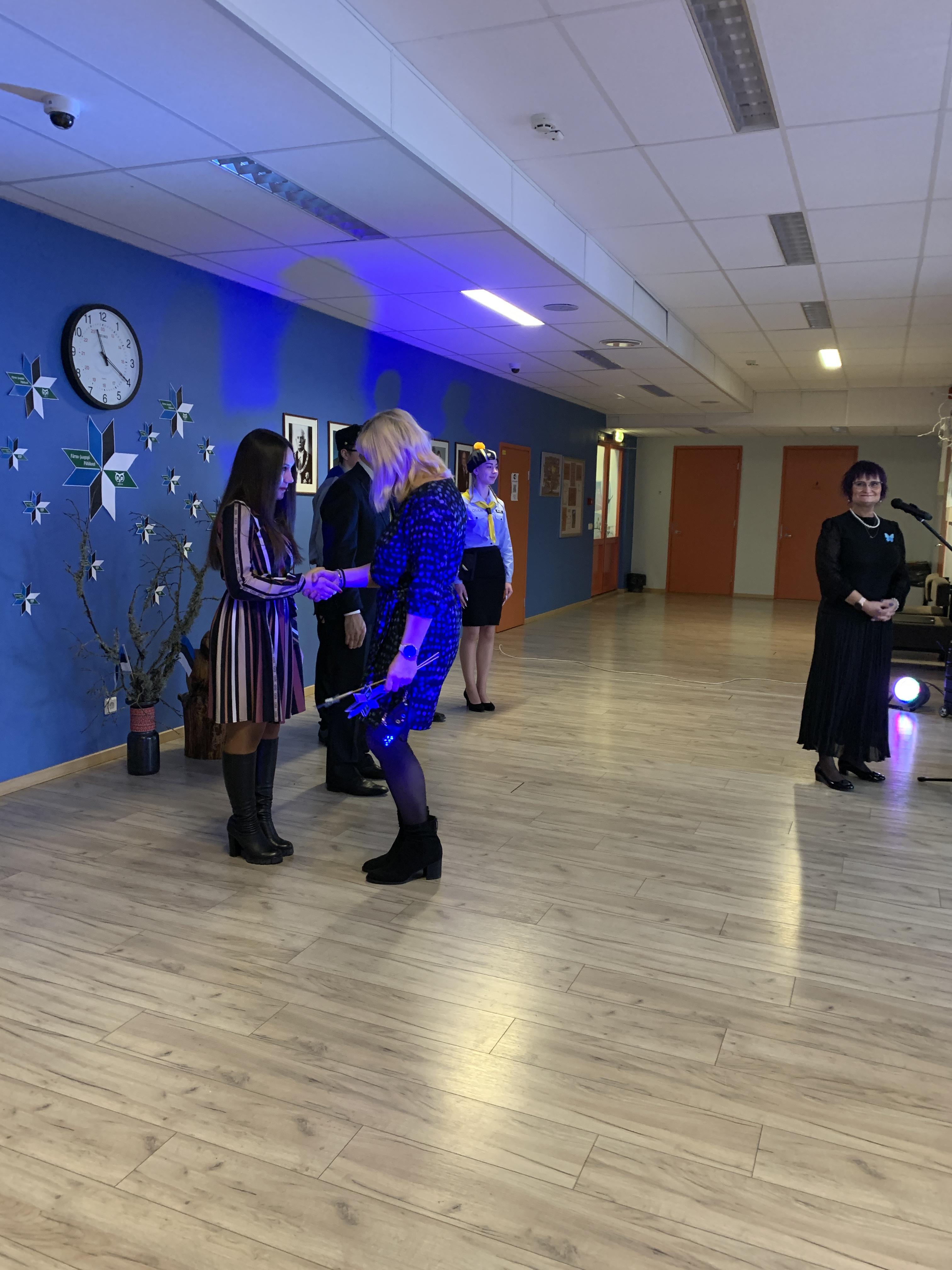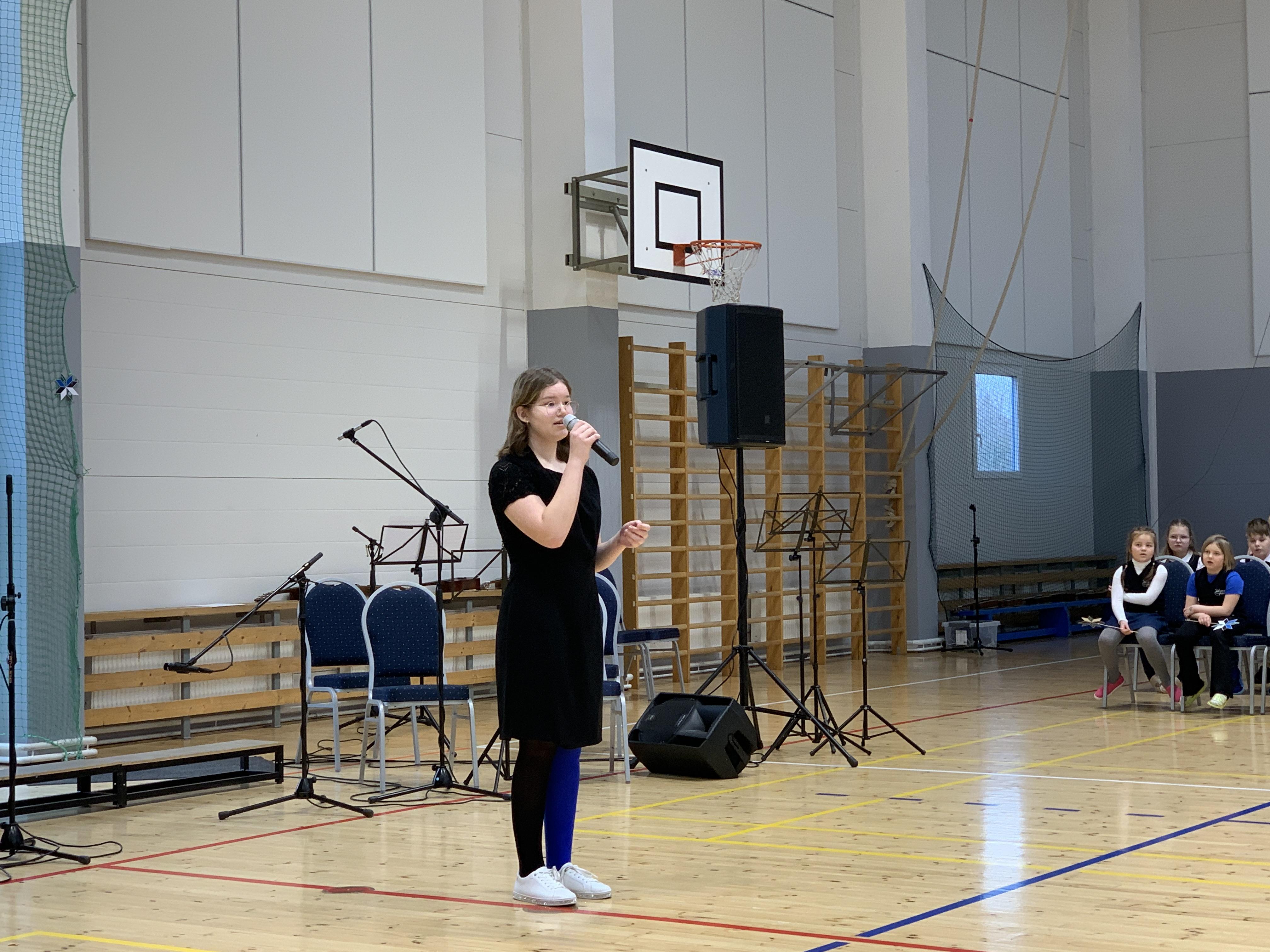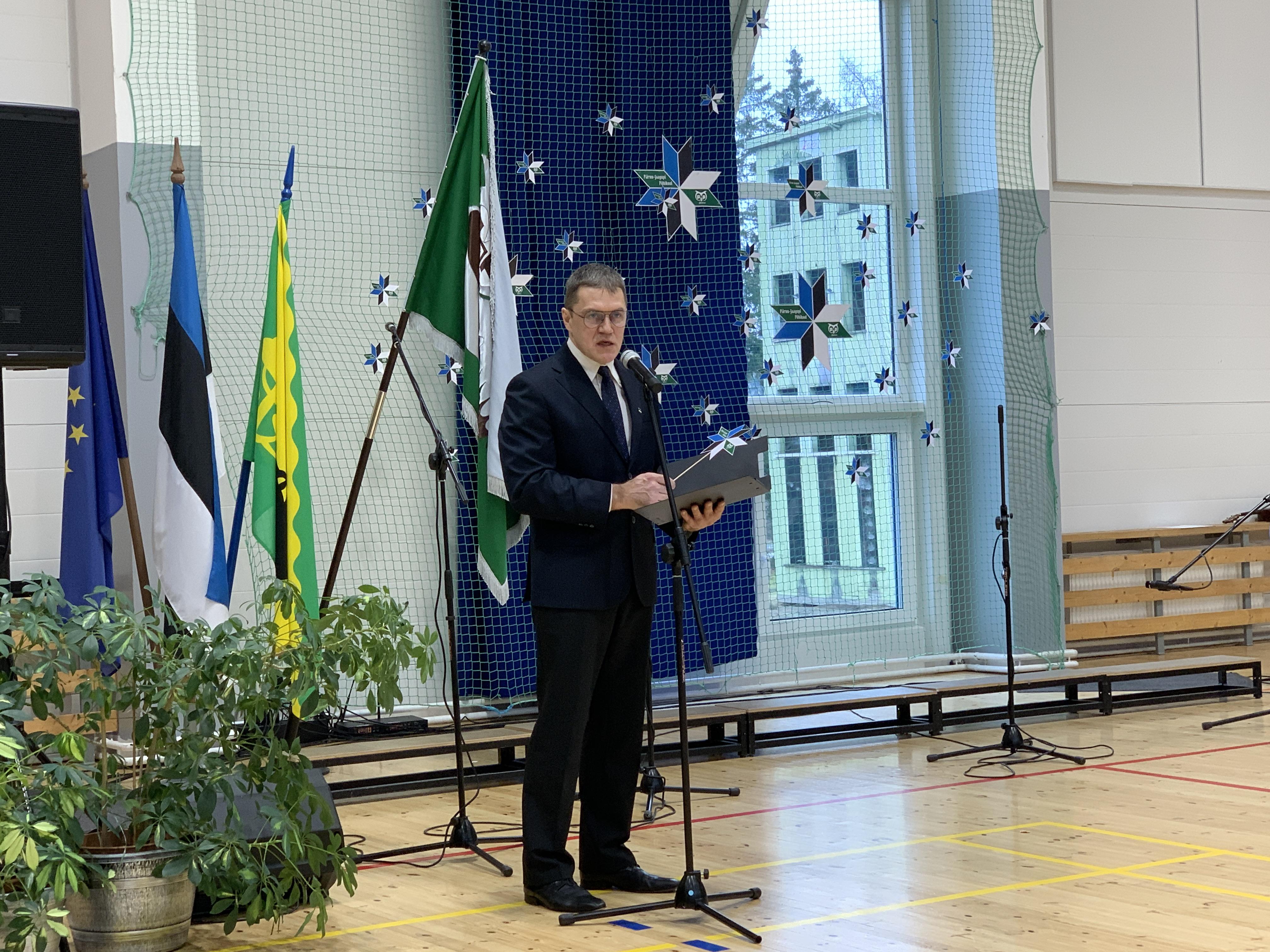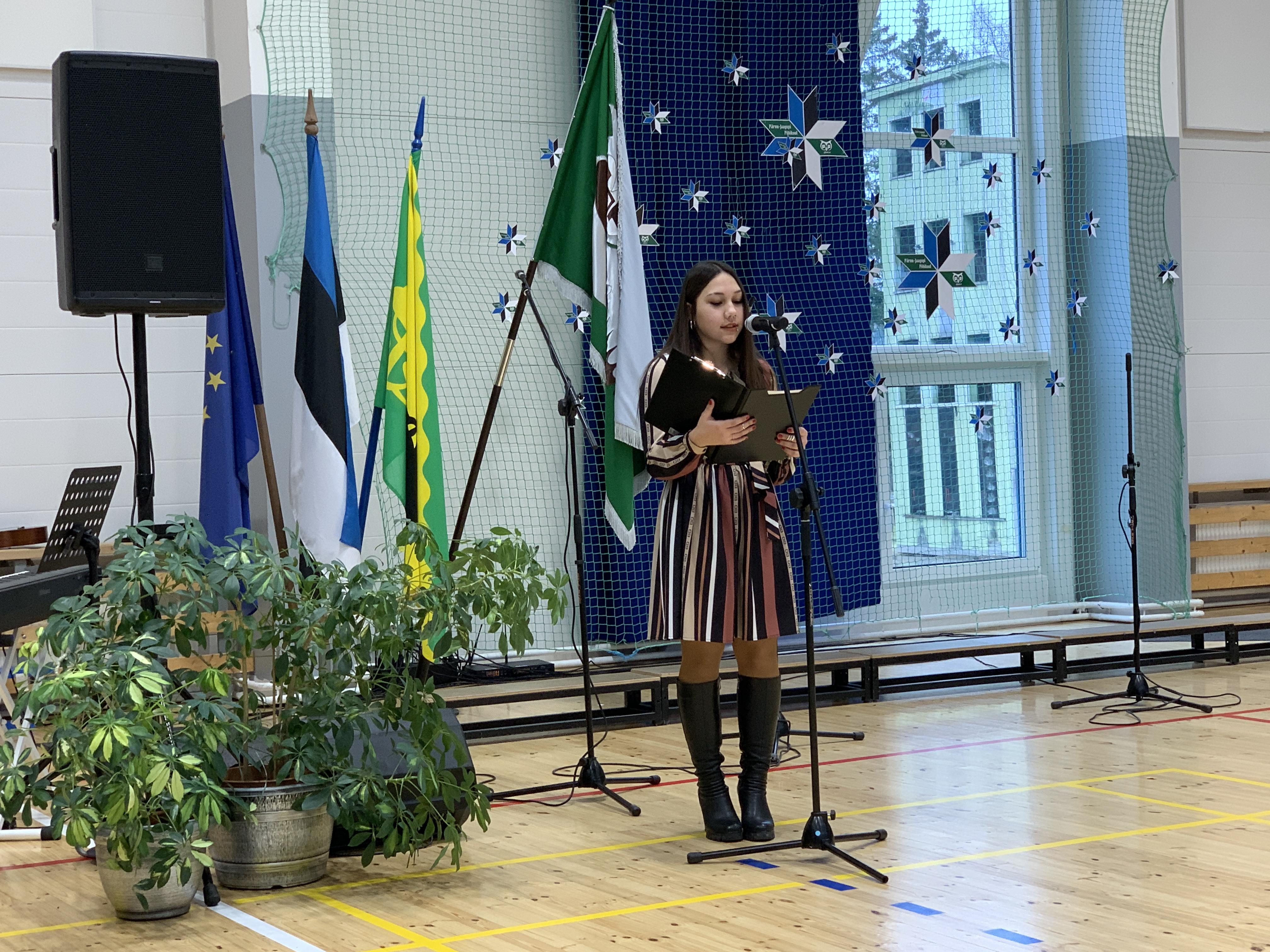 23. veebruari üritused jätkusid koolis piduliku kätlemise ja kontsert-aktusega spordikeskuses. Aktusel said sõna direktor Joel Pulk, Oma Riigi juht Rebecca Laidna ja abivallavanem Tarvi Tasane. Õpilastele olid laulud, tantsud ja pillimängu selgeks õpetanud õpetajad Elena, Reina, Triin ja Tiina. Kava pani kokku ja üritust vedas Anne Alus. Kogu kontsert oli südamlik, rahvuslik ja meeli ülendav.