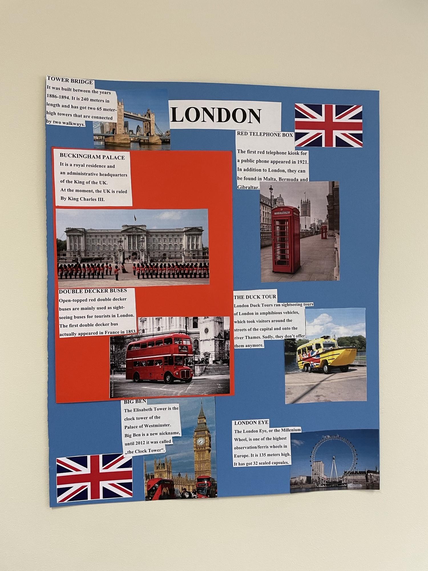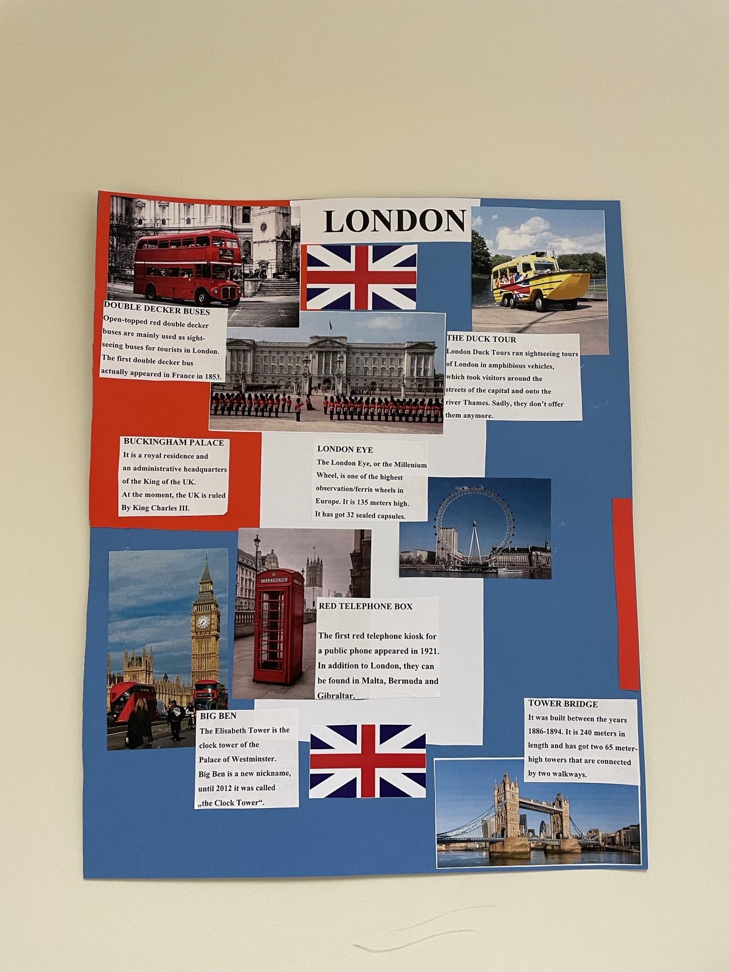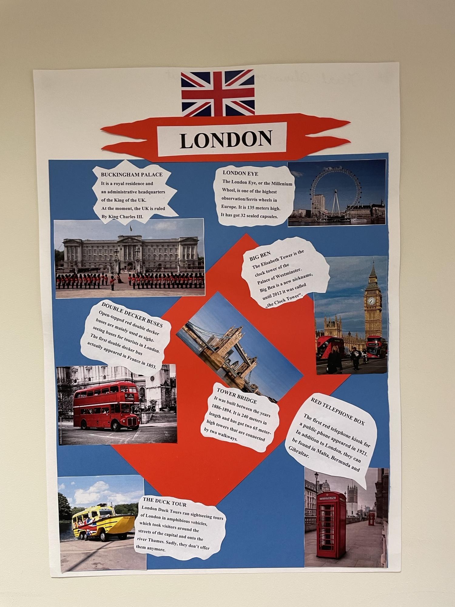 7. a ja 7. b klass valmistasid lõiminguprojekti raames kunstitunnis õpetaja Virve juhendamisel kahe klassi peale kokku 5 plakatit teemal "London".