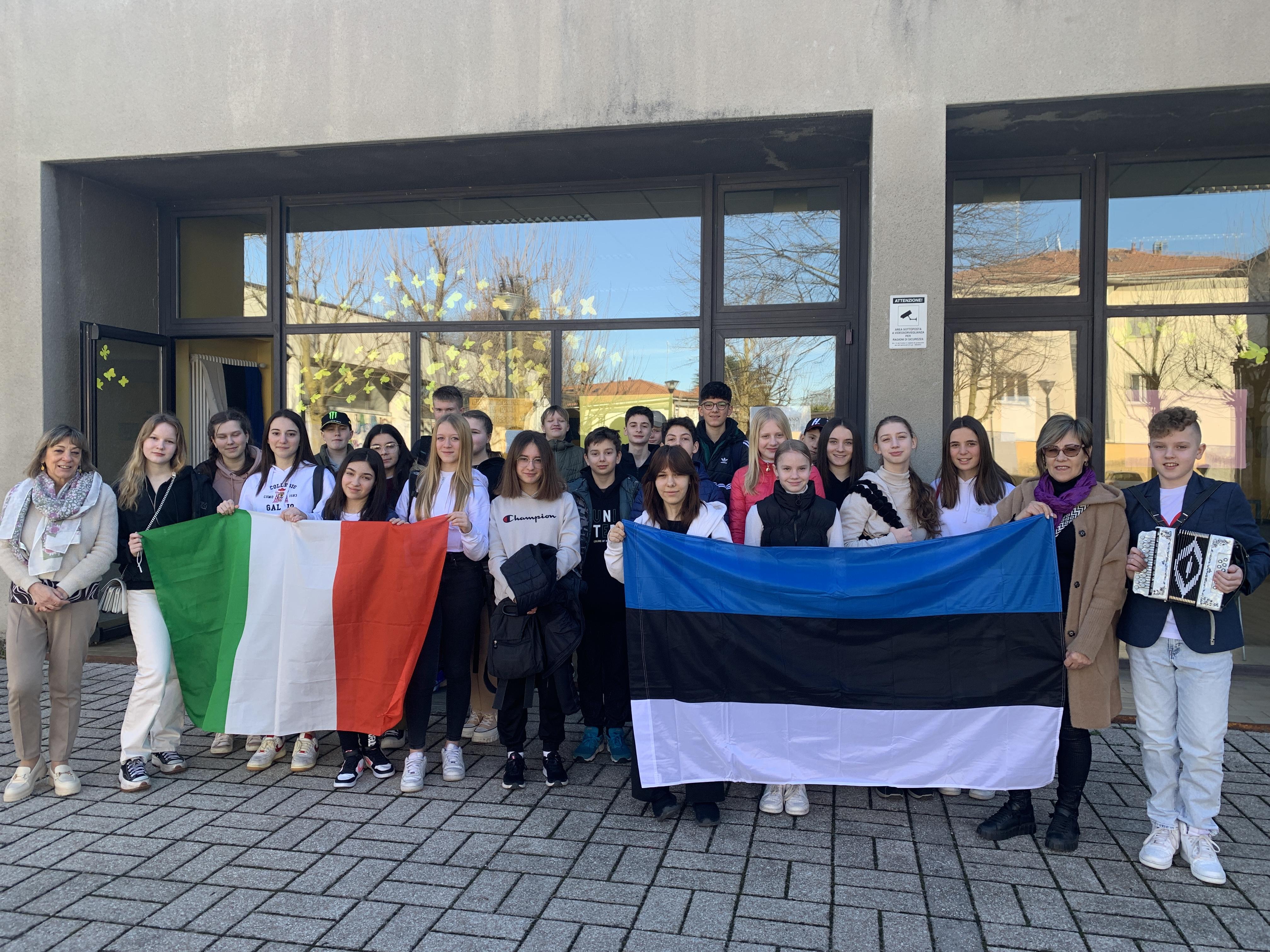Esimese päeva hommiku veedame koolis. Tutvustasime Eestimaad ja enda kooli. 7. klassi õpilased Rait, Krettel, Karl Mihkel ja Jakob valmistasid toreda video Eestist ja meie koolist. Rait tutvustas meie koolielu, Robin esitas pillil Ukuaru valssi ja Bella chiaod. Õpilased tutvusid koolimajaga. Koolikoor andis meile toreda kontserdi ja Robini pillimängu saatel lauldi üheskoos Bella chiaod. Päev jätkub sõbrapaela punumisega.