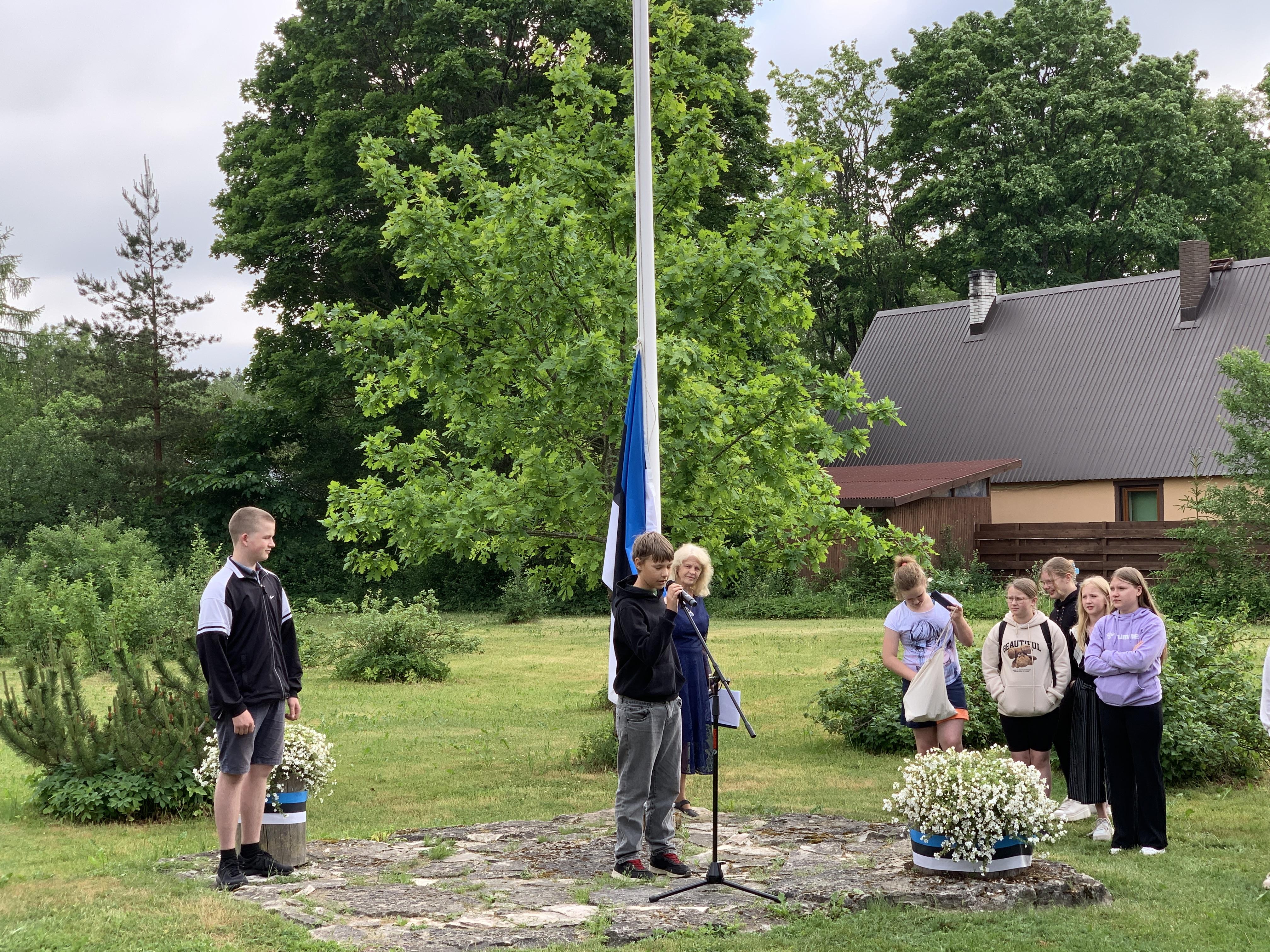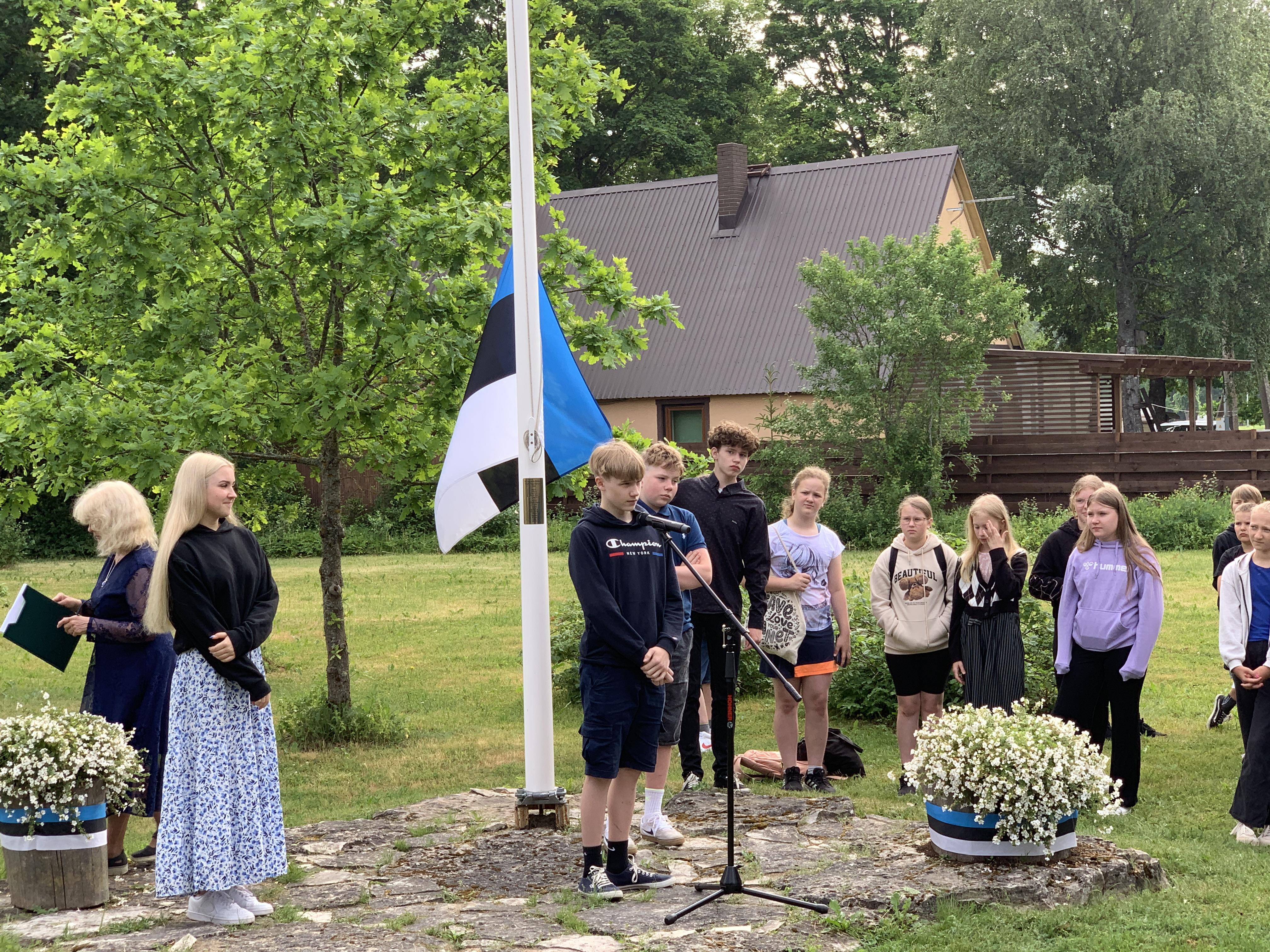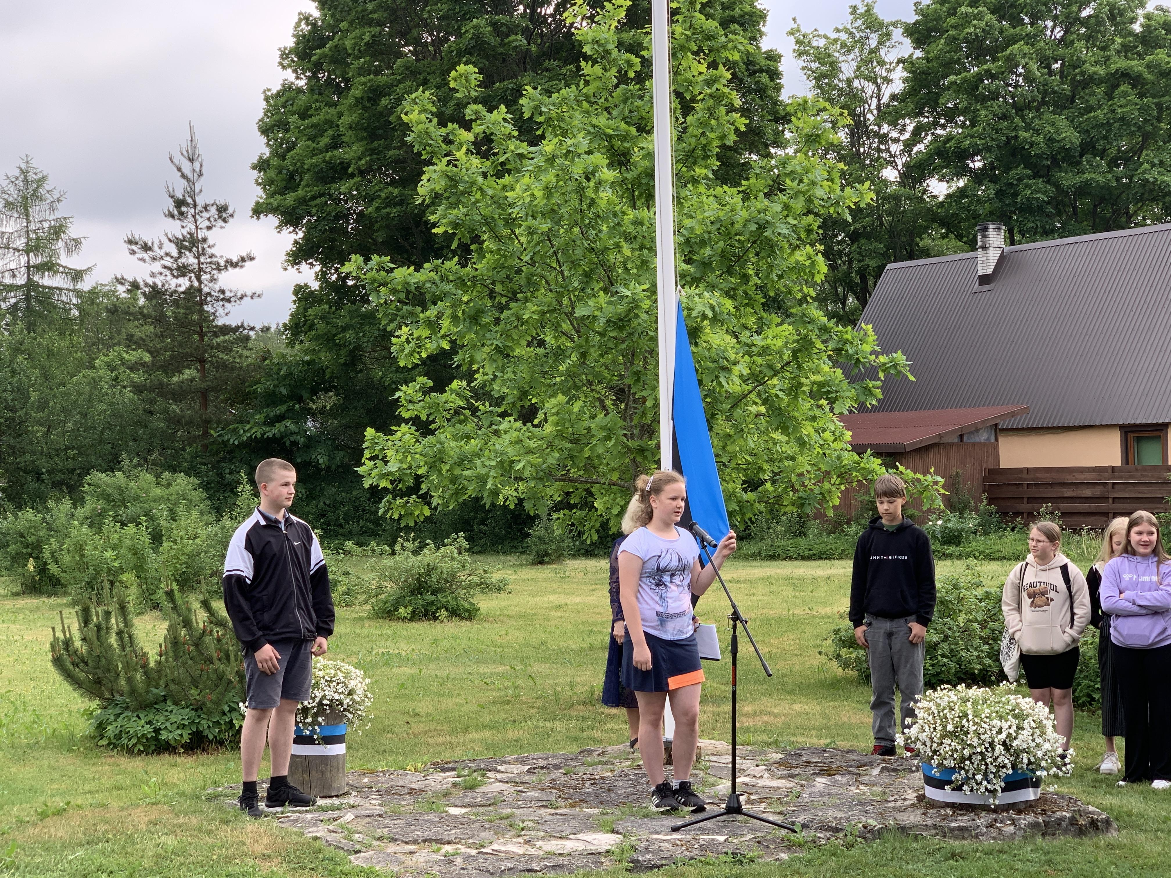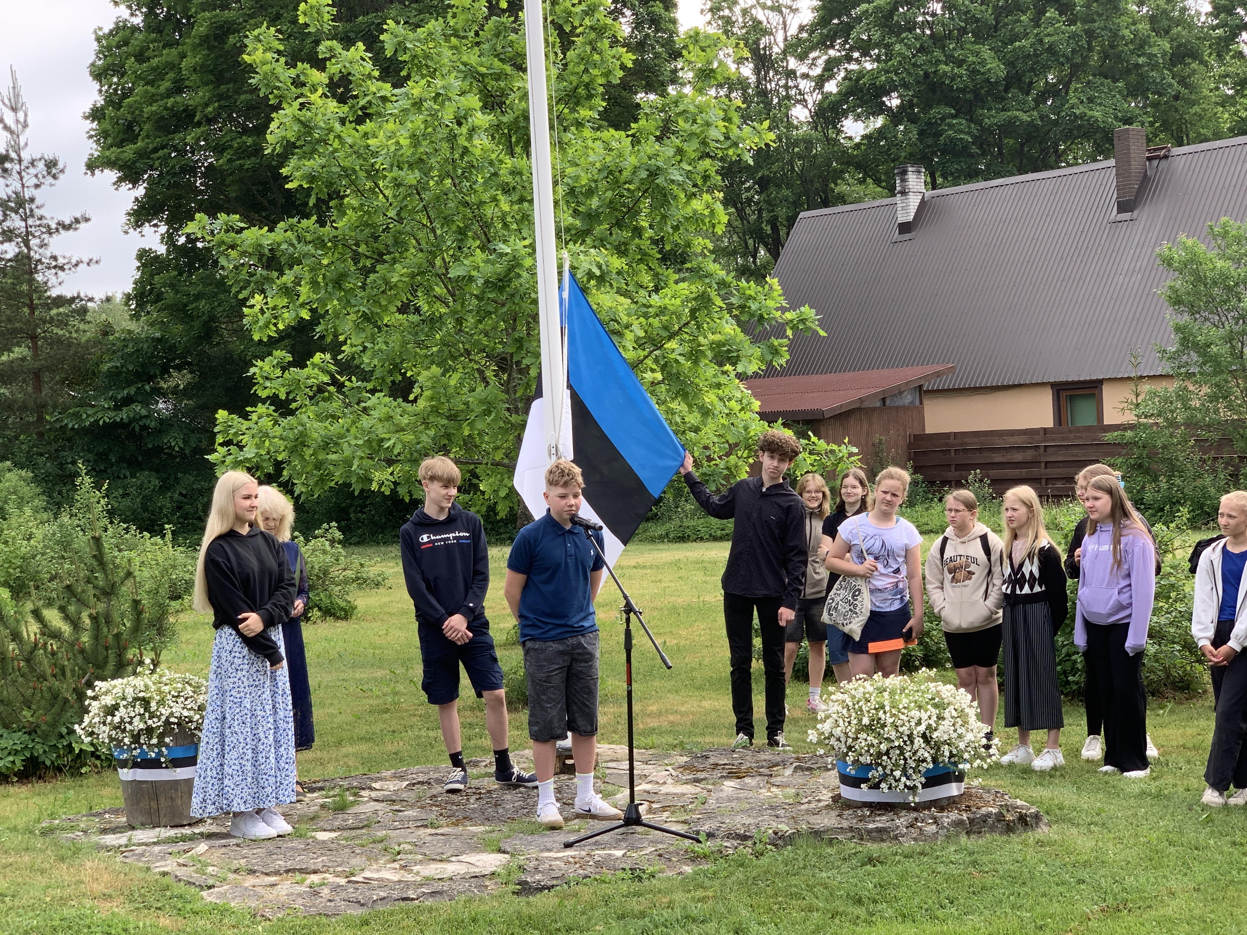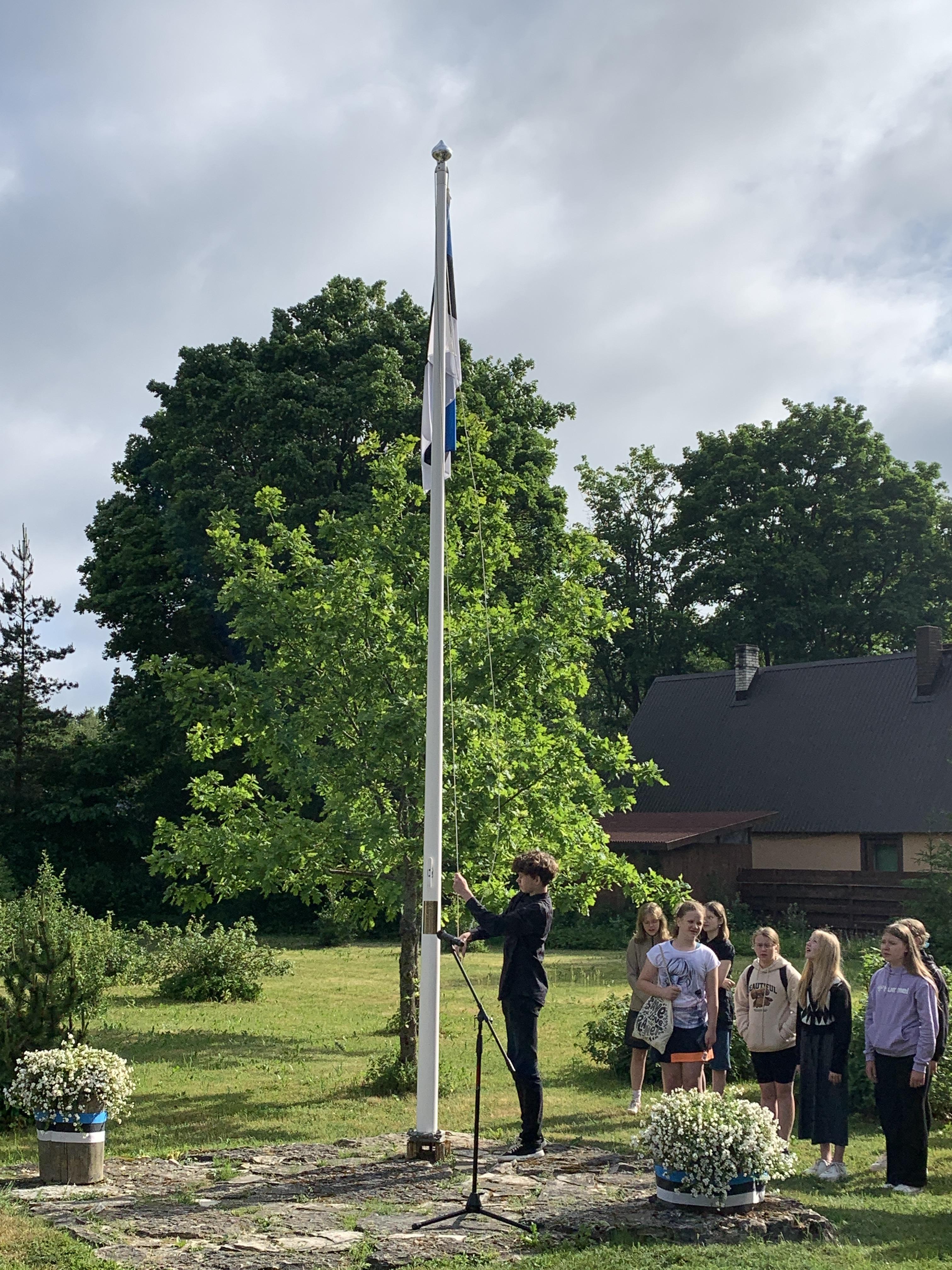 Õpetaja Tiiu selgitas, kuidas Eesti lipp alguse sai. 5., 7. ja 8. klasside õpilased kandsid ette toredaid luuletusi meie isamaast. Ühiselt laulsime Eesti lipu laulu ja Karl Markus Põld heiskas lipu hümni saatel.