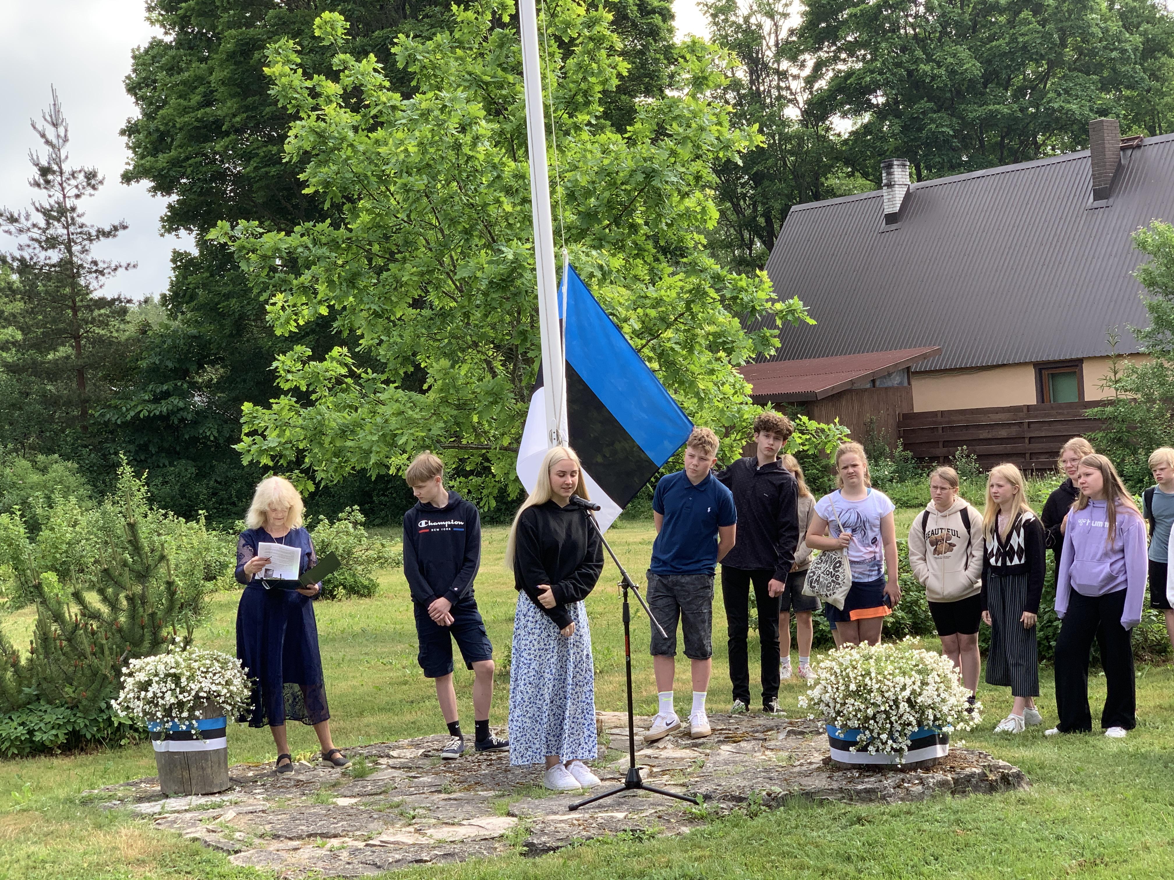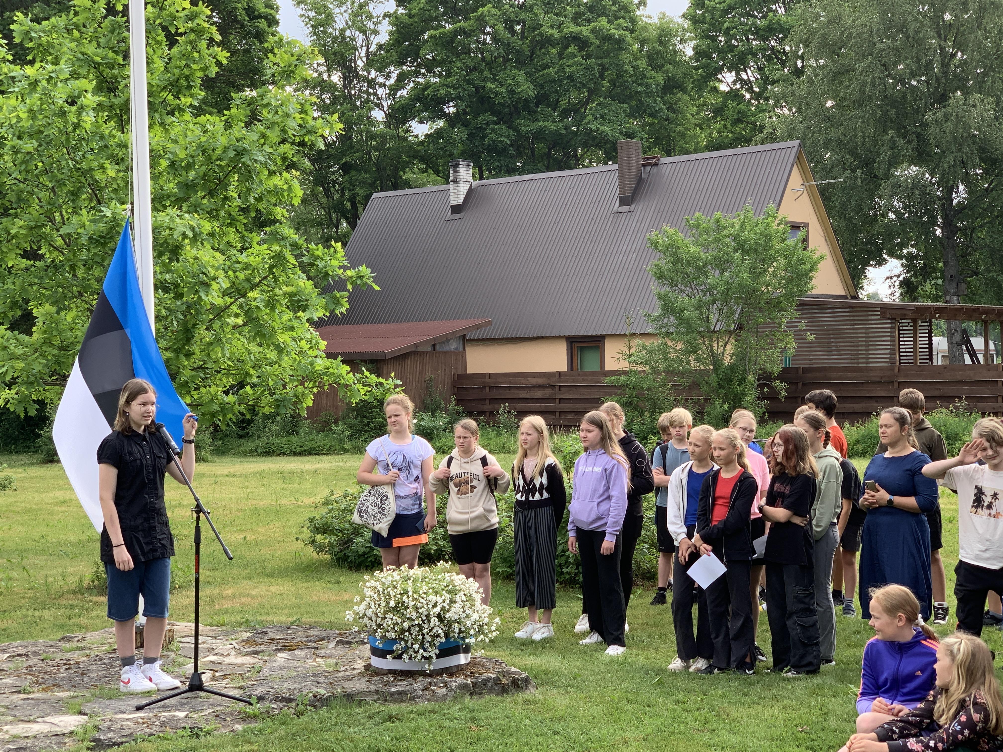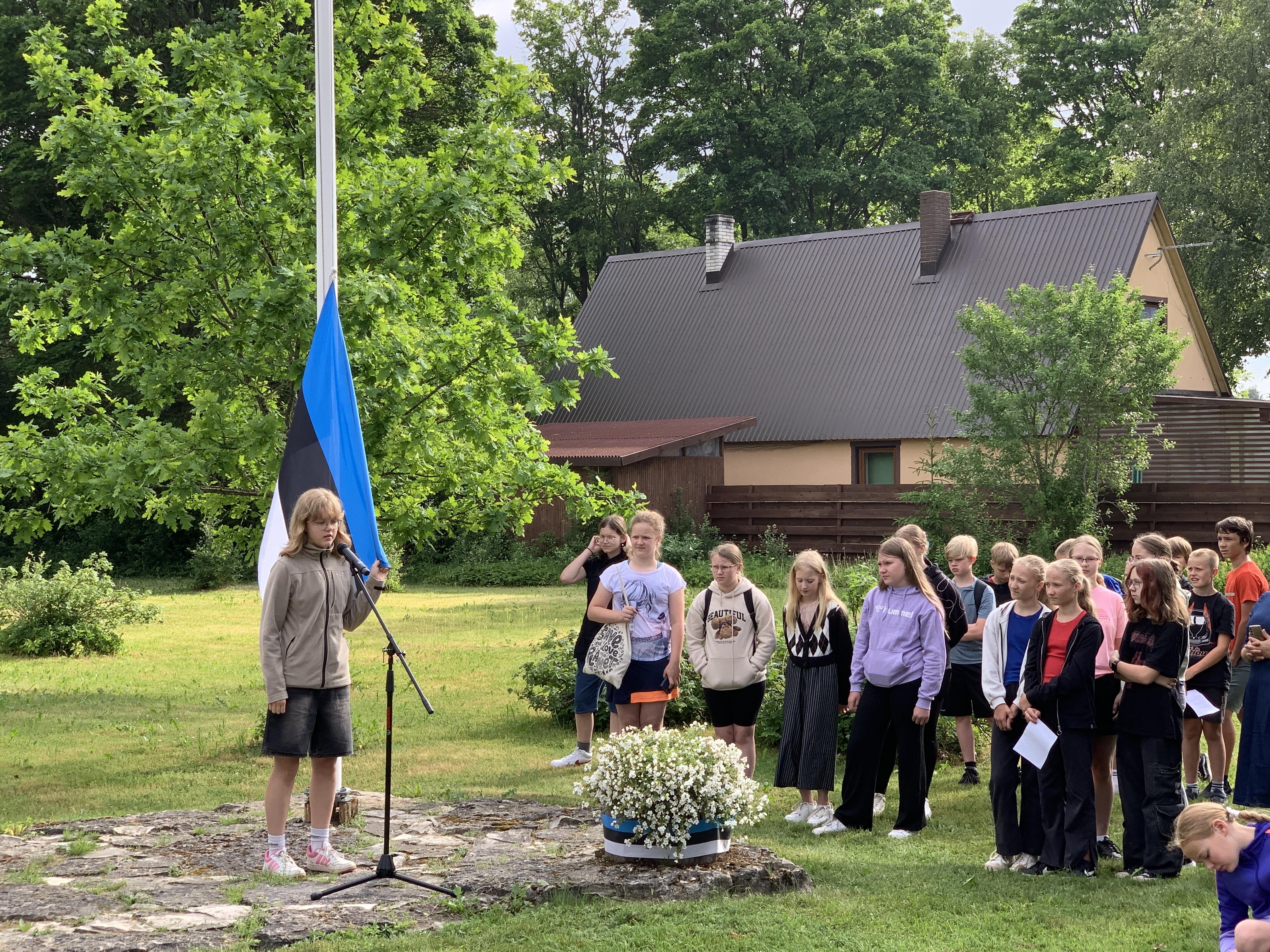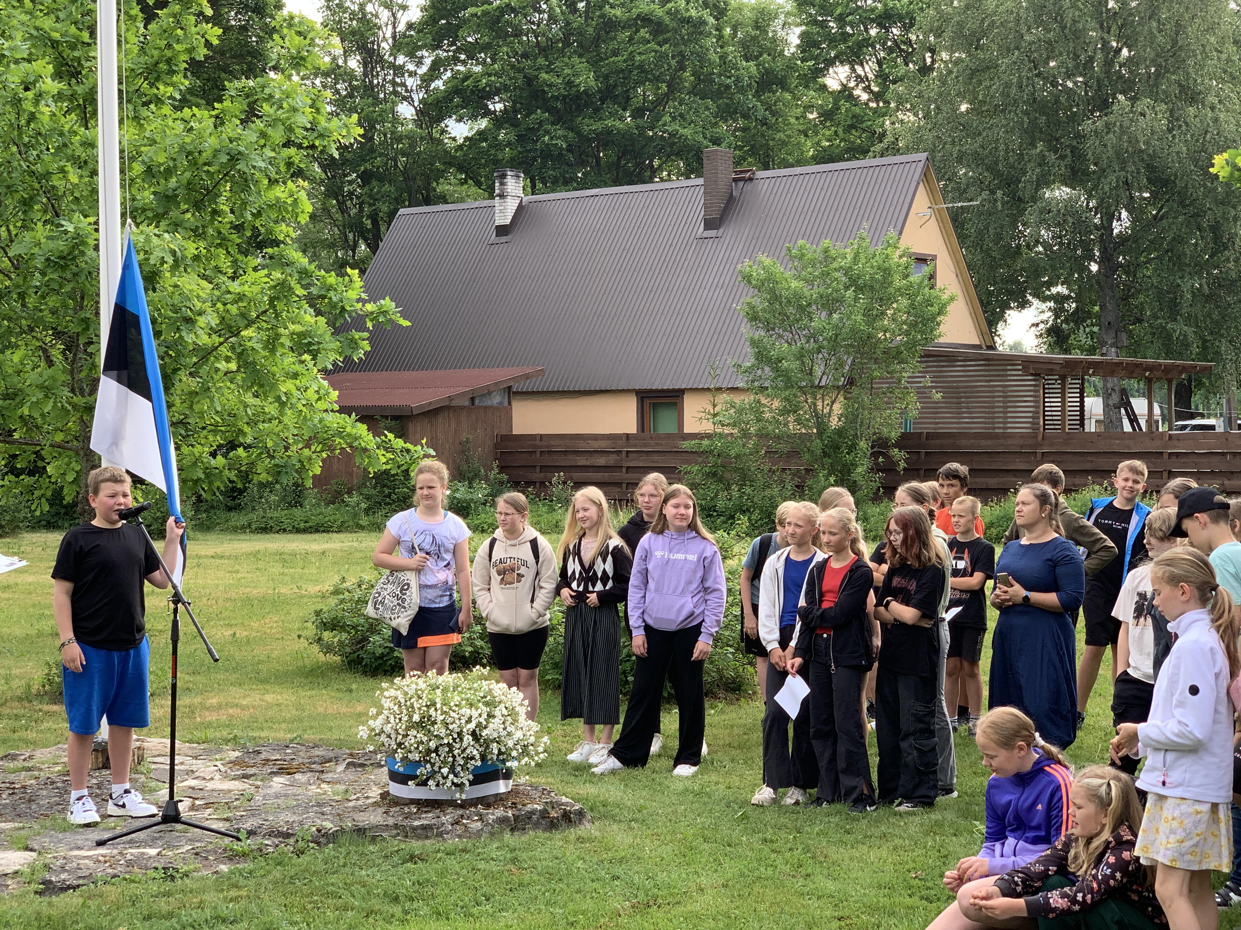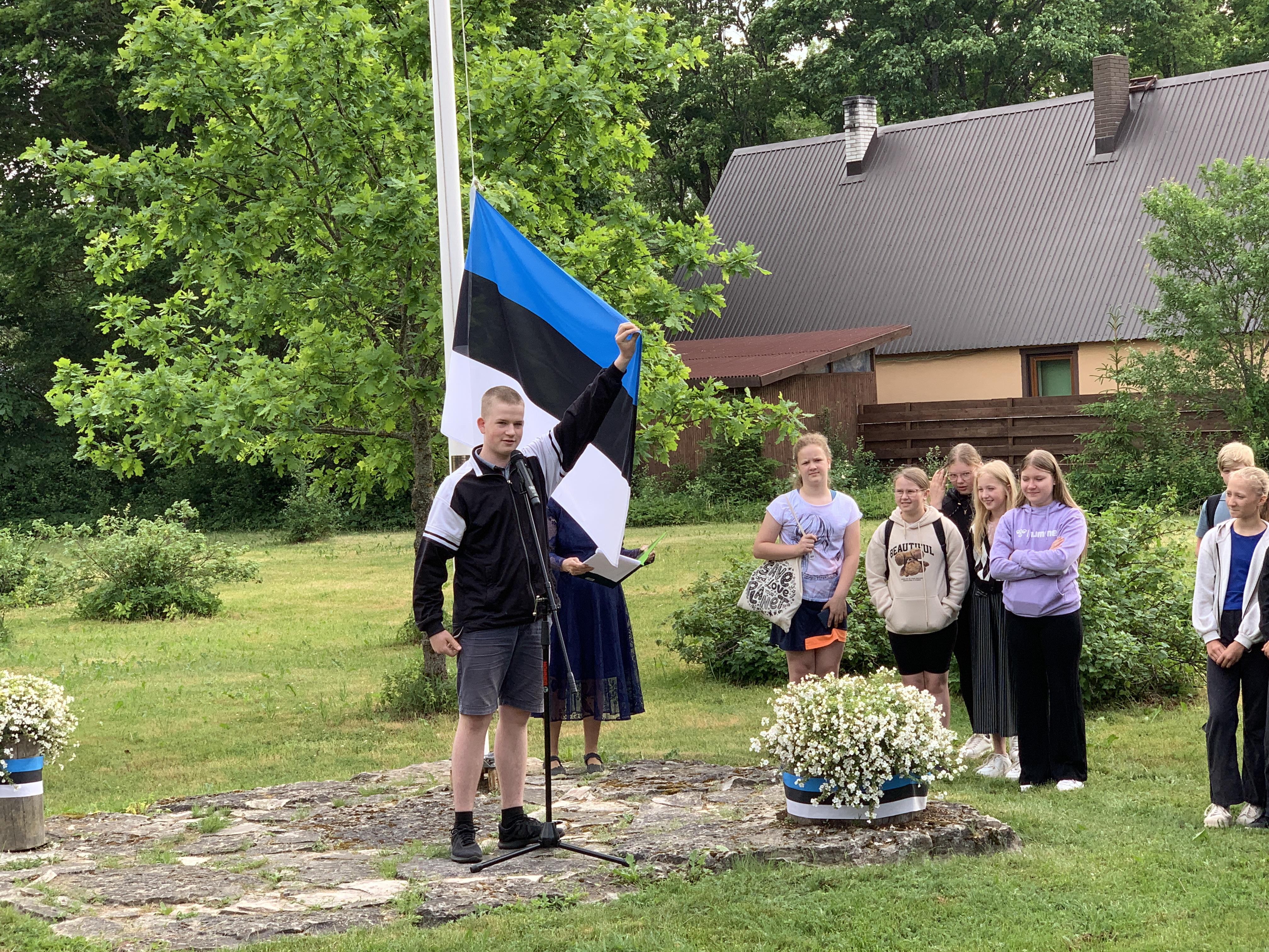 Õpetaja Tiiu selgitas, kuidas Eesti lipp alguse sai. 5., 7. ja 8. klasside õpilased kandsid ette toredaid luuletusi meie isamaast. Ühiselt laulsime Eesti lipu laulu ja Karl Markus Põld heiskas lipu hümni saatel.