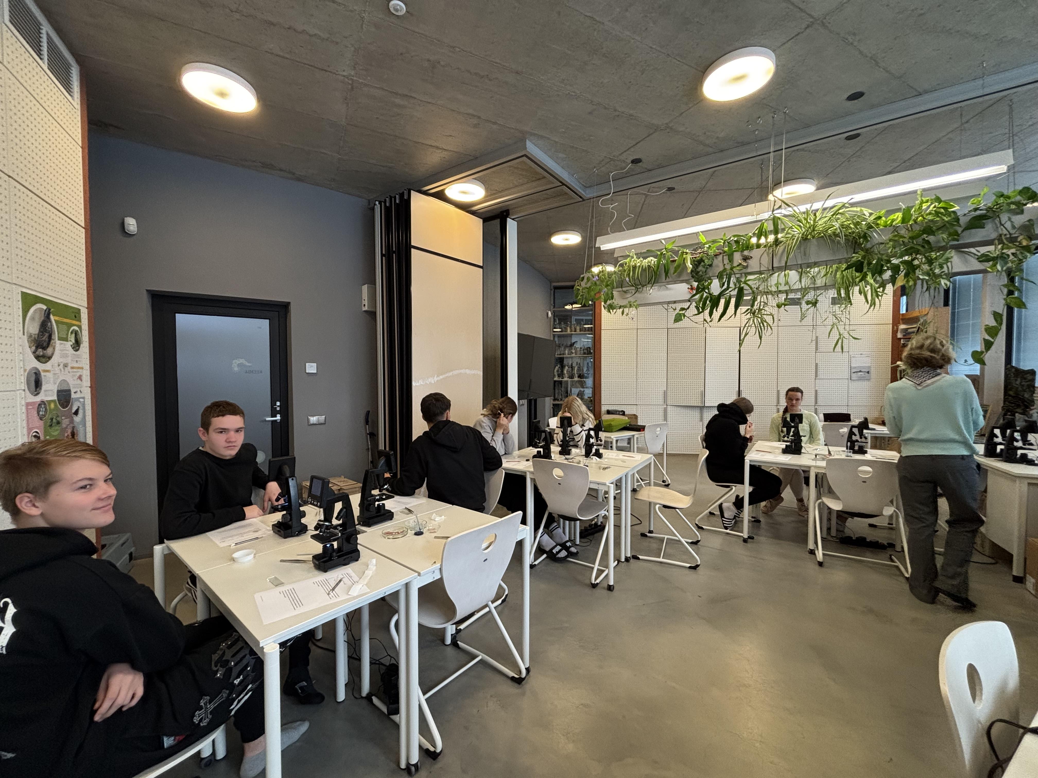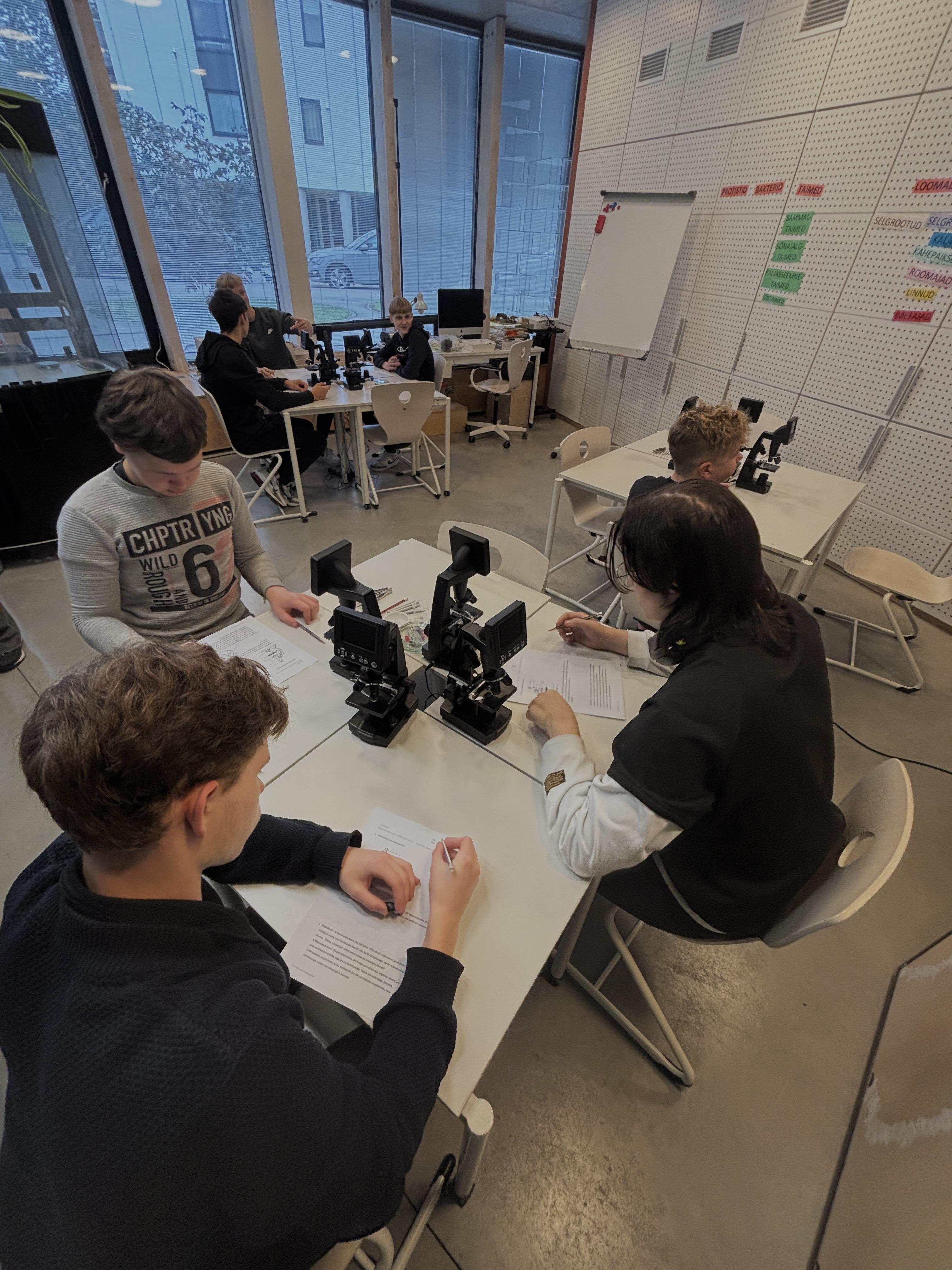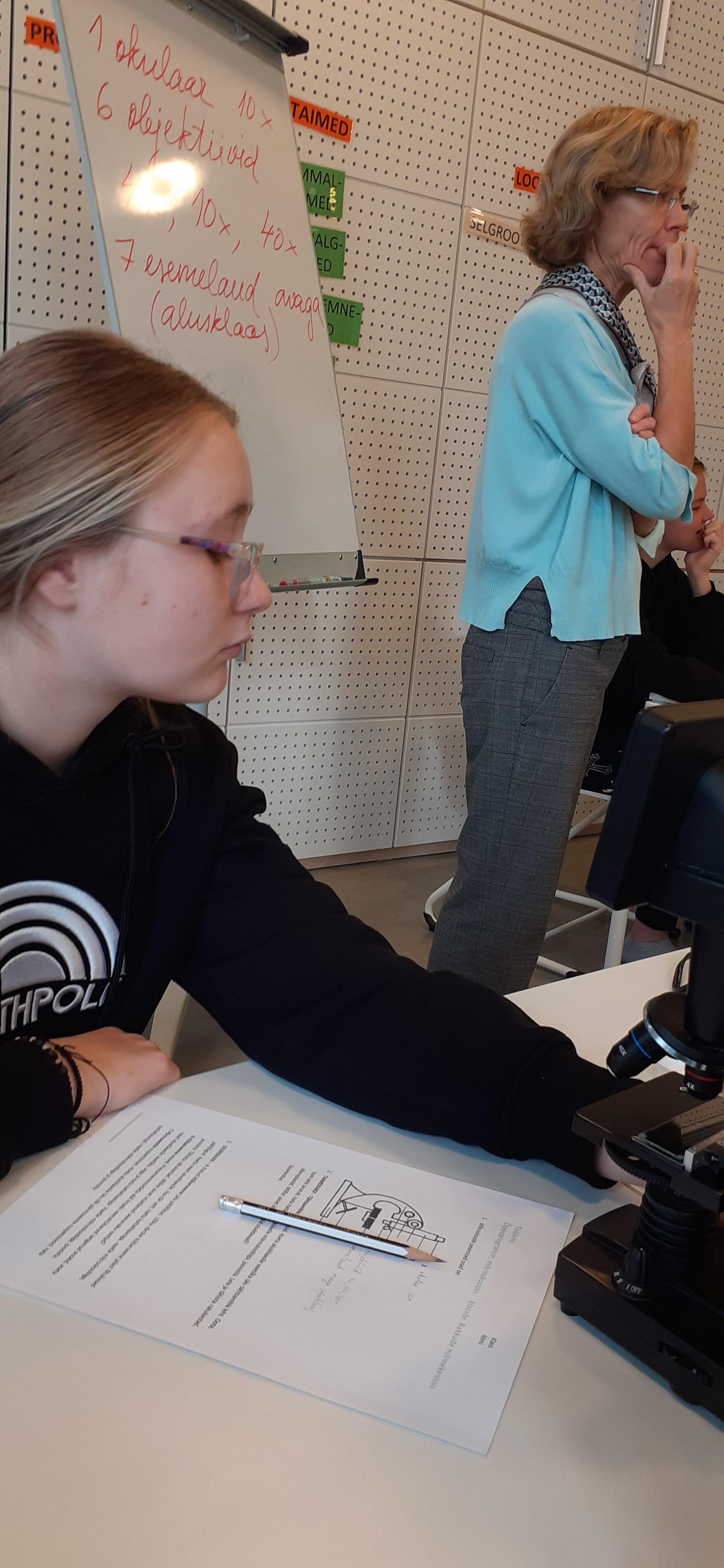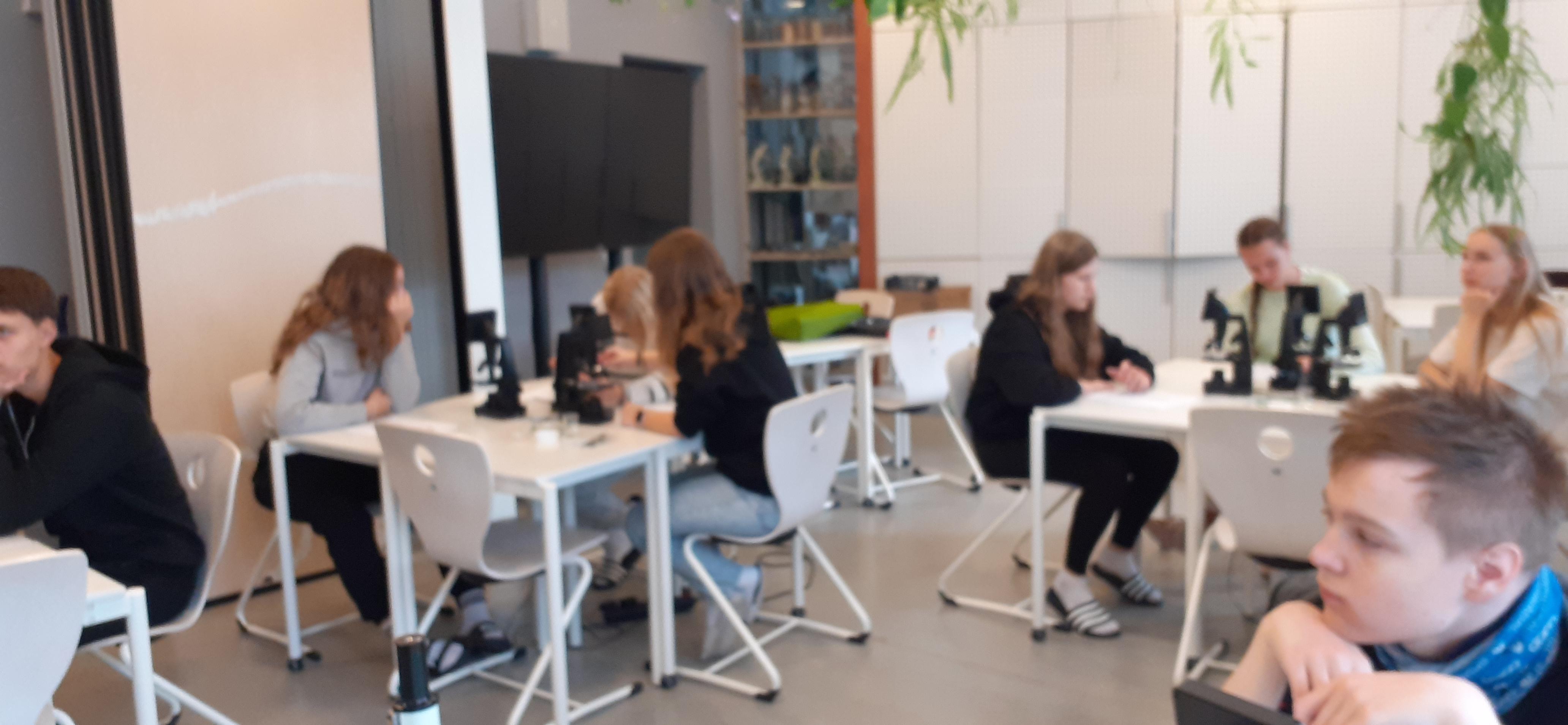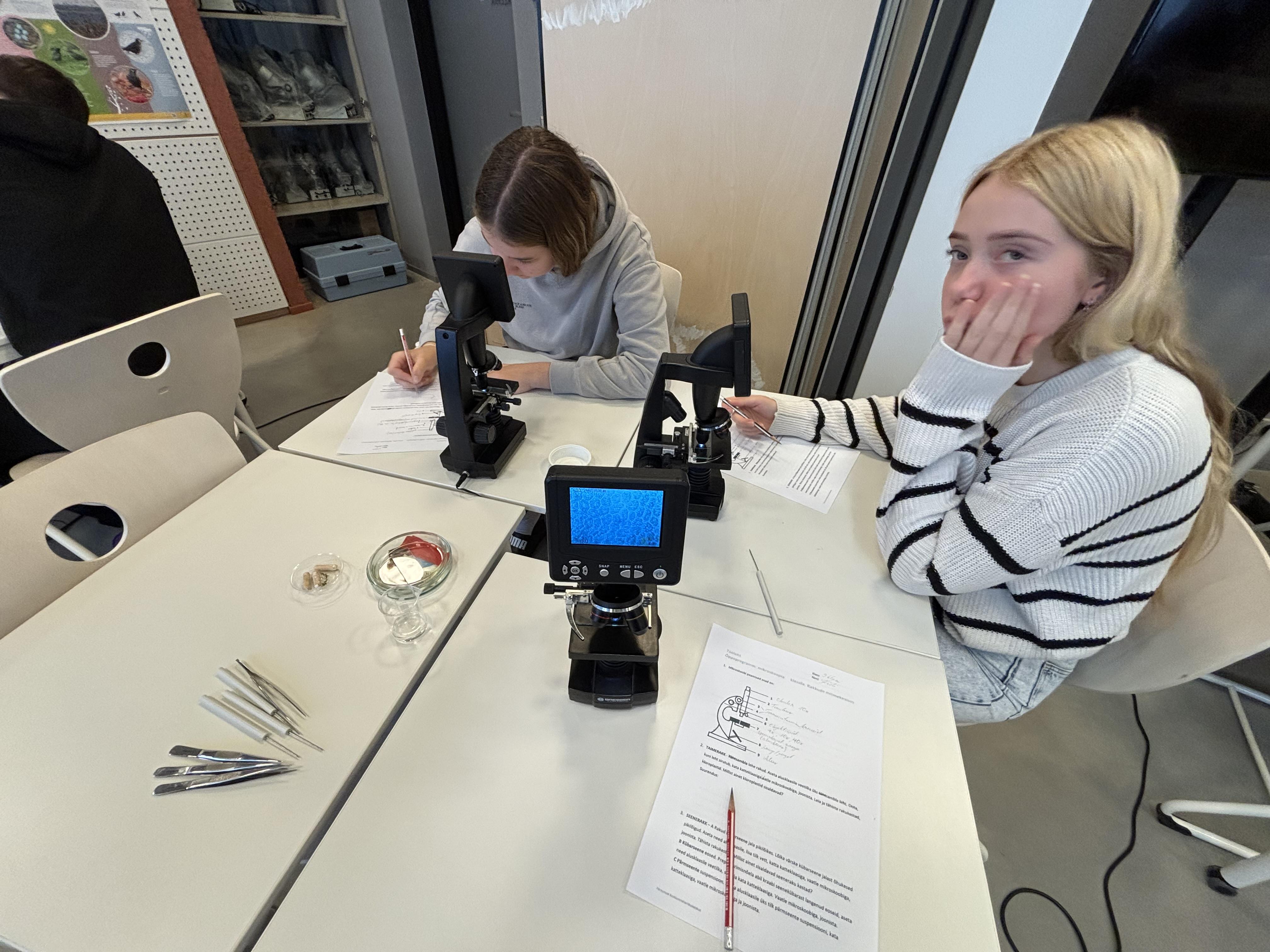 14. ja 15. oktoobril käisid 9. klassid Pernovas. Esmalt meenutasid nad koolis õpitud raku ehitust. Tuletasid meelde milline erinevus on bakteri, looma, taime ja seeneraku vahel. Seejärel vaatasime üle ägedad mikroskoobid ja saigi töög peale hakata. Natukene matemaatikat, et teada saada, kui palju just see mikroskoop suurendab. Siis ajaleht, salvrätt ja sambla leht, austerserviku niidistik ning viimaks meie enda suu limaskest. Oi kui põnev oli teada saada, mis meie suus toimub. See uueneb kiiresti, sest peab kõigega hakkama saama. Igal juhul oli võrratu õppekäik.