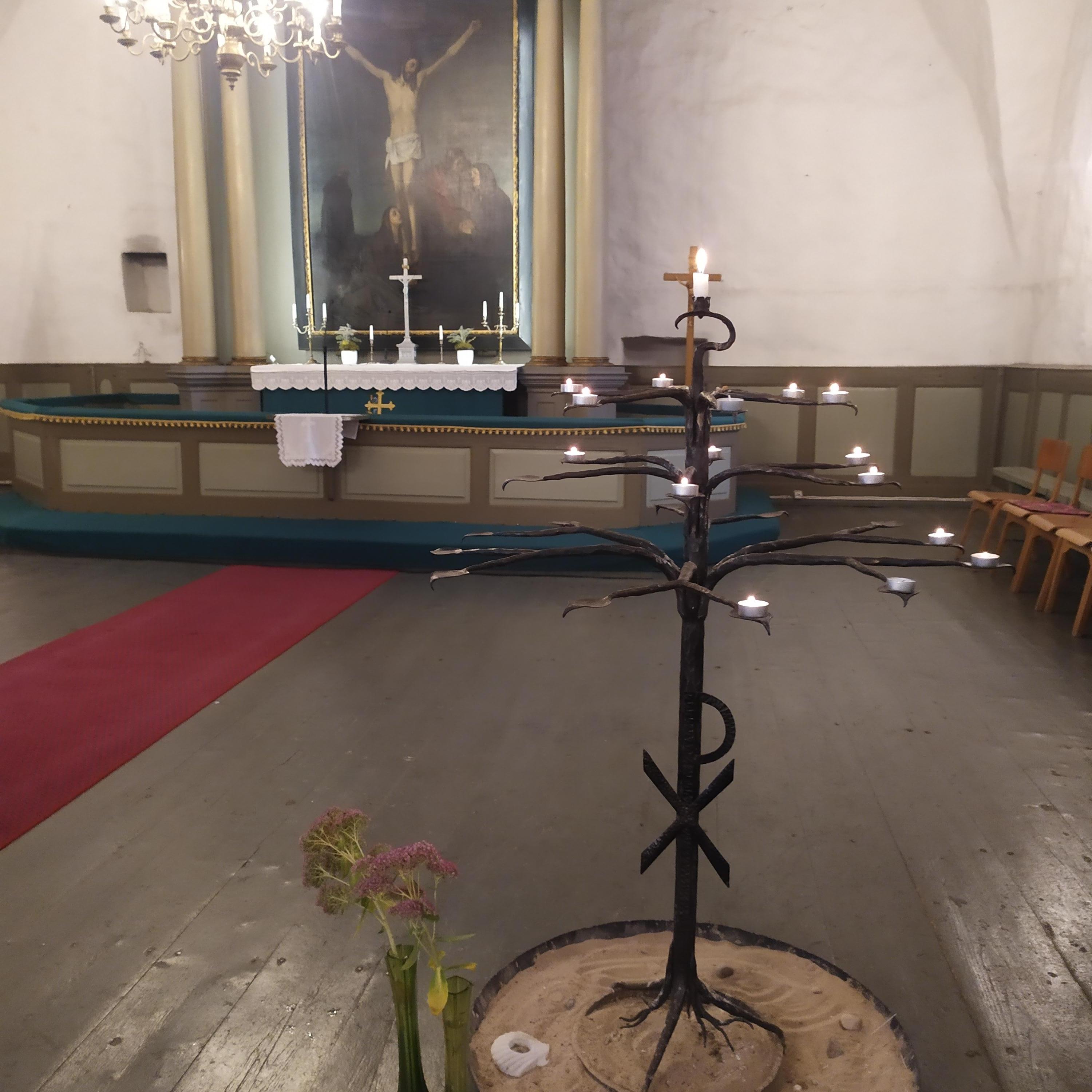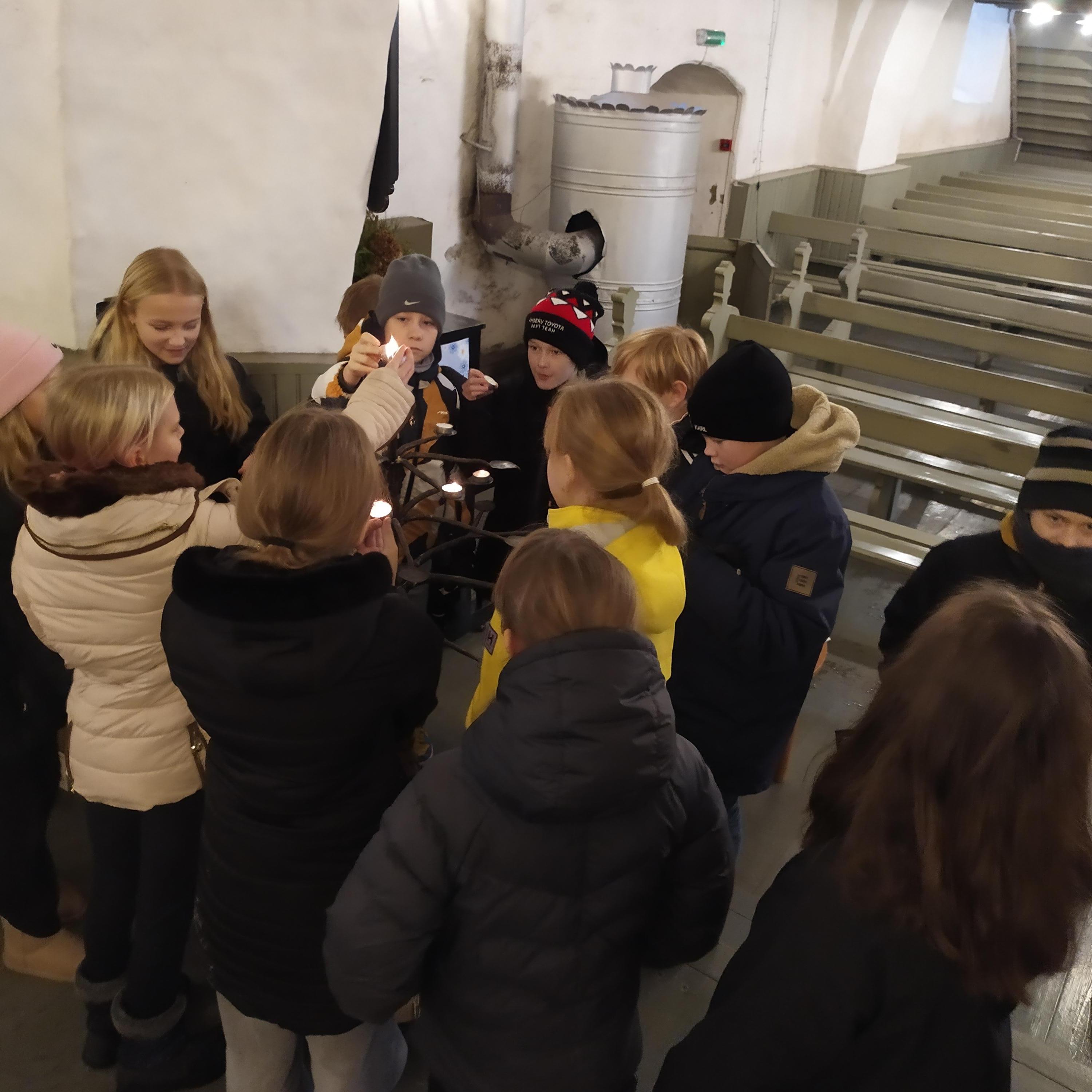 Epp Sokk tegi lühitutvustuse kiriku ajaloost, sisustusest ja olemusest. Lapsed kuulasid huviga. Saime süüdata küünlad hea sooviga ja ronida ka kiriku võlvidel.