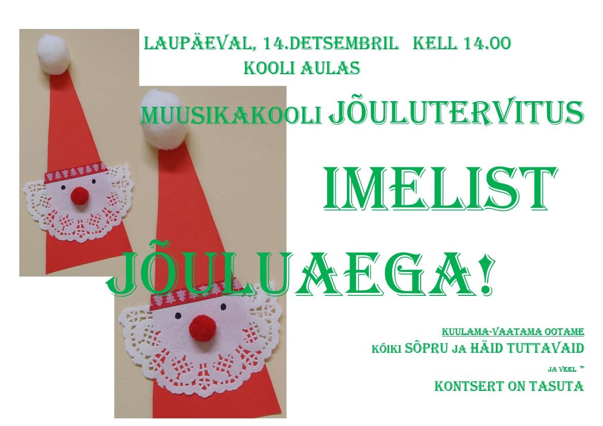 Laupäeval, 14.detsembril kell 14.00 kooli aulas Muusikakooli jõulutervitus IMELIST JÕULUAEGA!