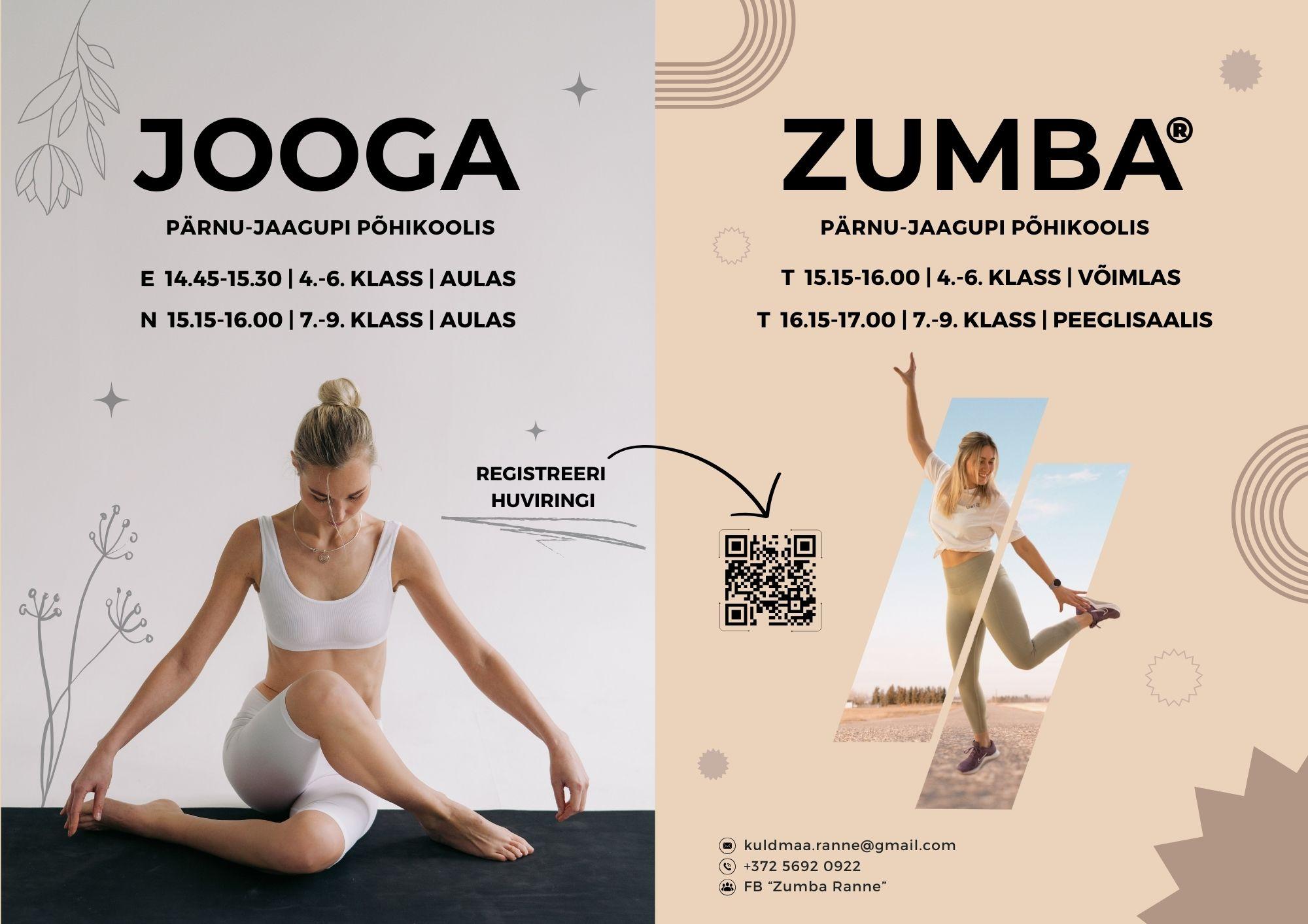 Pärnu-Jaagupi Põhikooli 4.-9. klassi noortel on võimalik liituda Zumba ja Jooga treeningutega.