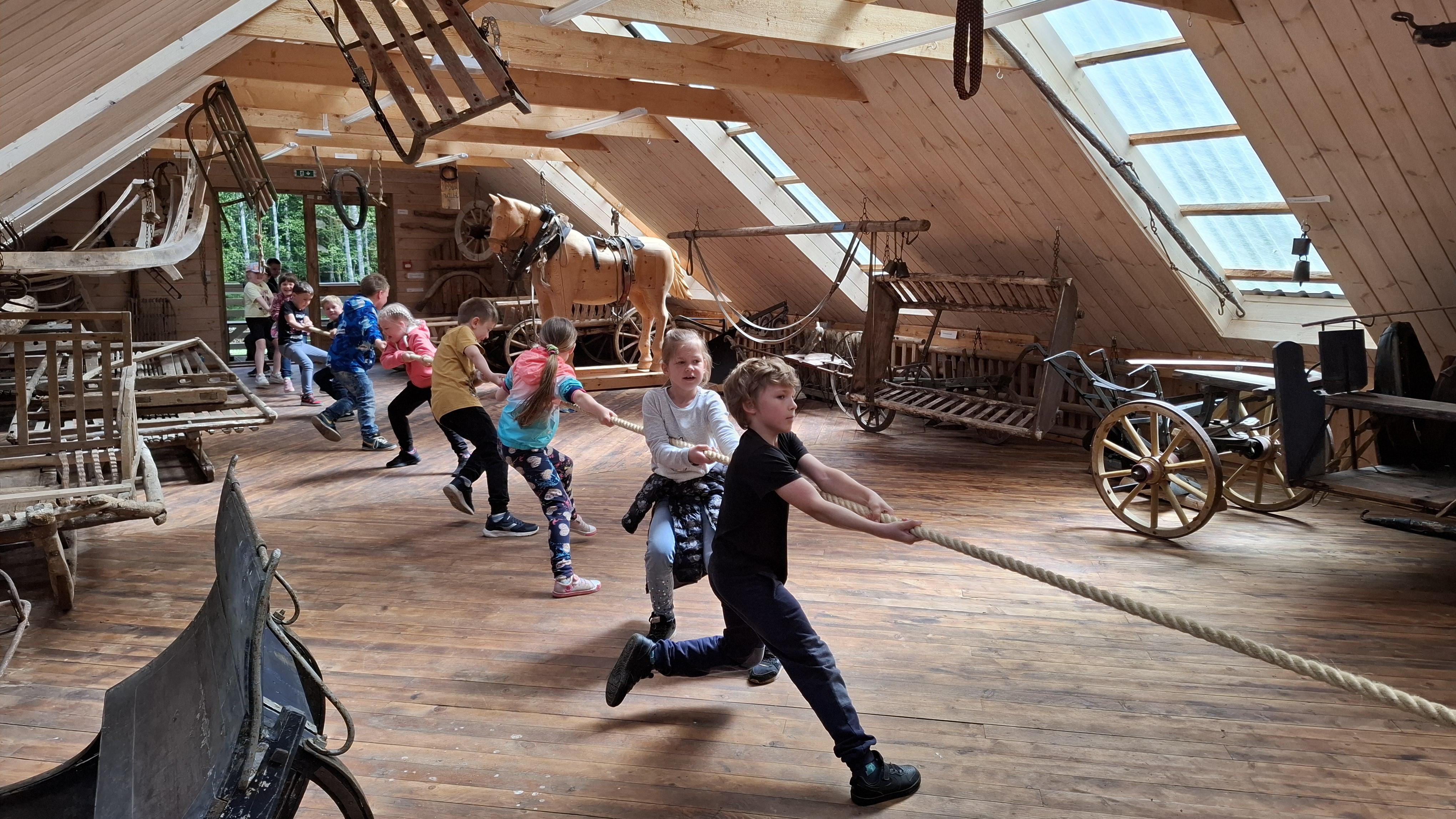 Korraks sai ka kiike proovitud. Äge võistlus oli köietõmbamises ja lisaks sai proovida, kuidas vanasti ämbriketiga maja kustutada tuli.