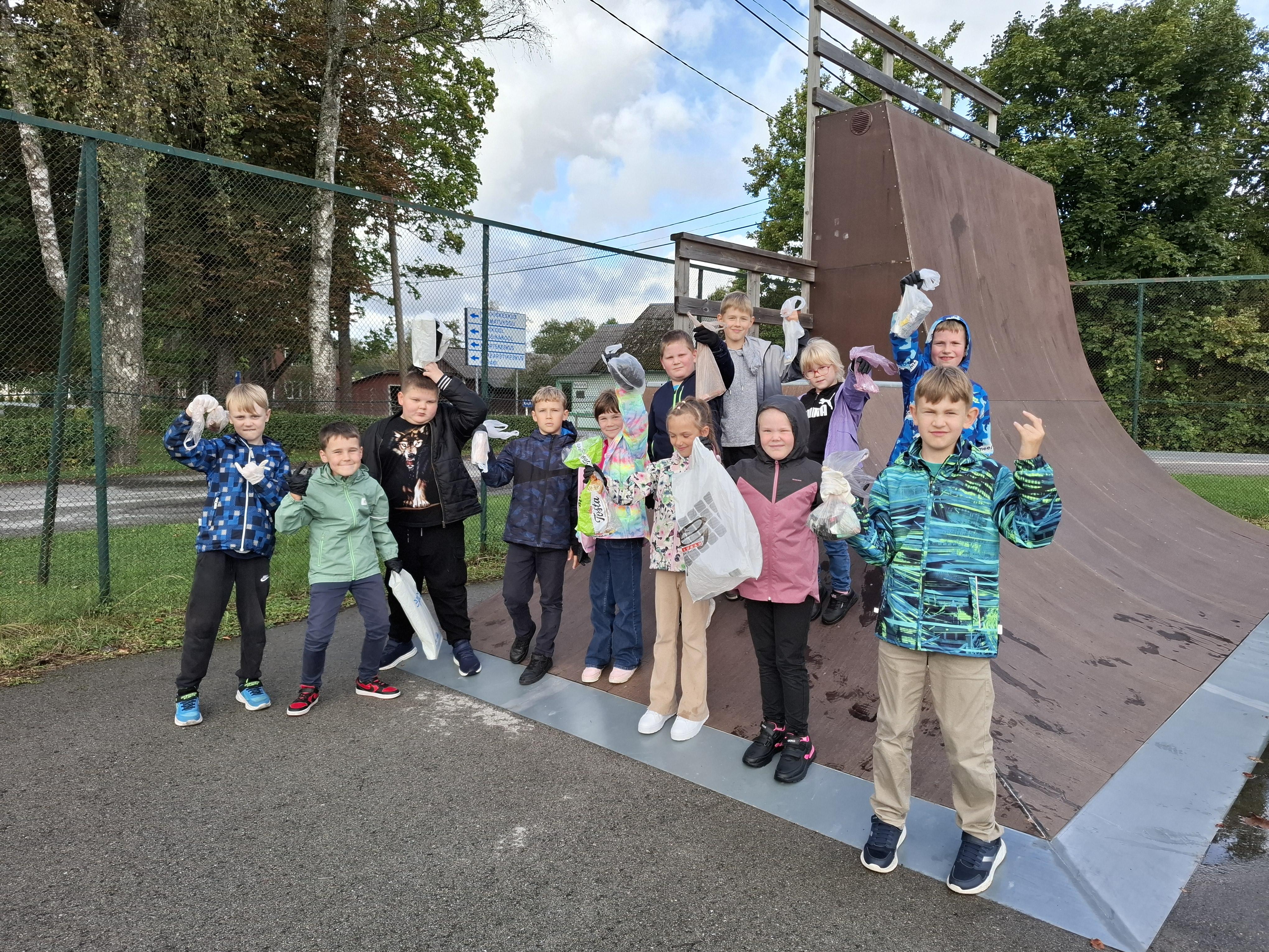Korjasime prügi koolimaja ümbruses, mänguväljakul, staadionil ja skatepargis. Nendest kohtadest oli mõni klass juba eelnevalt prügi korjanud aga kahjuks oli taas prügi, mida korjata. Lapsed olid tublid ega lasknud ennast ka väikesest vihmasagarast heidutada.